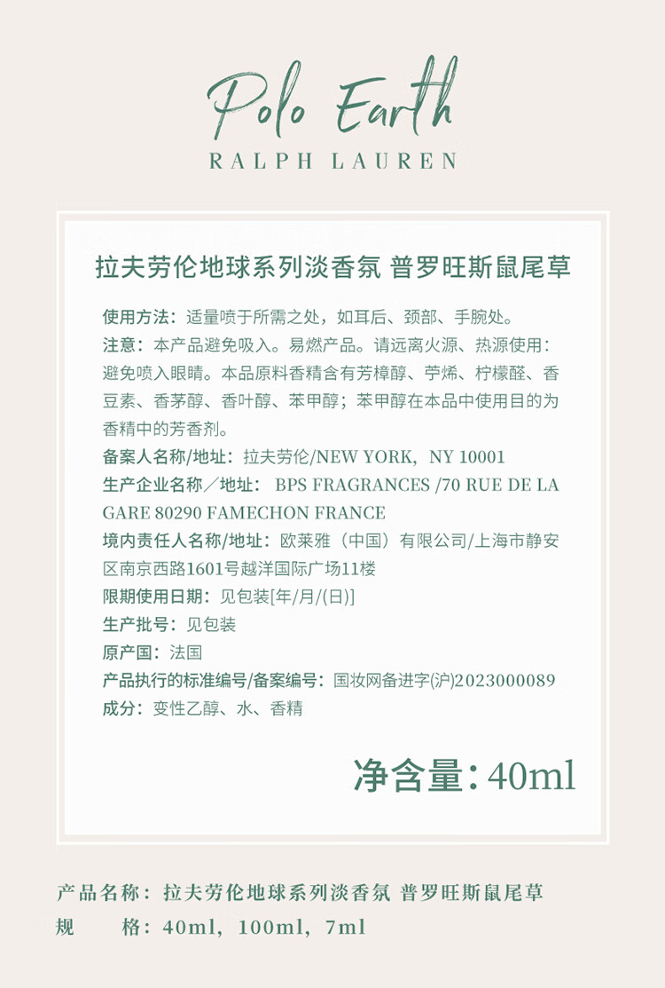 拉夫劳伦地球淡香氛普罗旺斯鼠尾草40ml芳香草本调中秋节礼物送女友