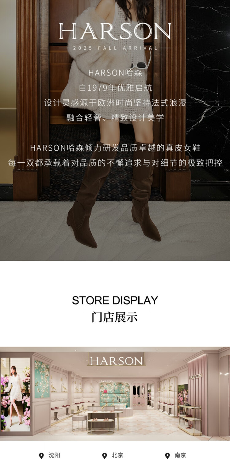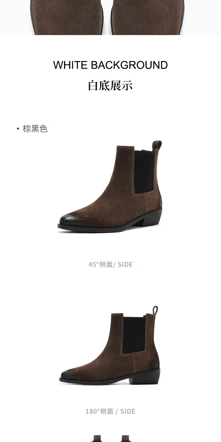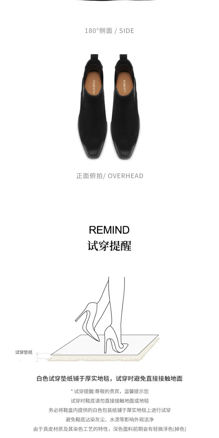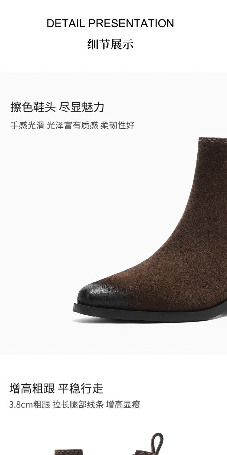 哈森气质方头复古擦色烟筒靴切尔西靴女短靴2025冬新品HWA250138 黑色 牛剖层绒面革/织物混用 35
