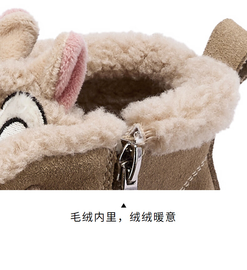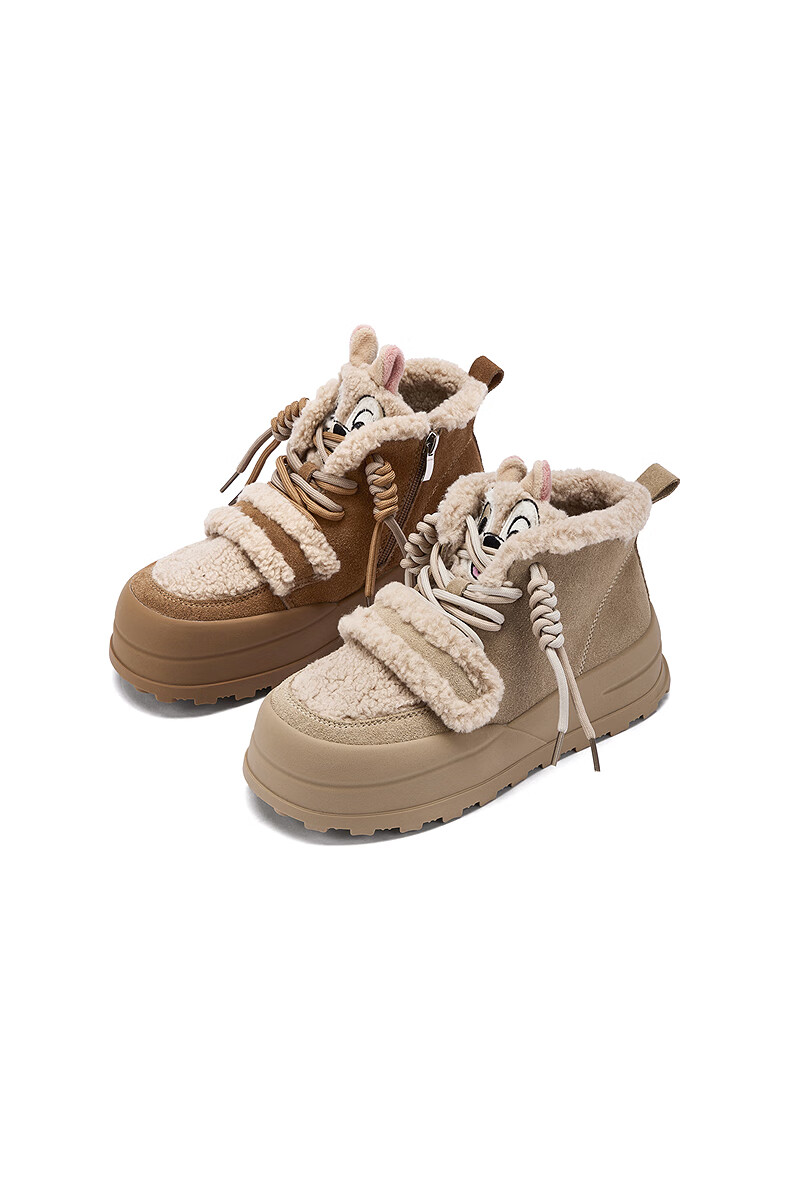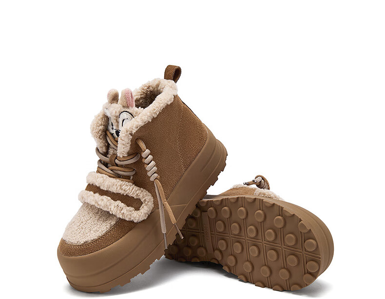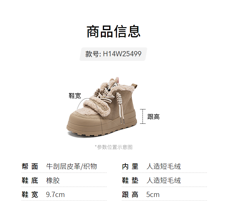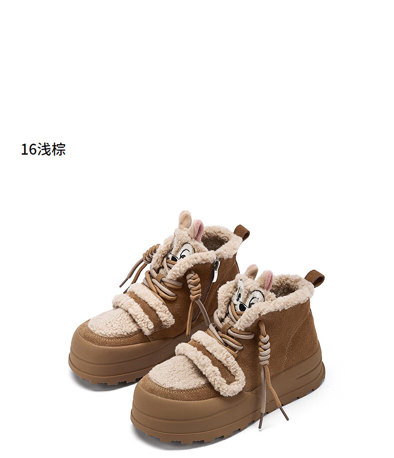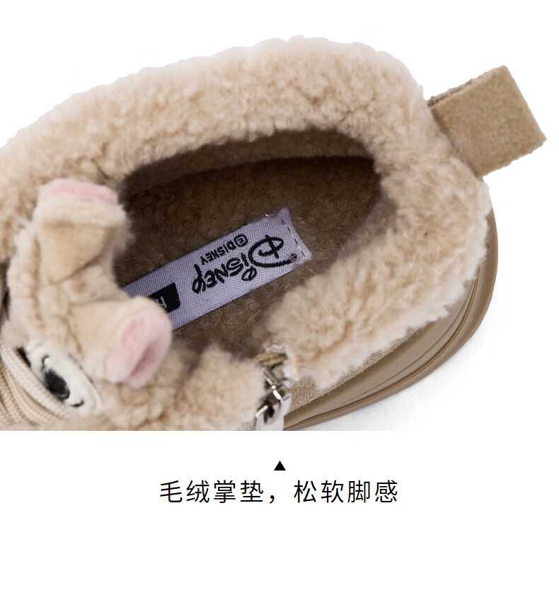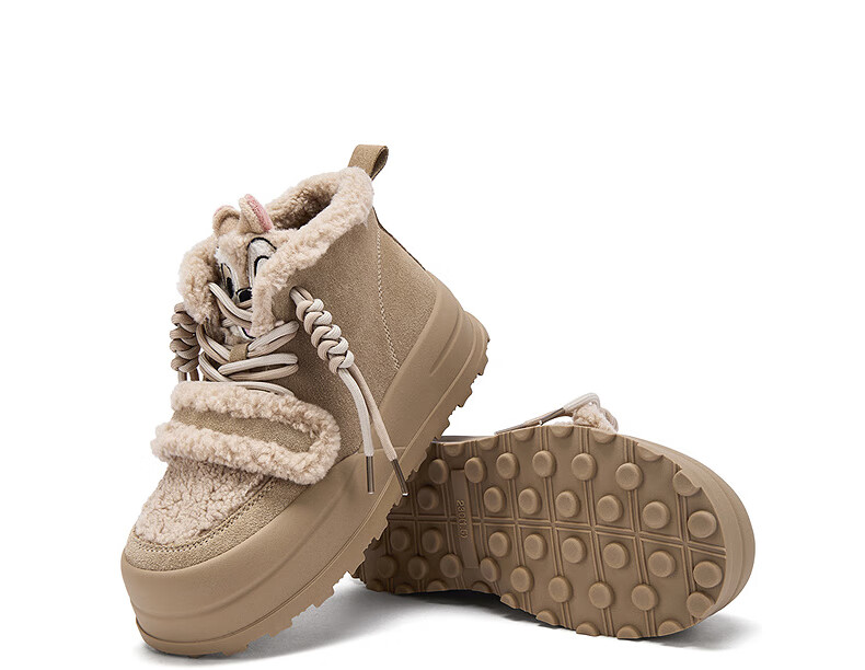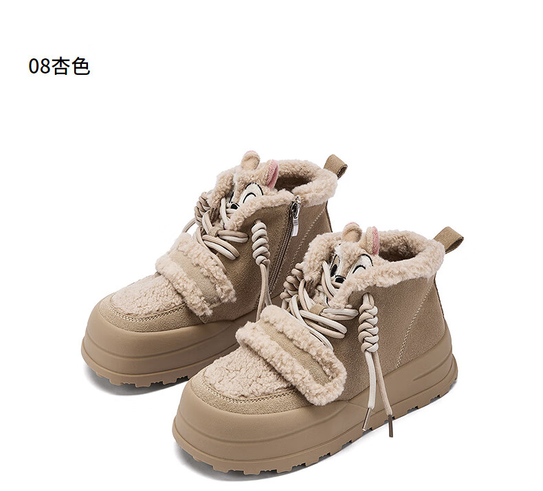 热风【迪士尼系列】厚底休闲鞋女2025年冬季新款加绒增高棉鞋女鞋 08杏色 34