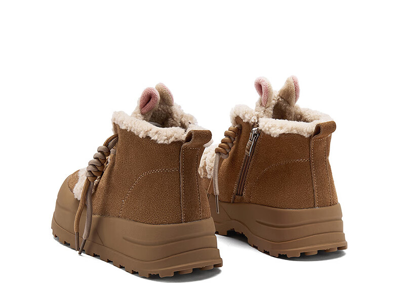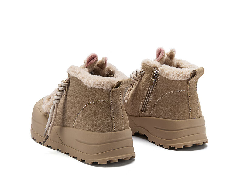 百丽(Belle)小领巾高帮勃肯鞋女新款棉鞋雪地短靴子D3G1DAD5 棕色-绒里 38 (240mm)