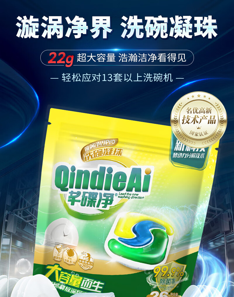 芊碟净 洗碗凝珠22g三合一大型洗碗机用洗碗块洗涤剂多效合一大凝珠26颗