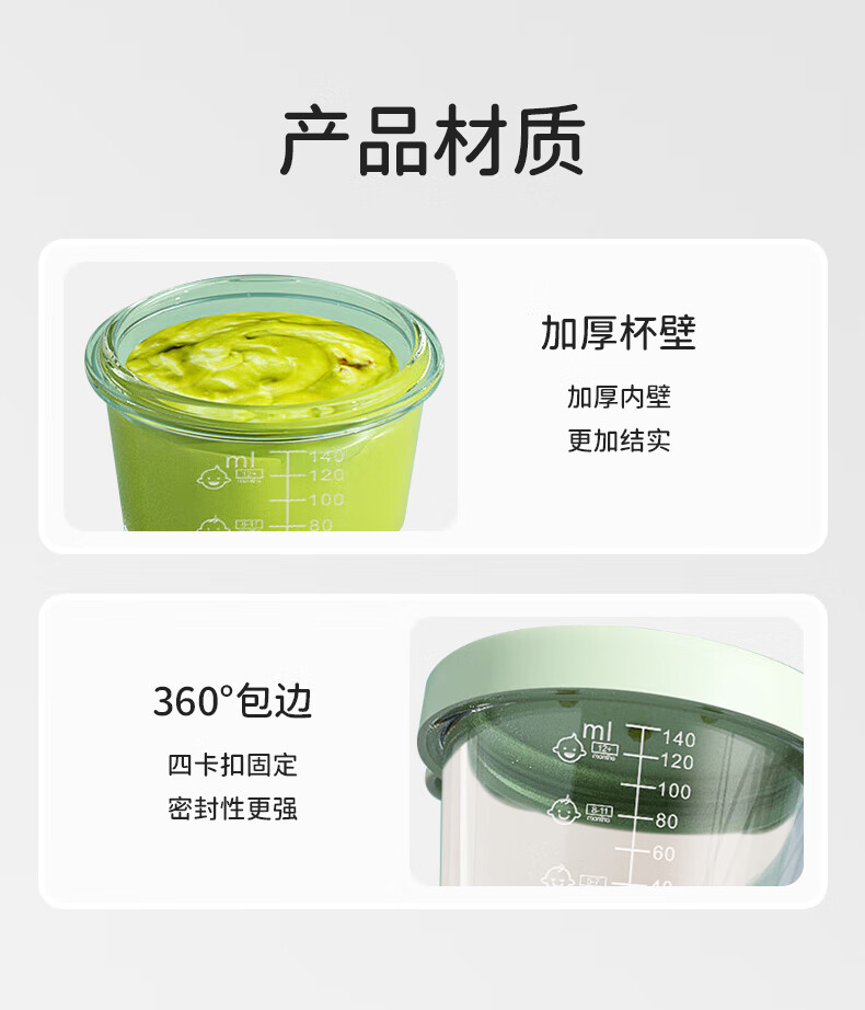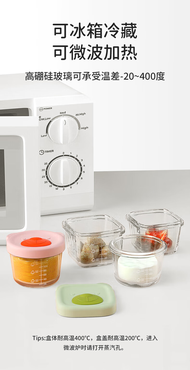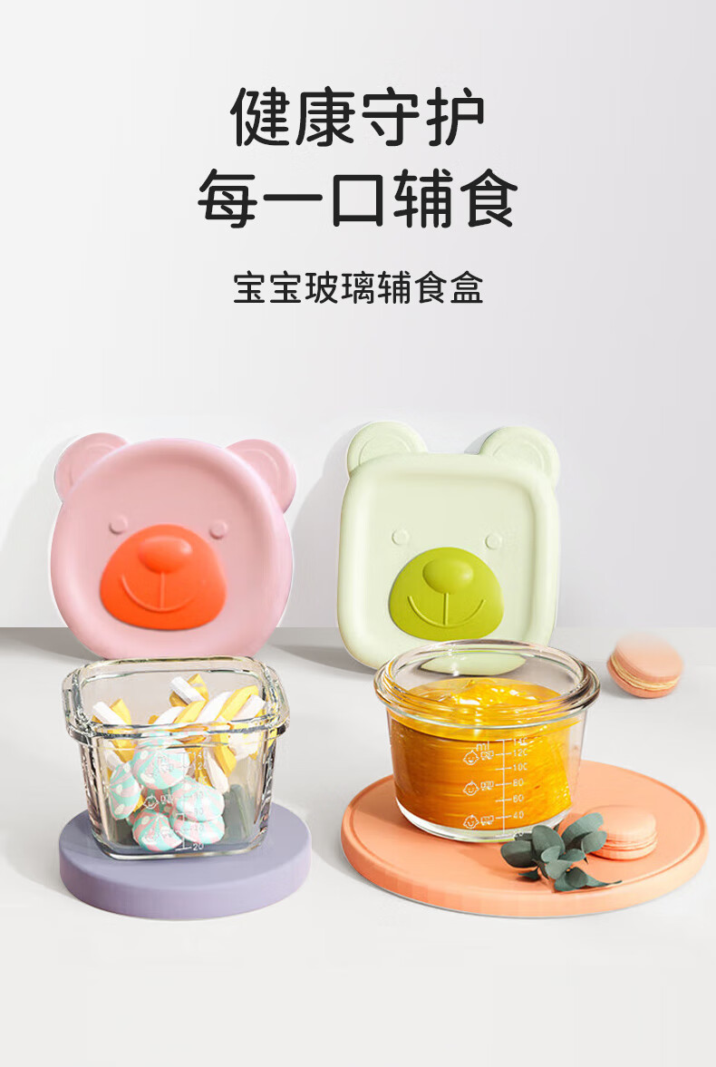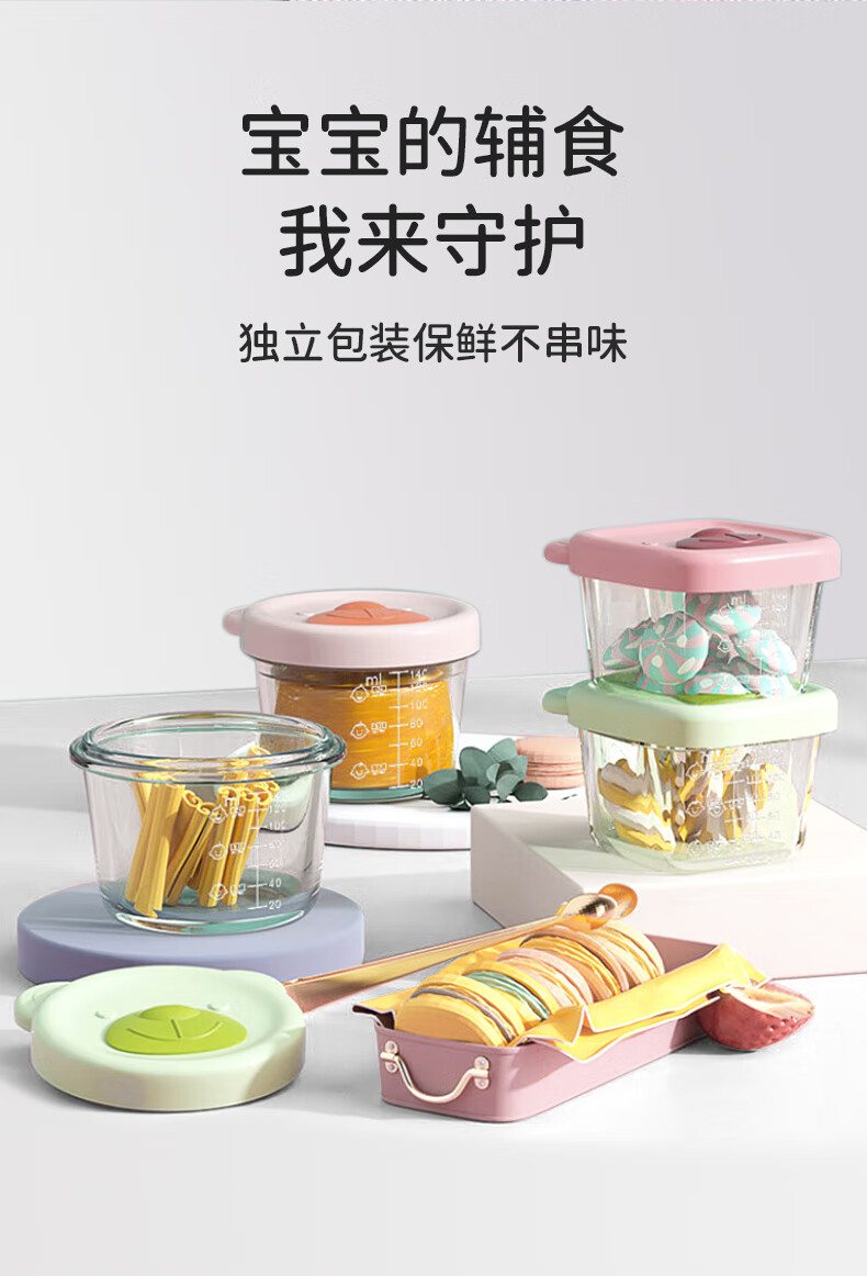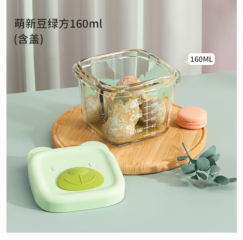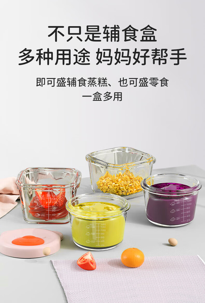 葆氏辅食盒碗玻璃婴儿储存保鲜可蒸煮分装冷冻密封模具(方+圆)2个装
