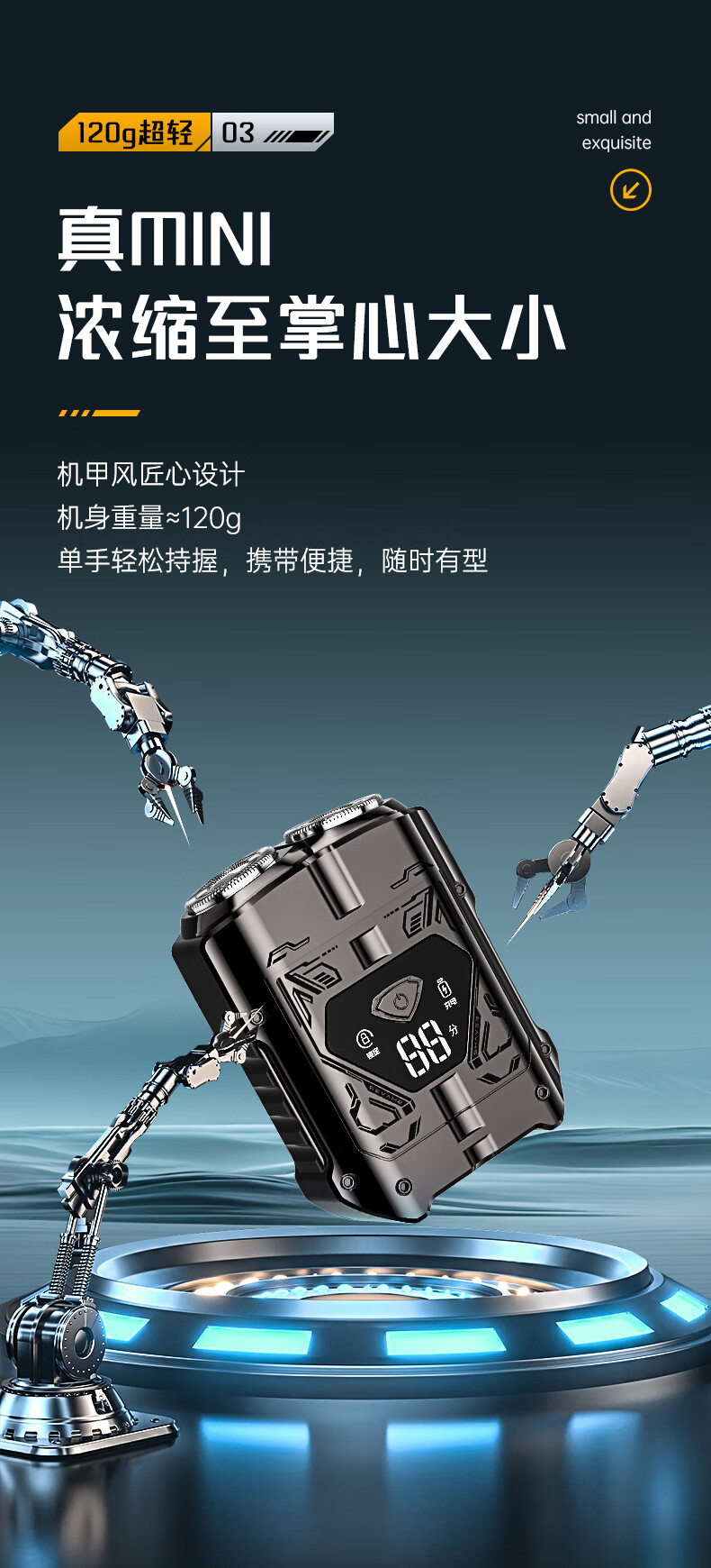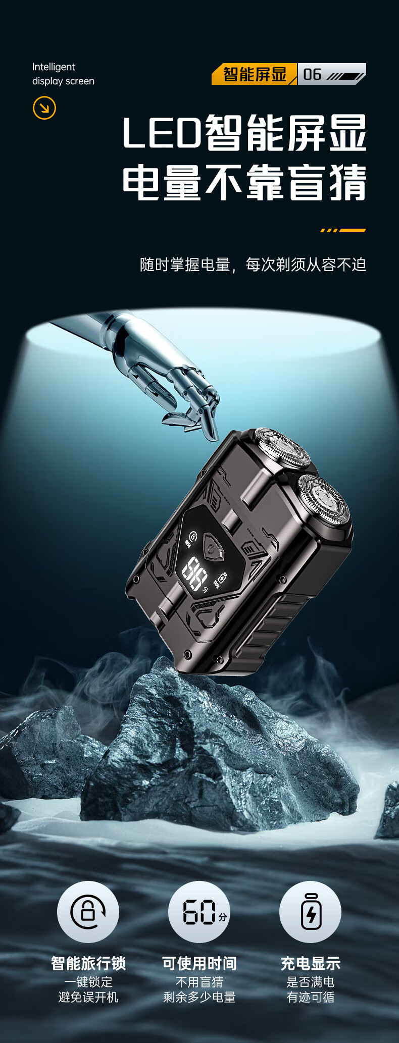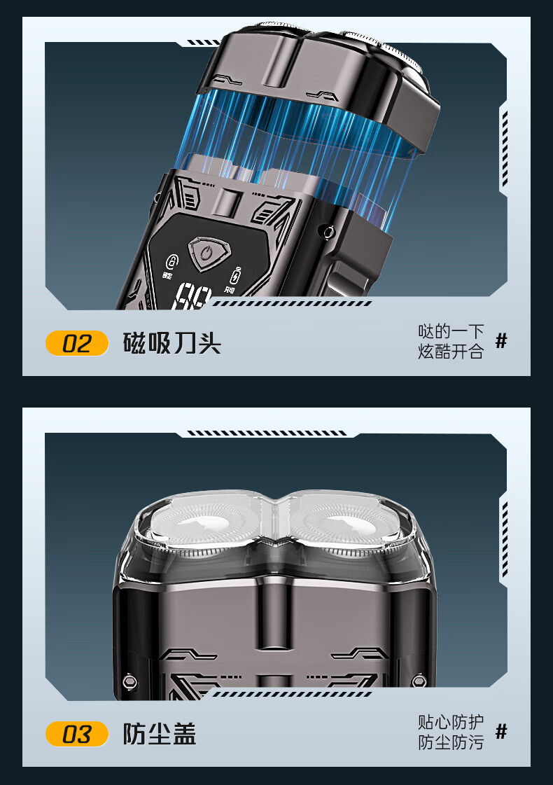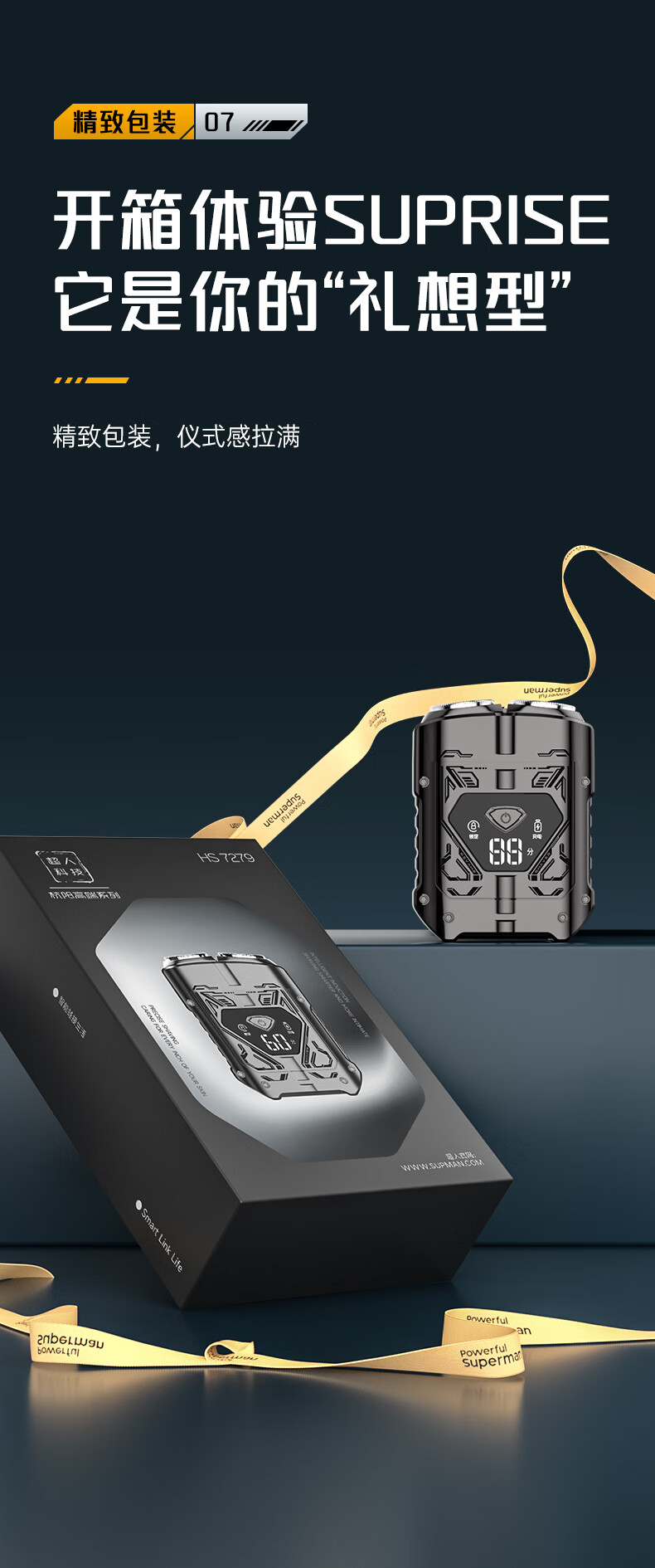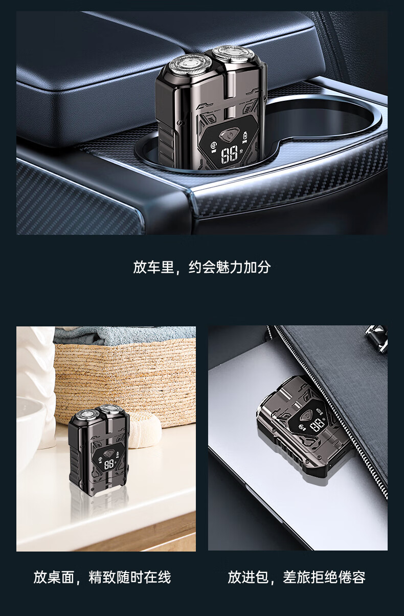 超人【出行必备】电动刮胡剃须刀小巧便携式迷你智能数显款刮胡刀Type-C充电全身水洗剃胡刀HS7279