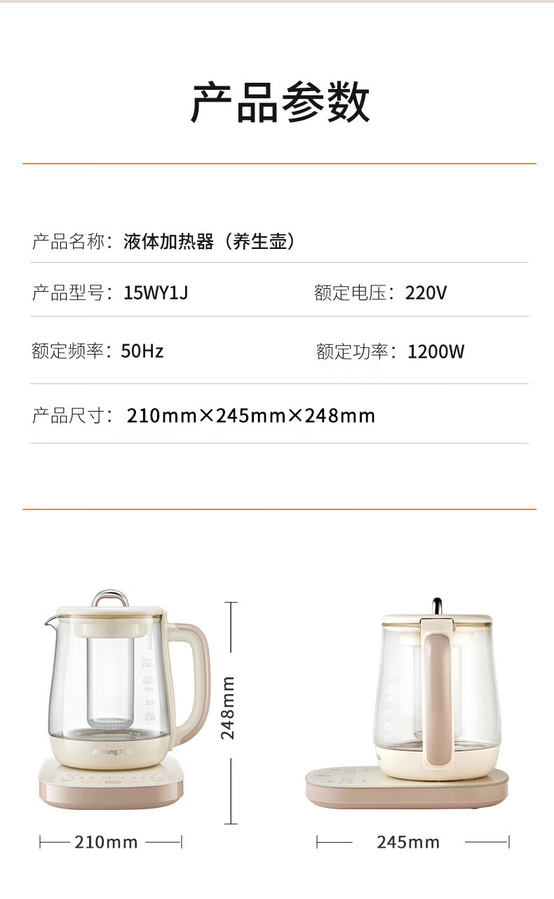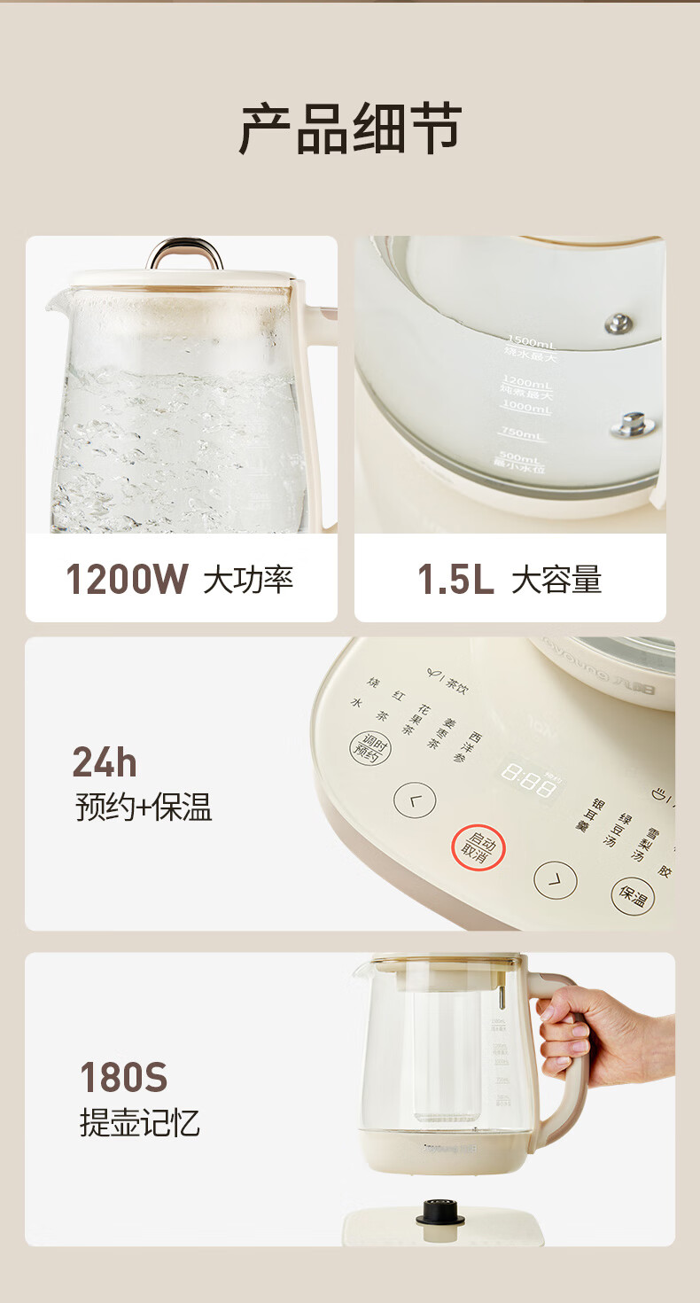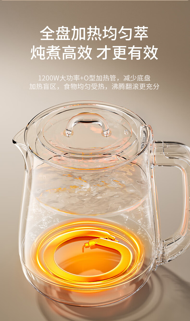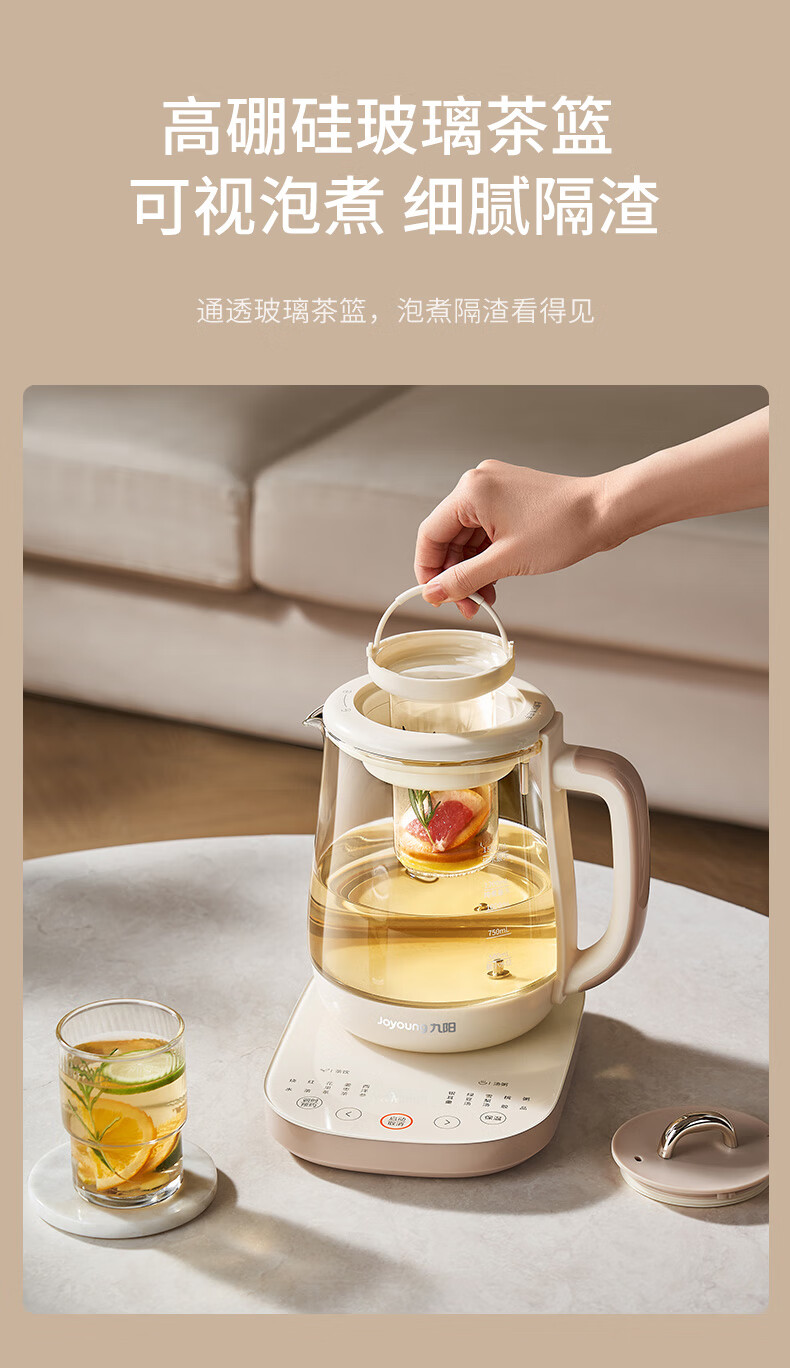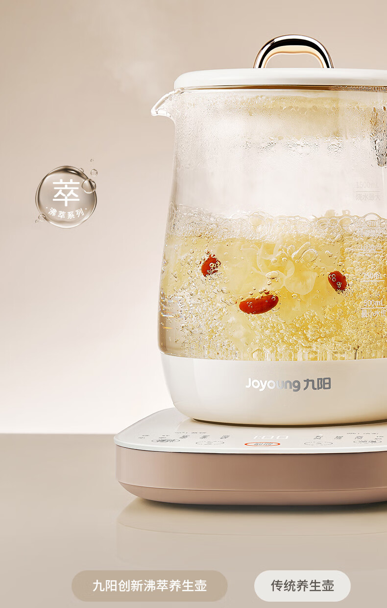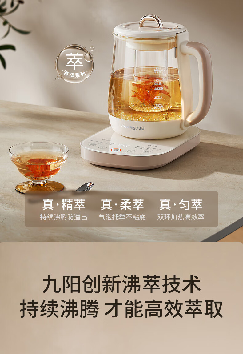 九阳(Joyoung)防溢沸萃家用养生壶迷你 1200W小气泡防糊恒温烧水壶 0胶水智能玻璃煮茶器【九阳漫生活】15WY1J