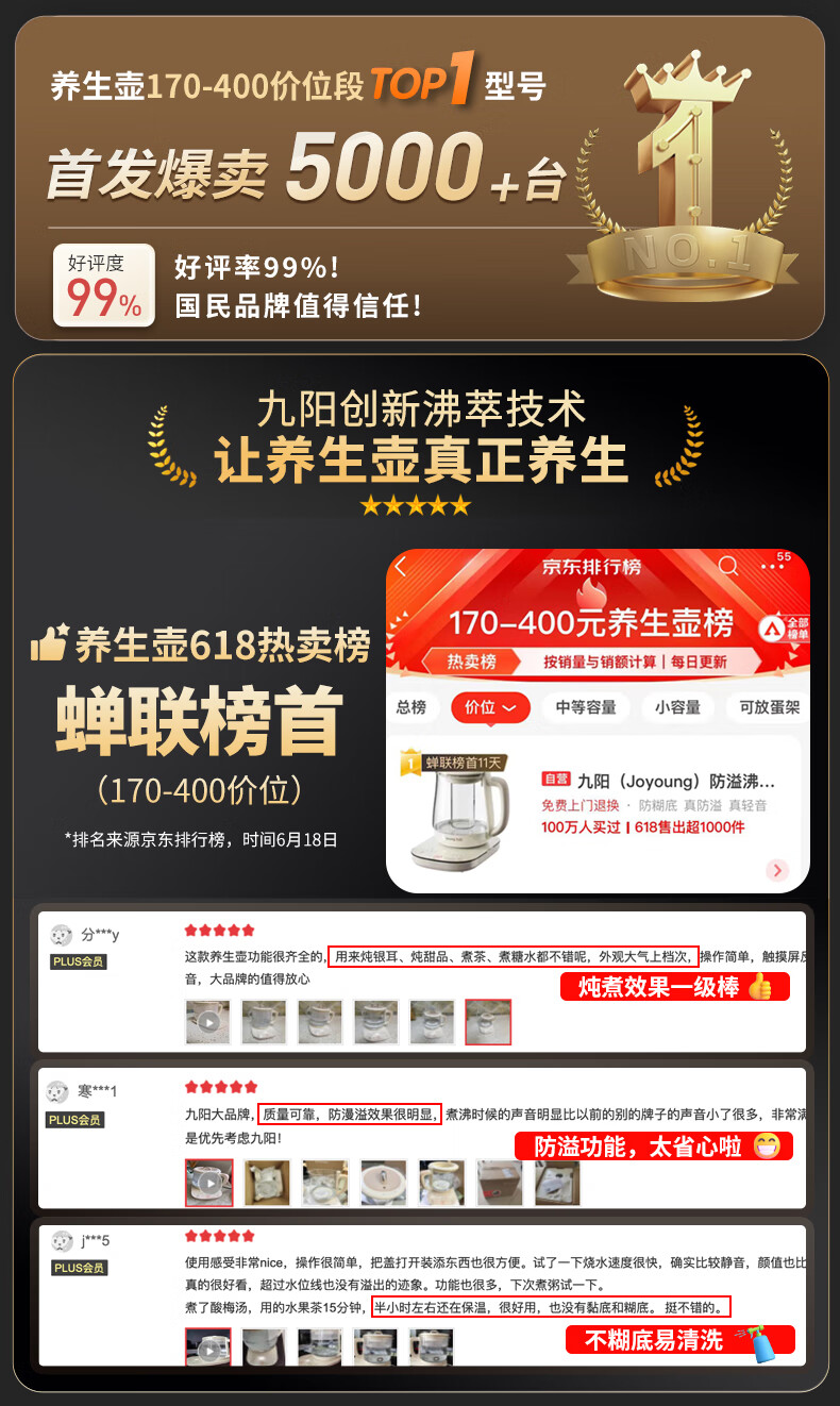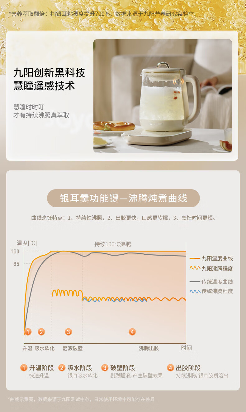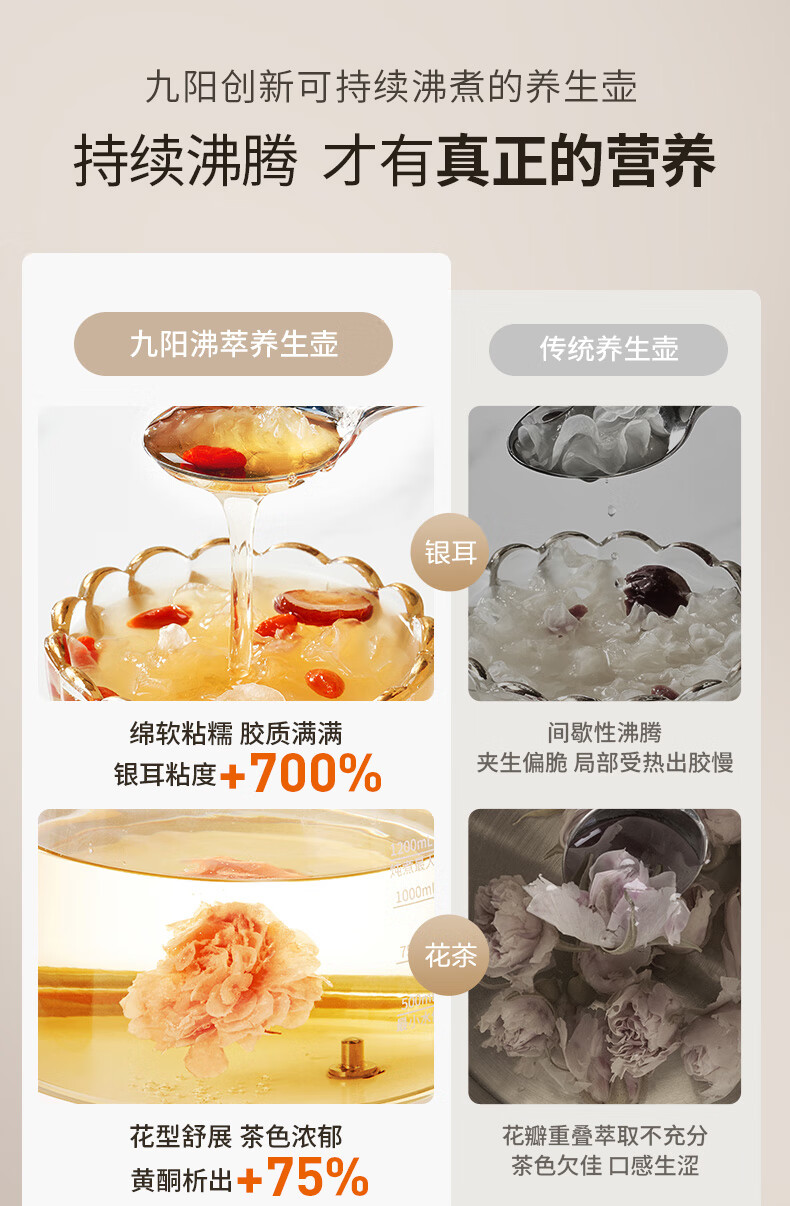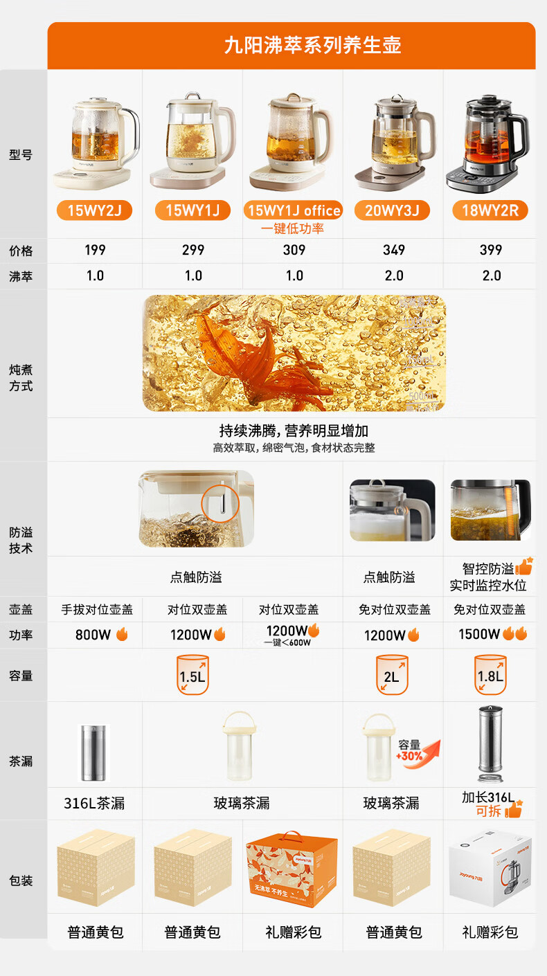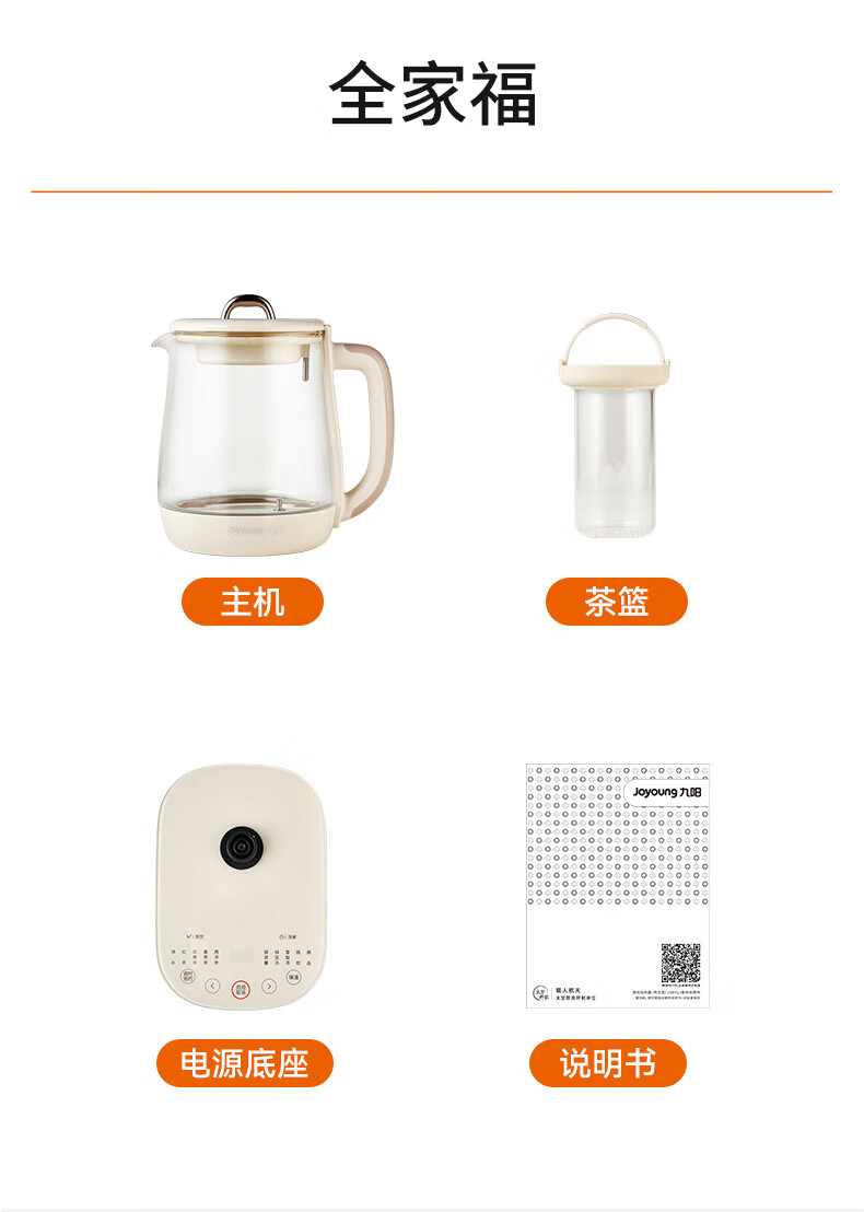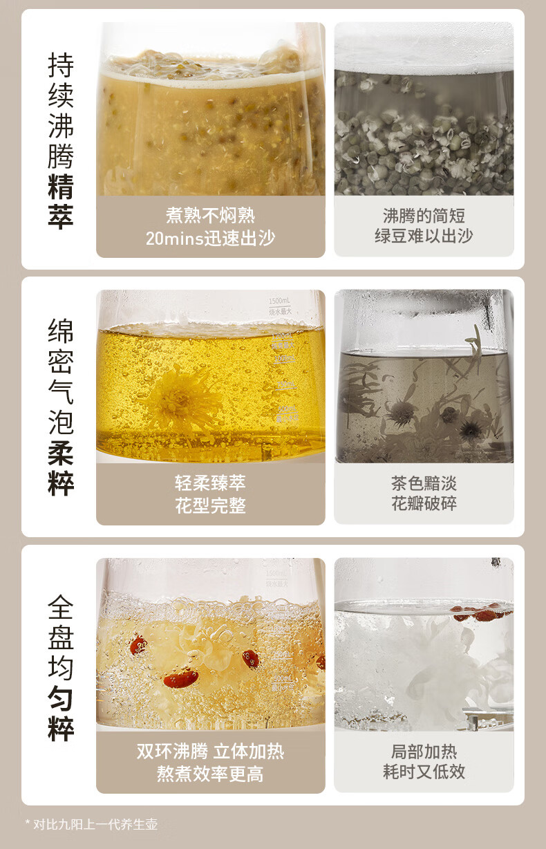 九阳(Joyoung)防溢沸萃家用养生壶迷你 1200W小气泡防糊恒温烧水壶 0胶水智能玻璃煮茶器【九阳漫生活】15WY1J
