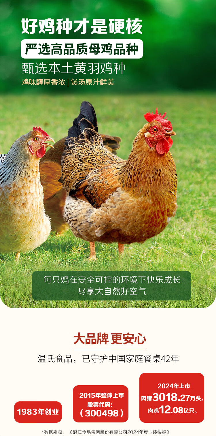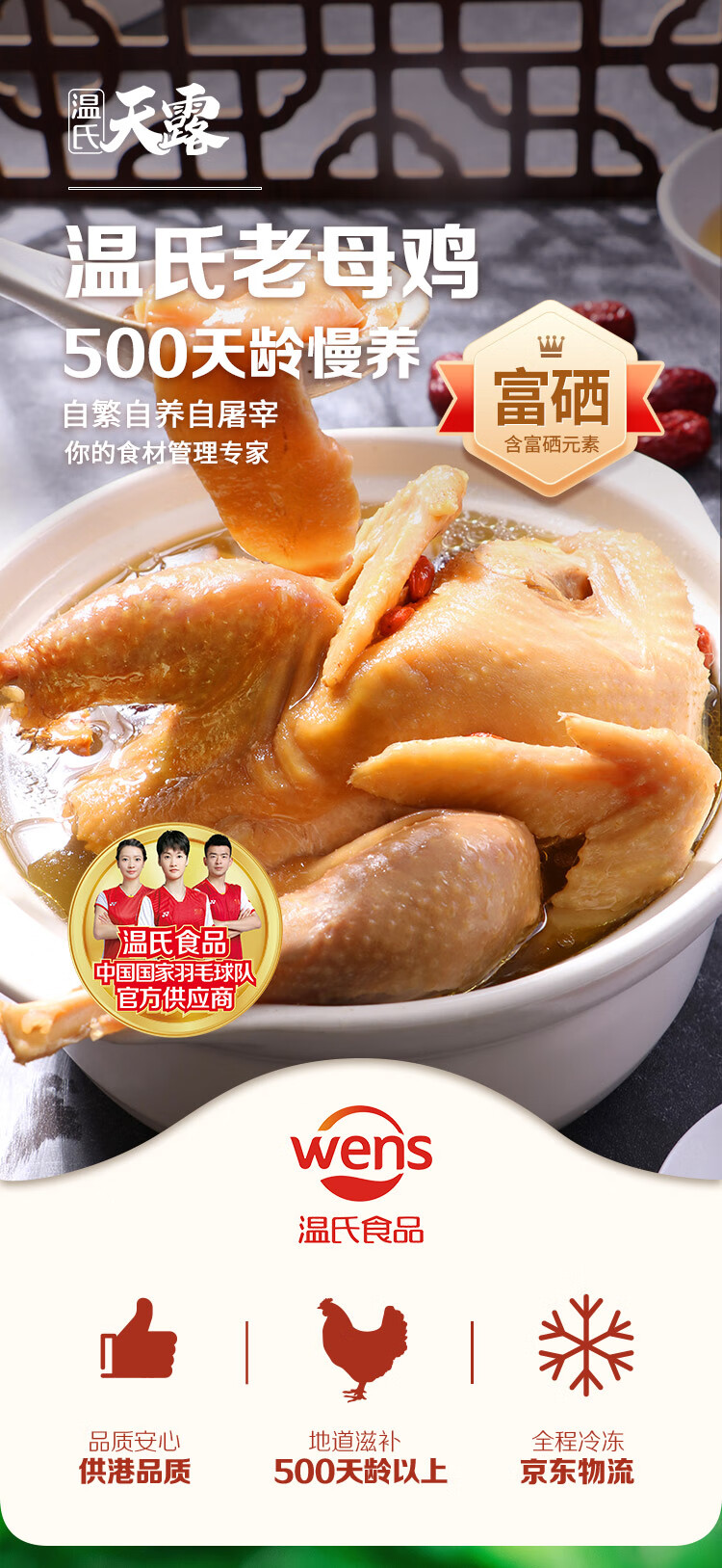 温氏 供港富硒老母鸡2.8斤 富硒农家走地鸡 月子汤散养500天以上 冷冻