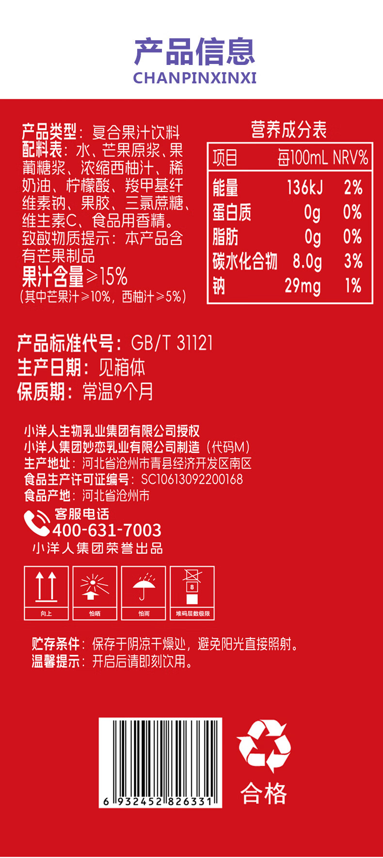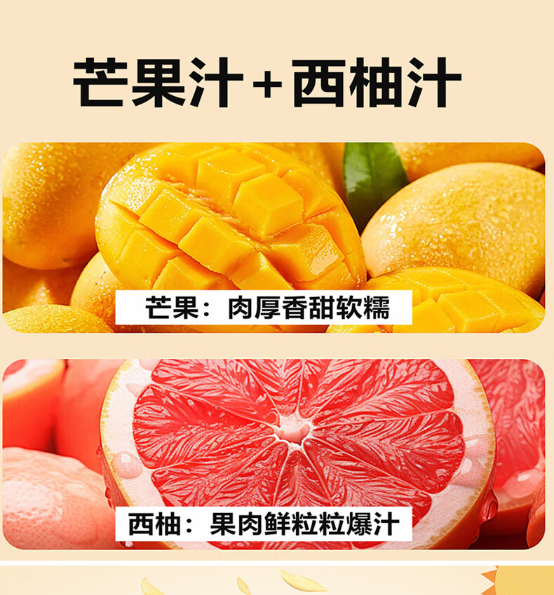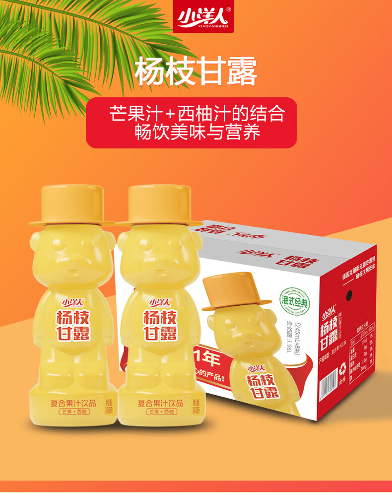小洋人杨枝甘露复合果汁饮品芒果汁+西柚汁245ml*8瓶