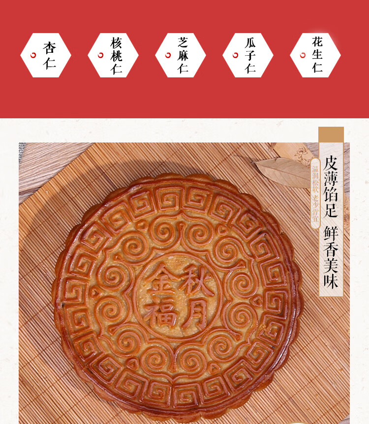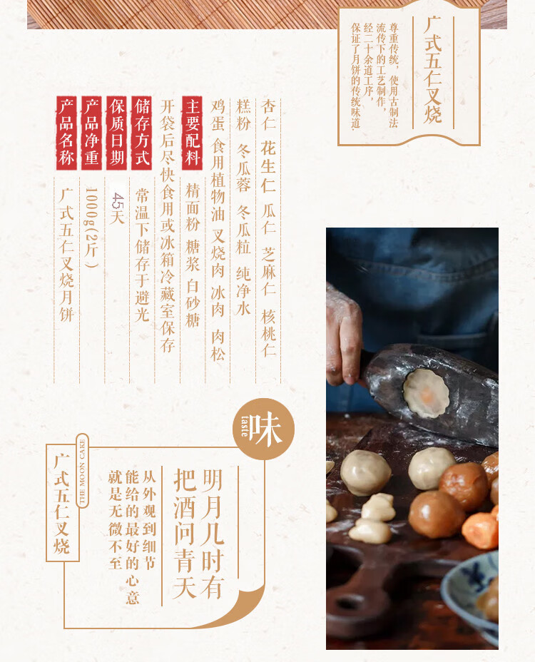 广式火腿伍仁金腿老式五仁叉烧大月饼咸口五仁月饼500g大月饼VV 五仁叉烧 一斤(彩盒装)