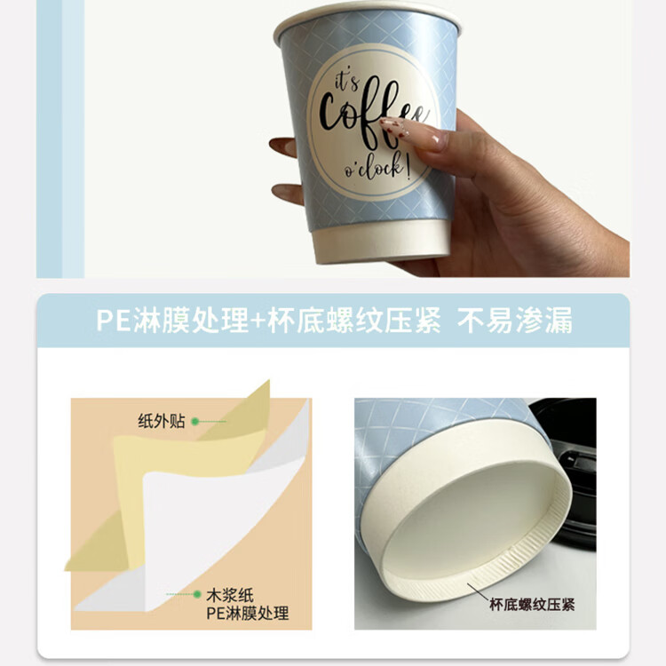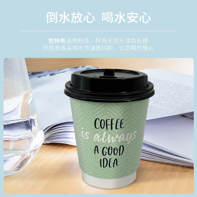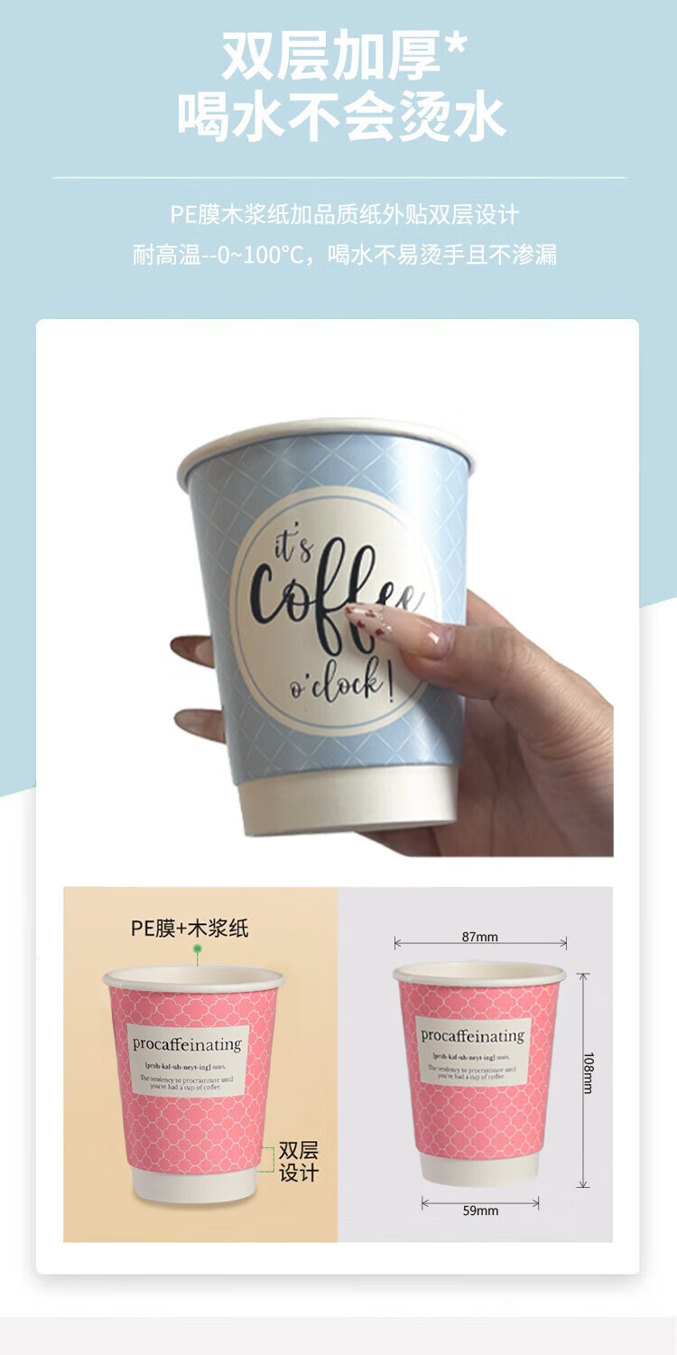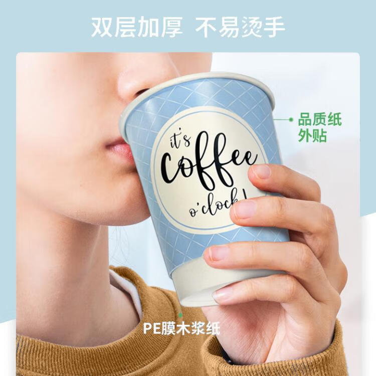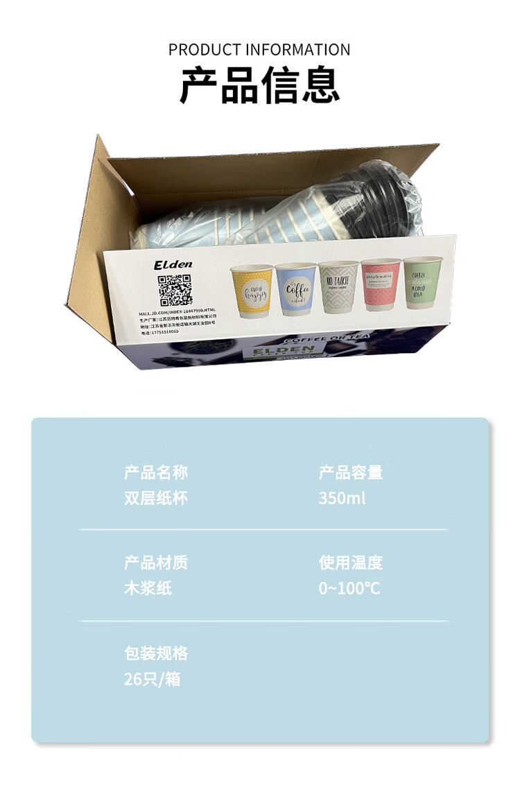 安尔登盒装高端商务中空双层隔热咖啡热饮茶水大容量12oz带盖一次性纸杯 350ml纸杯带盖*26
