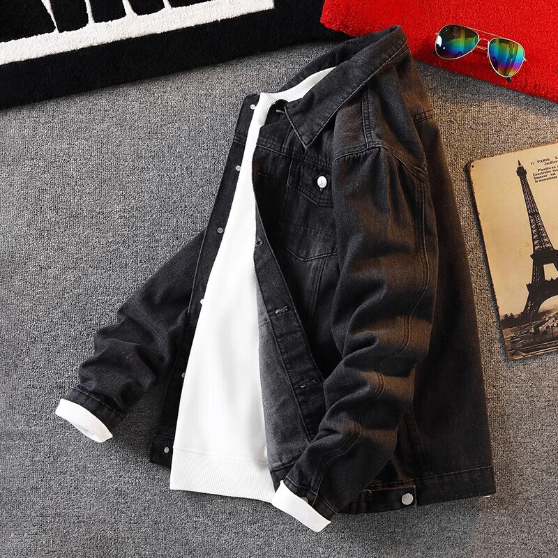 黑色牛仔外套男士春秋季2025新款感痞帅高端休闲百搭工装夹克 1813蓝色 3XL
