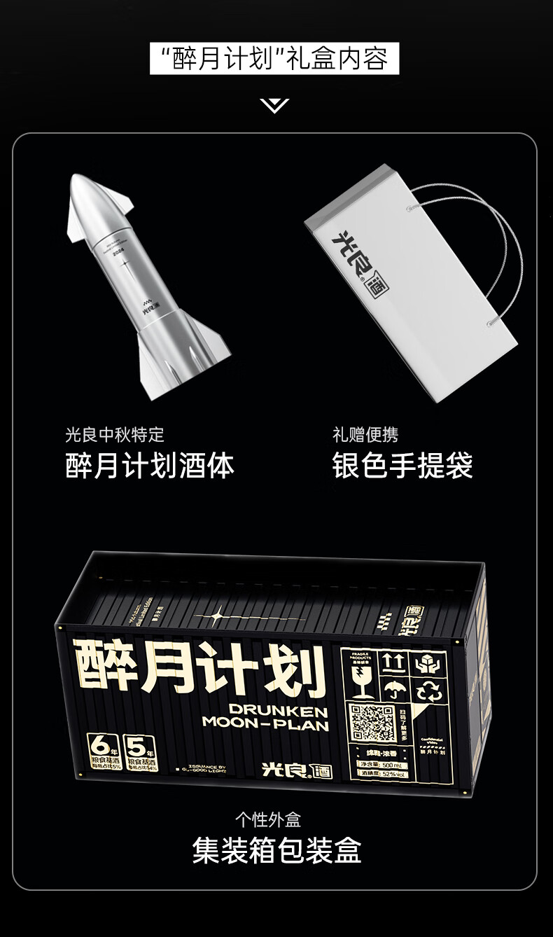 光良醉月计划52度纯粮食 浓香型500ml礼盒装送礼创意收藏 52%vol 500mL 1盒 礼盒装