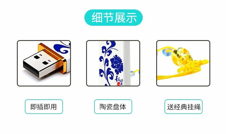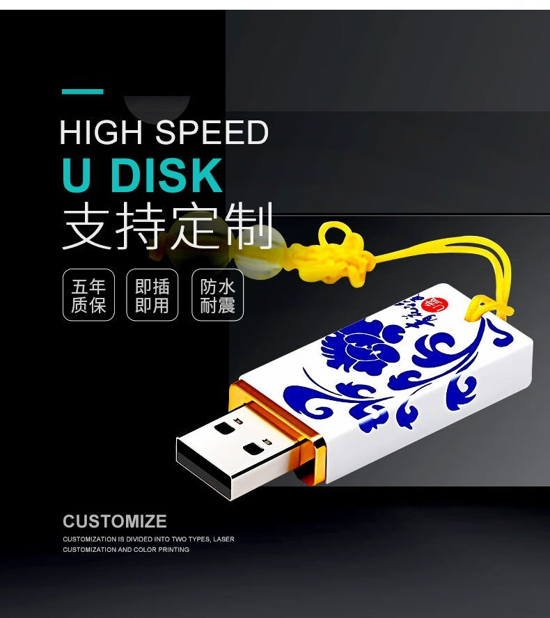 闪杰青花瓷U盘64g 陶瓷32/16/8/4/2g中国风礼品企业定制logo多容量 如需定制联系客服 2GB