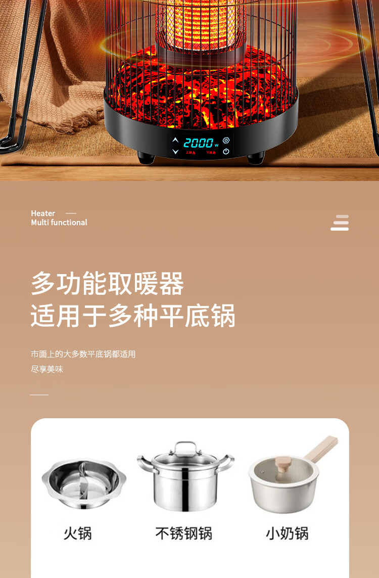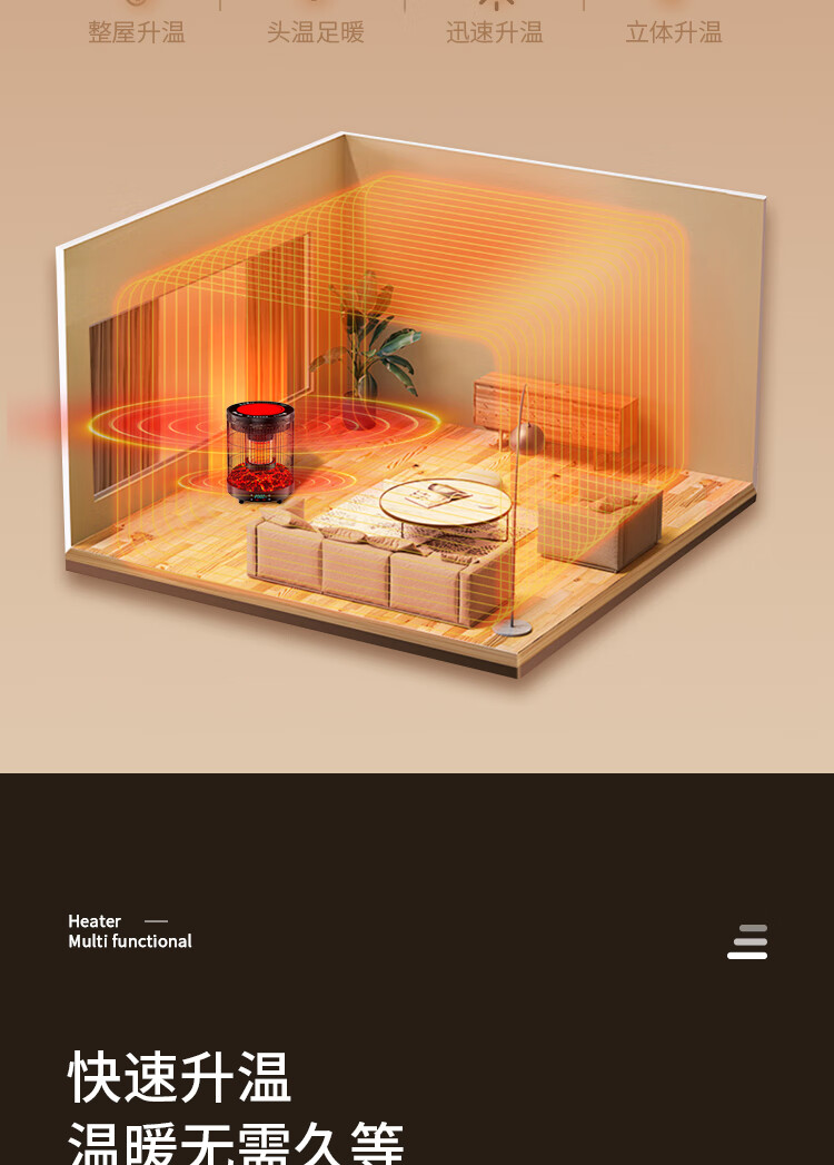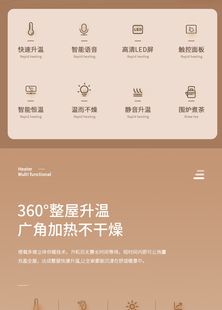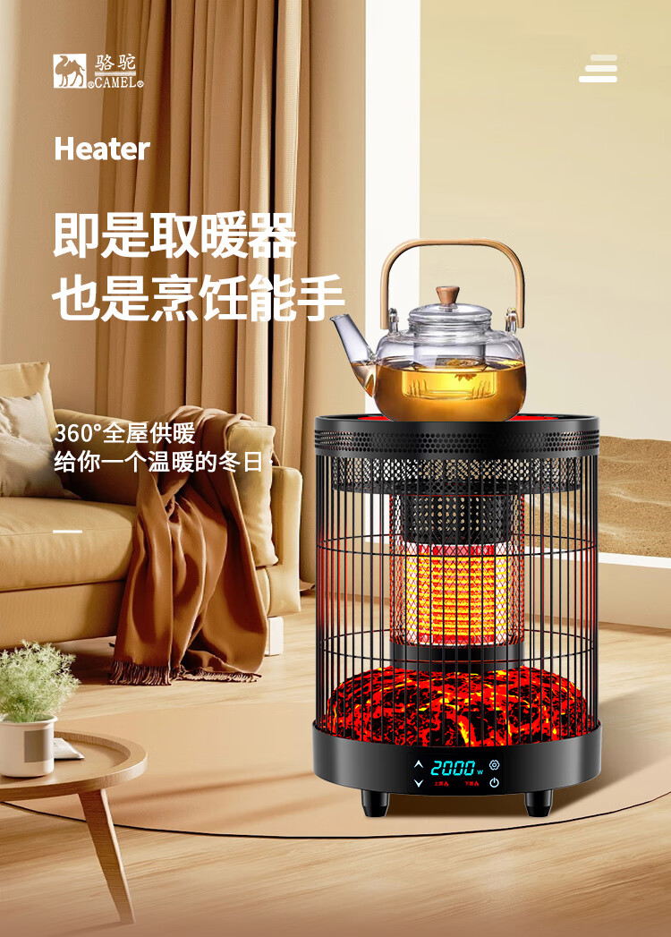 骆驼(CAMEL)智能语音取暖器360°环绕送暖家用节能烤火炉速热上下加热 语音取暖器+围炉桌【围炉煮茶】