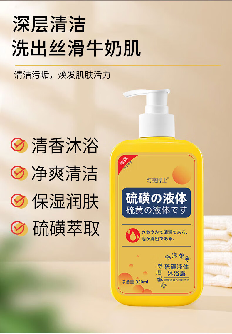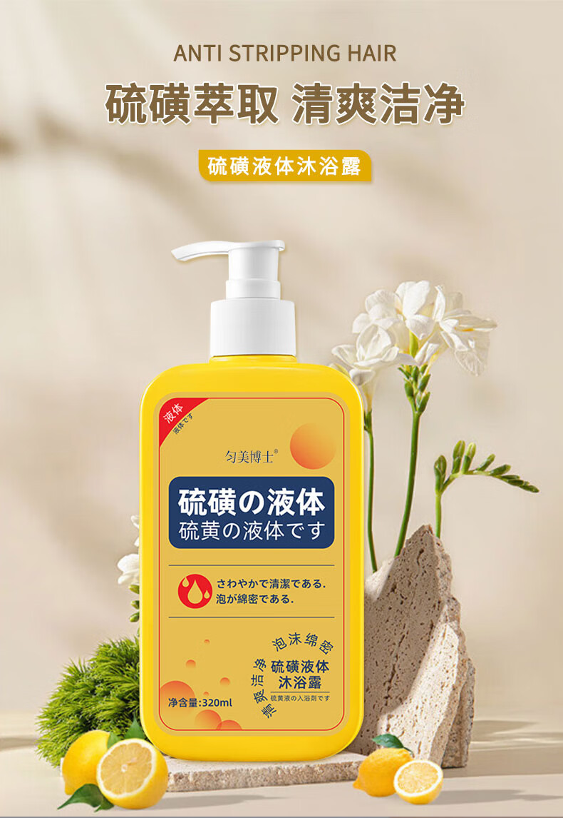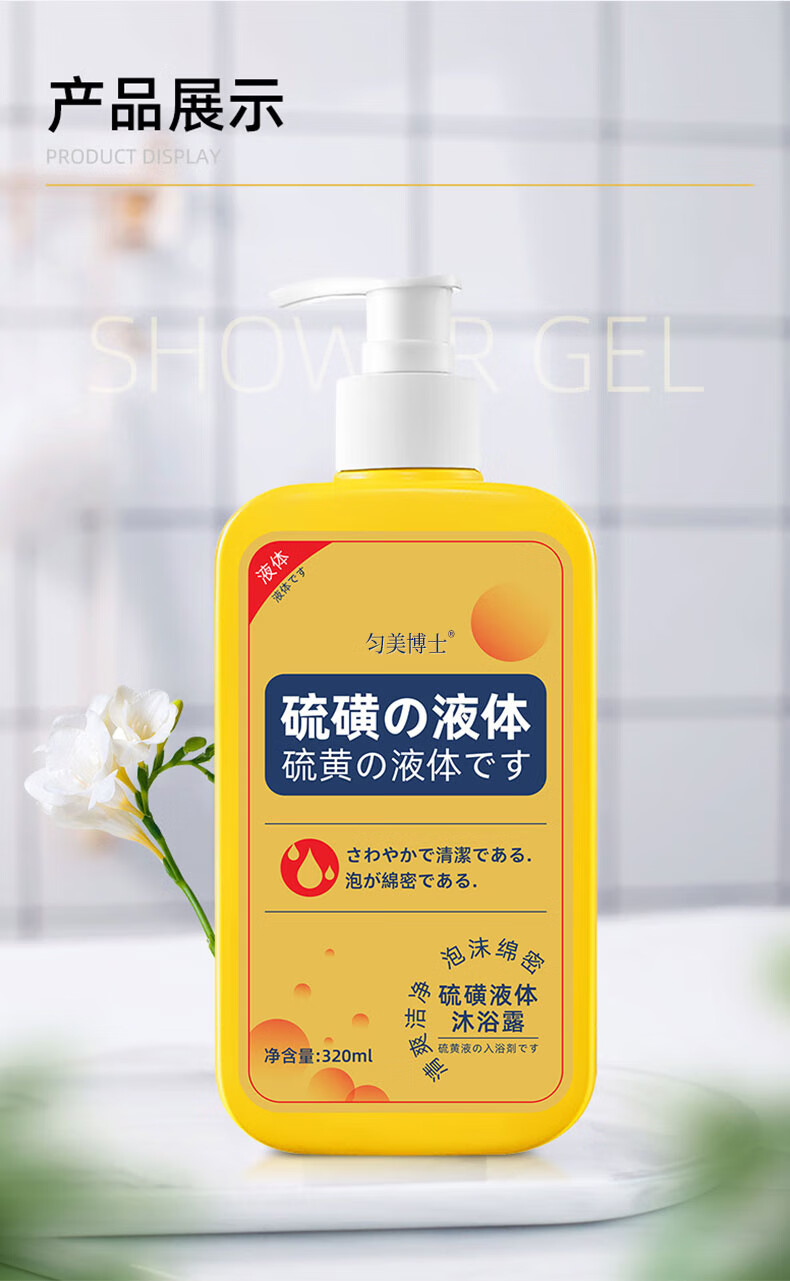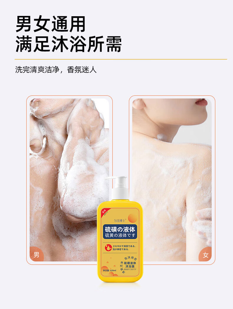 匀美博士硫磺除螨液体沐浴露清洁控油止痒保湿祛螨虫后背痘瘙痒男女通用 硫磺净螨液320mlx2瓶