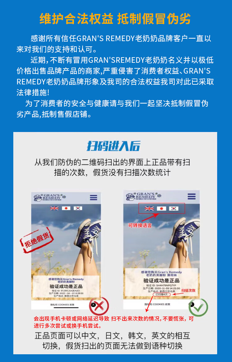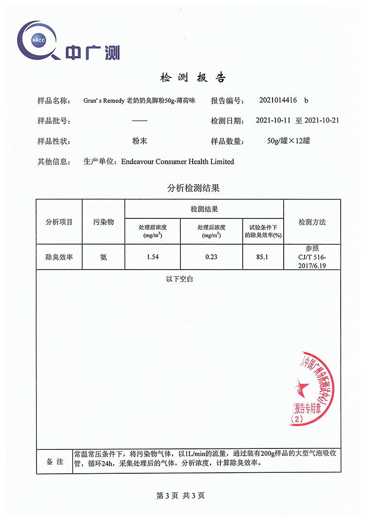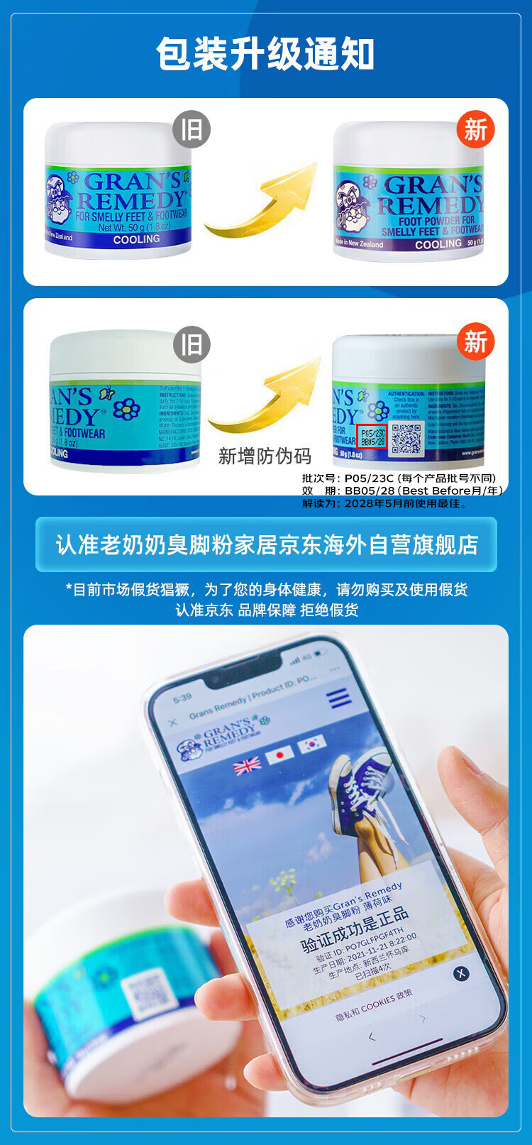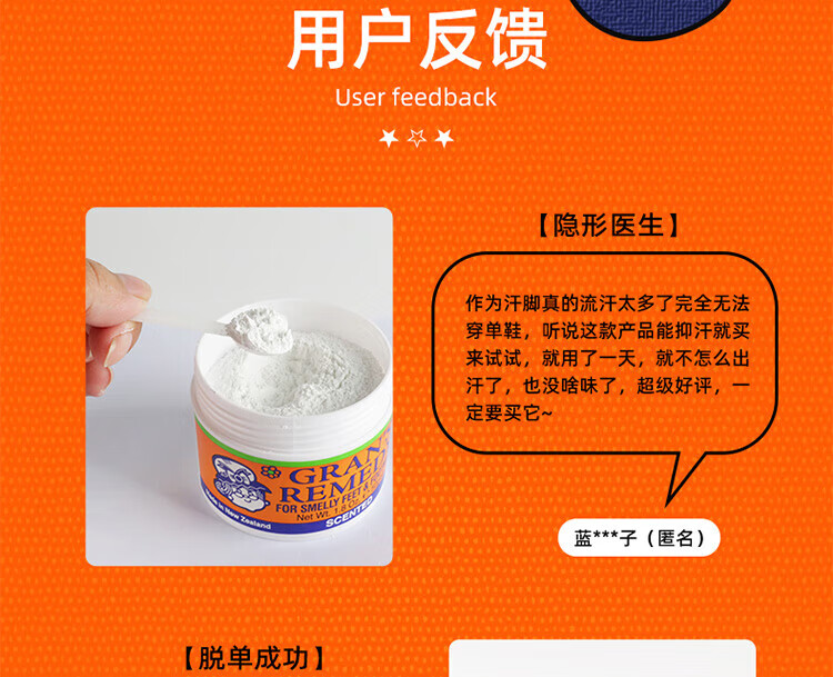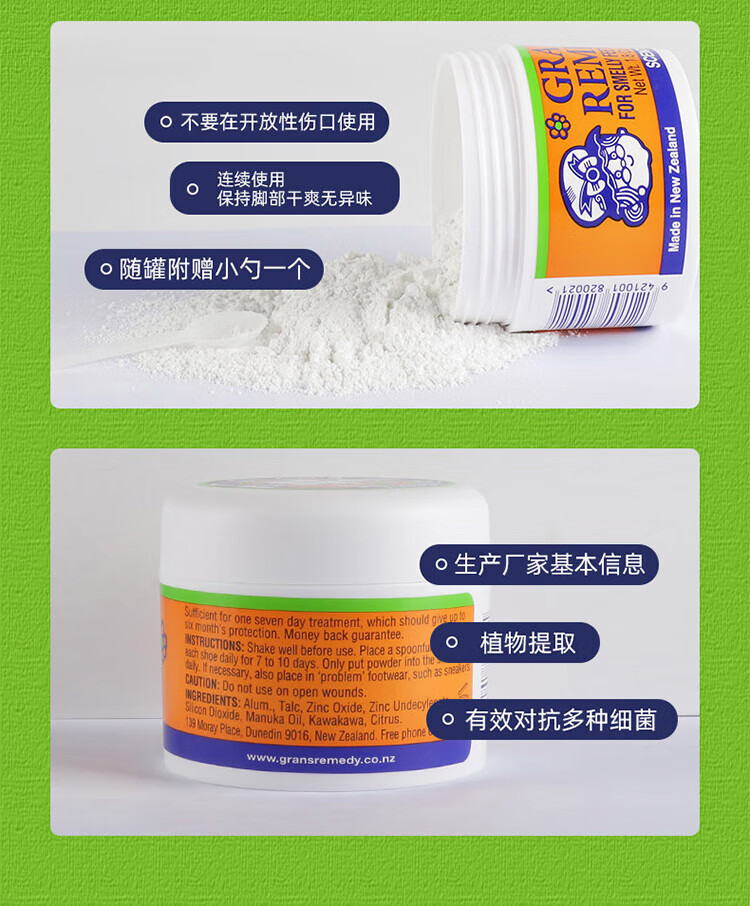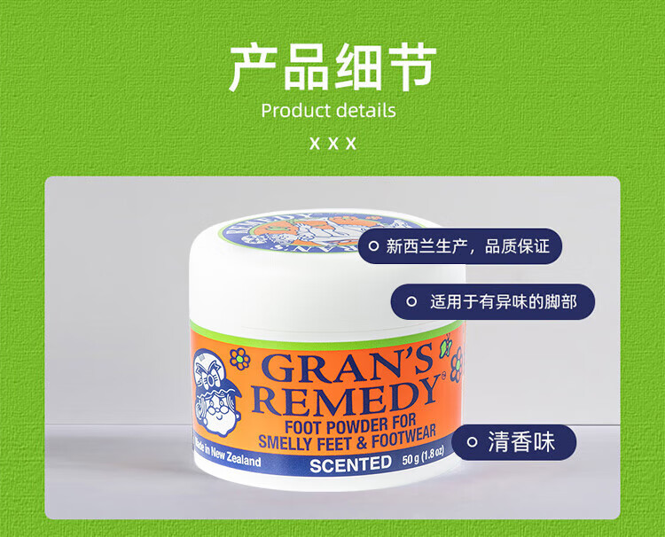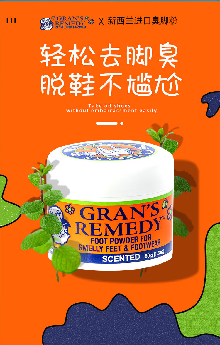老奶奶臭脚粉(Gran’s remedy)清香味50g*1 老奶奶脚臭粉杀菌抑菌净化除味脚臭鞋子除臭