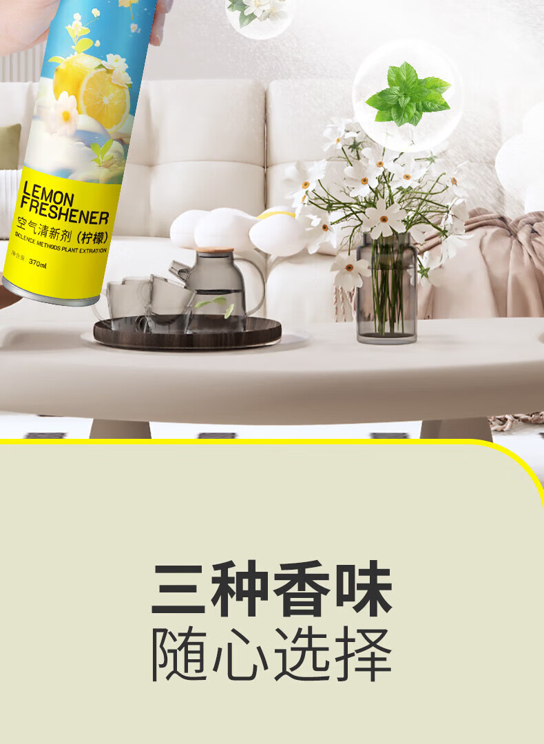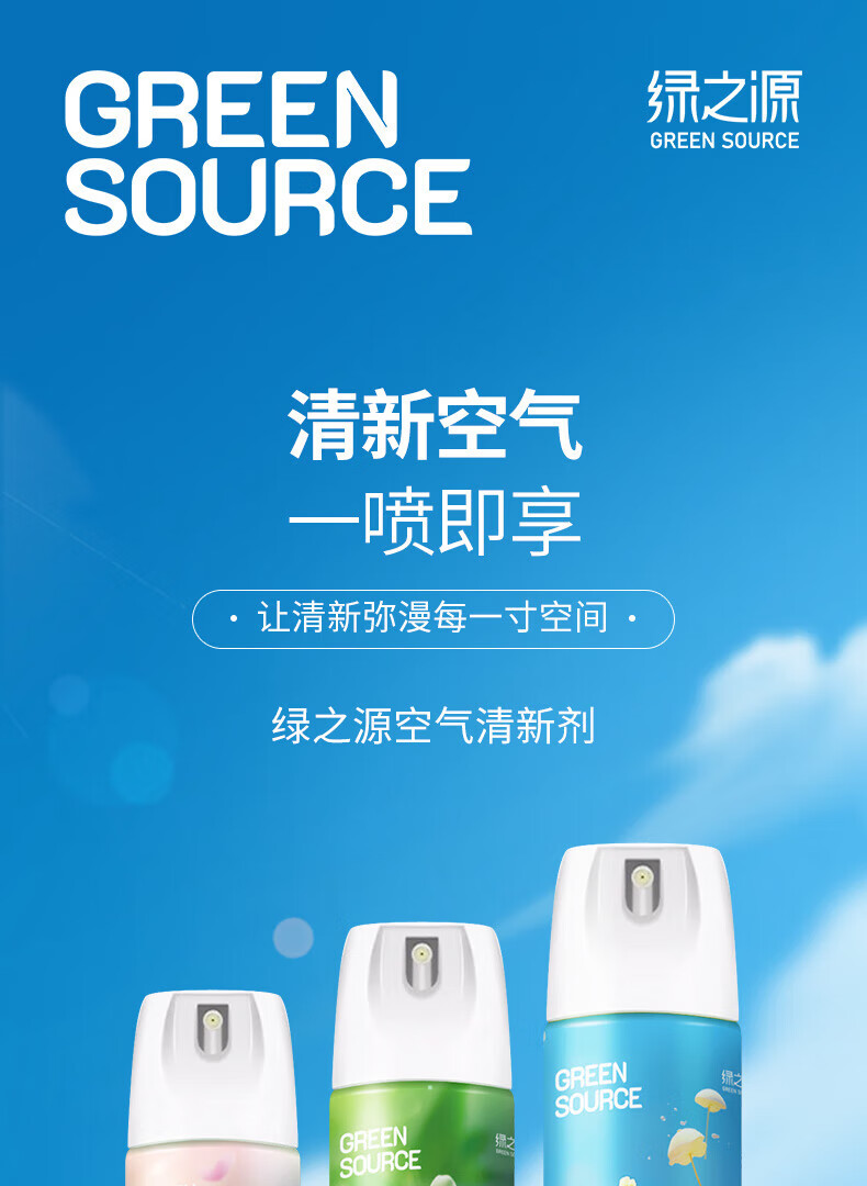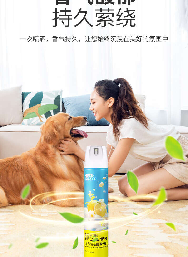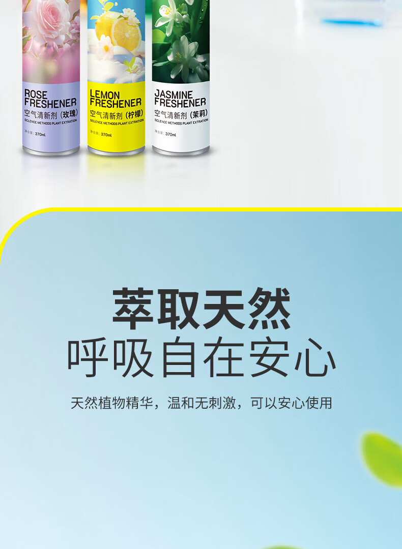 绿之源绿之源空气清新剂喷雾370ml卧室车内除异味薰香厕所除味香氛 玫瑰370ml+茉莉370ml+柠檬370ml