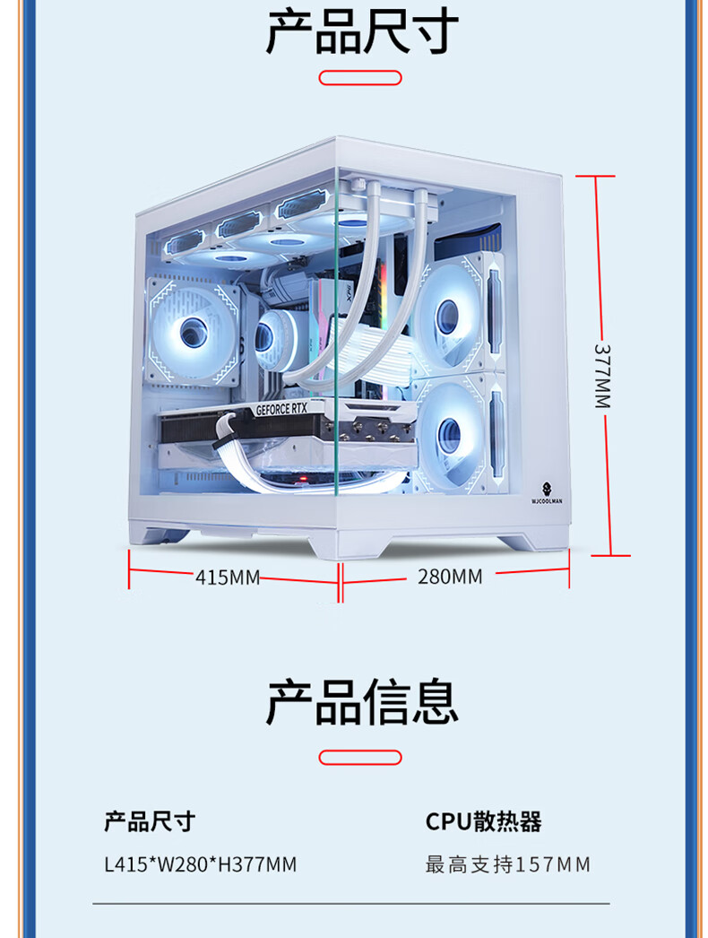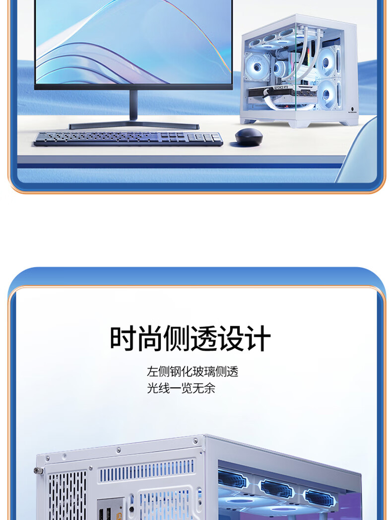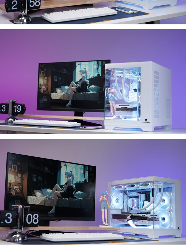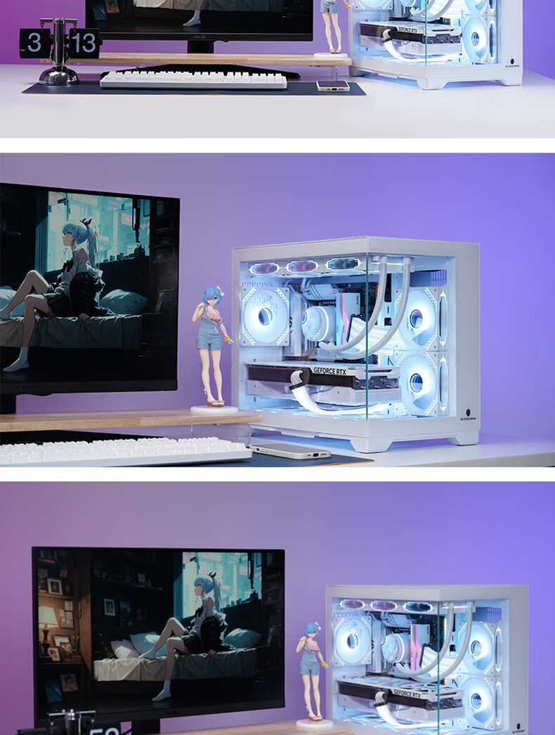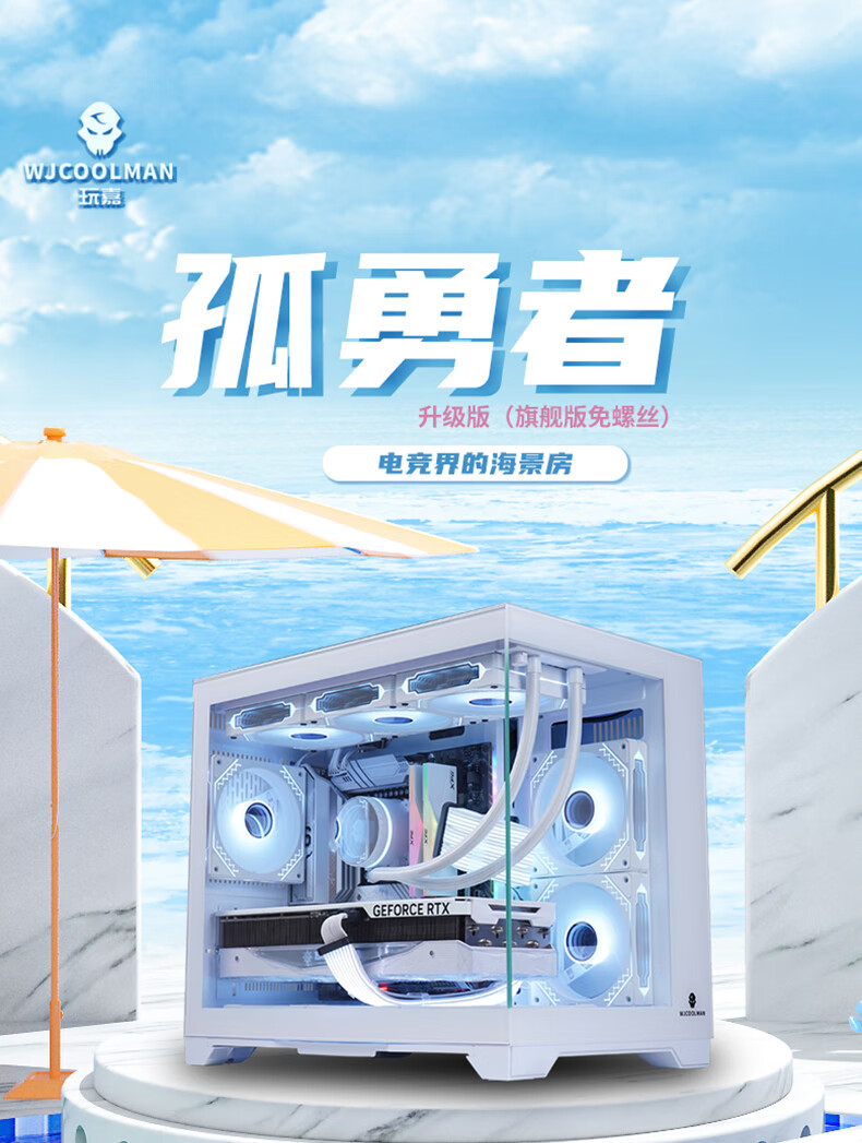 玩嘉 孤勇者白(无A柱)+棱镜RGB六风扇套装 海景房机箱台式电脑主机箱 M-ATX主板/360水冷/4090显卡