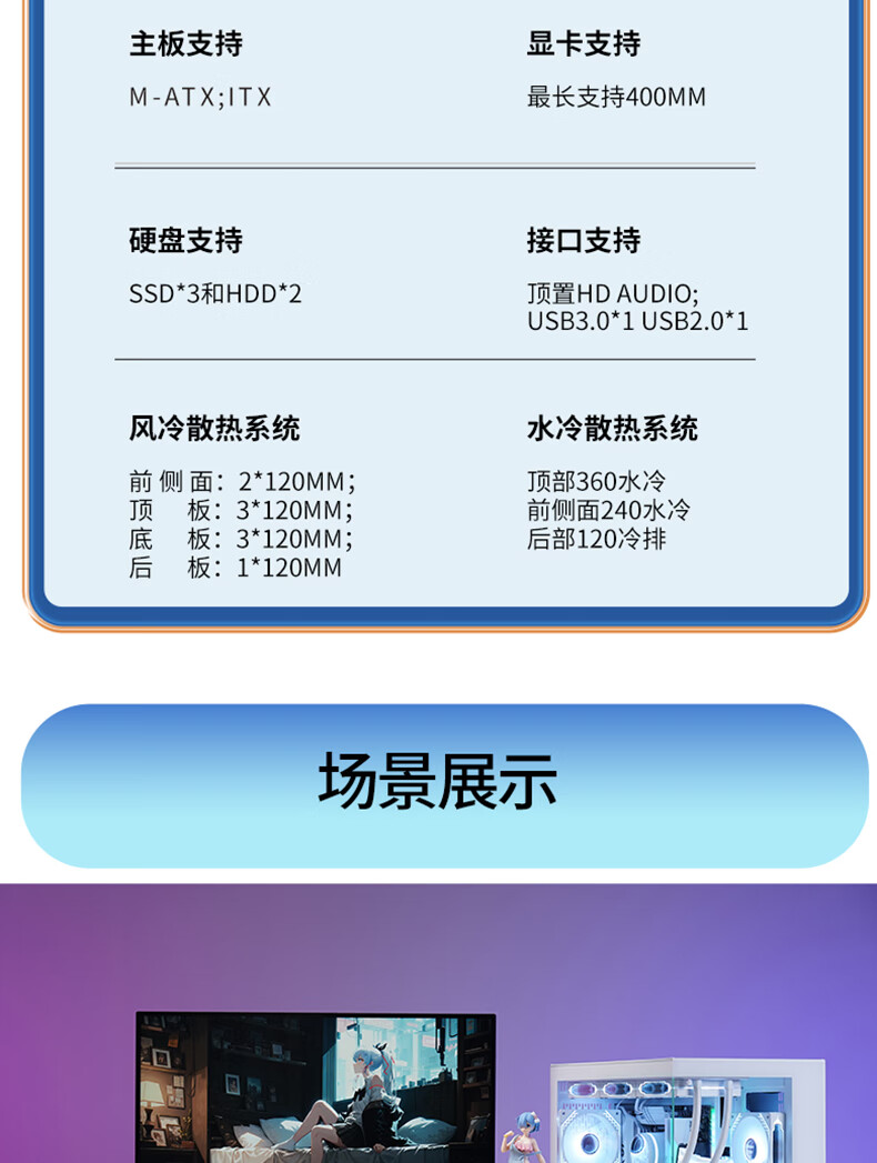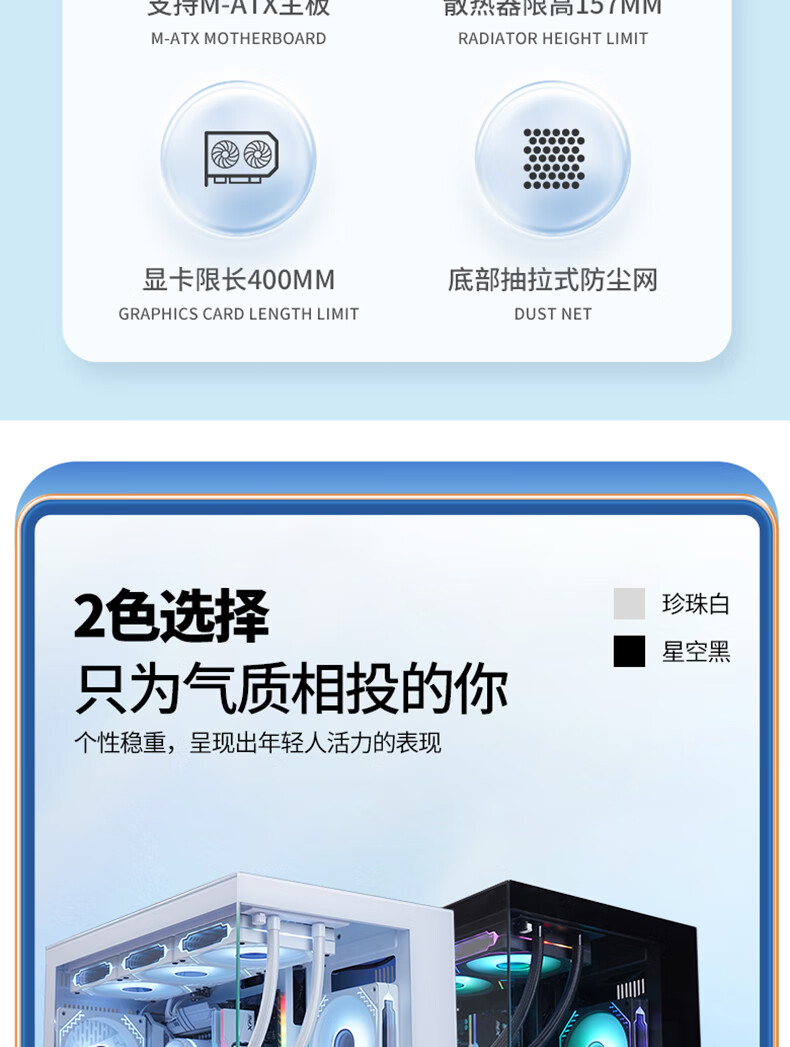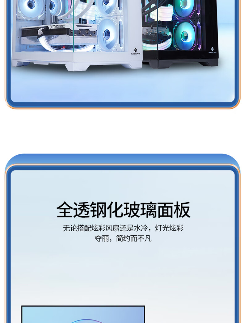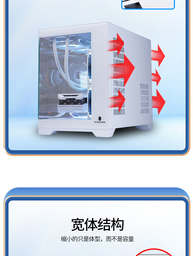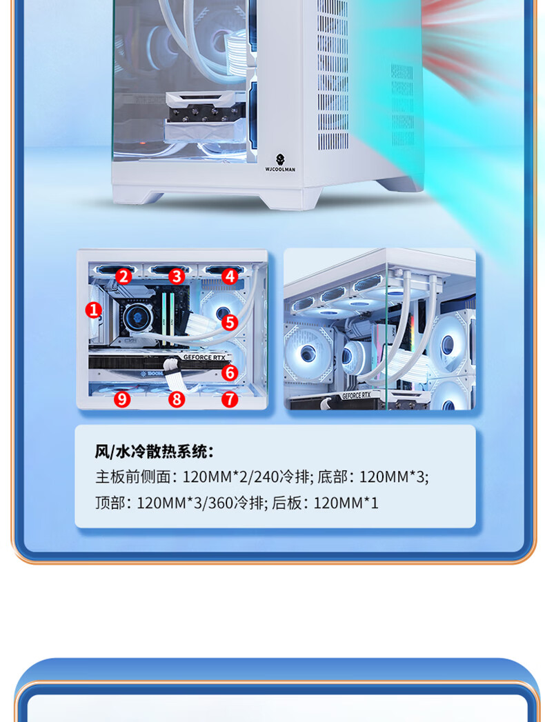玩嘉 孤勇者白(无A柱)+棱镜RGB六风扇套装 海景房机箱台式电脑主机箱 M-ATX主板/360水冷/4090显卡