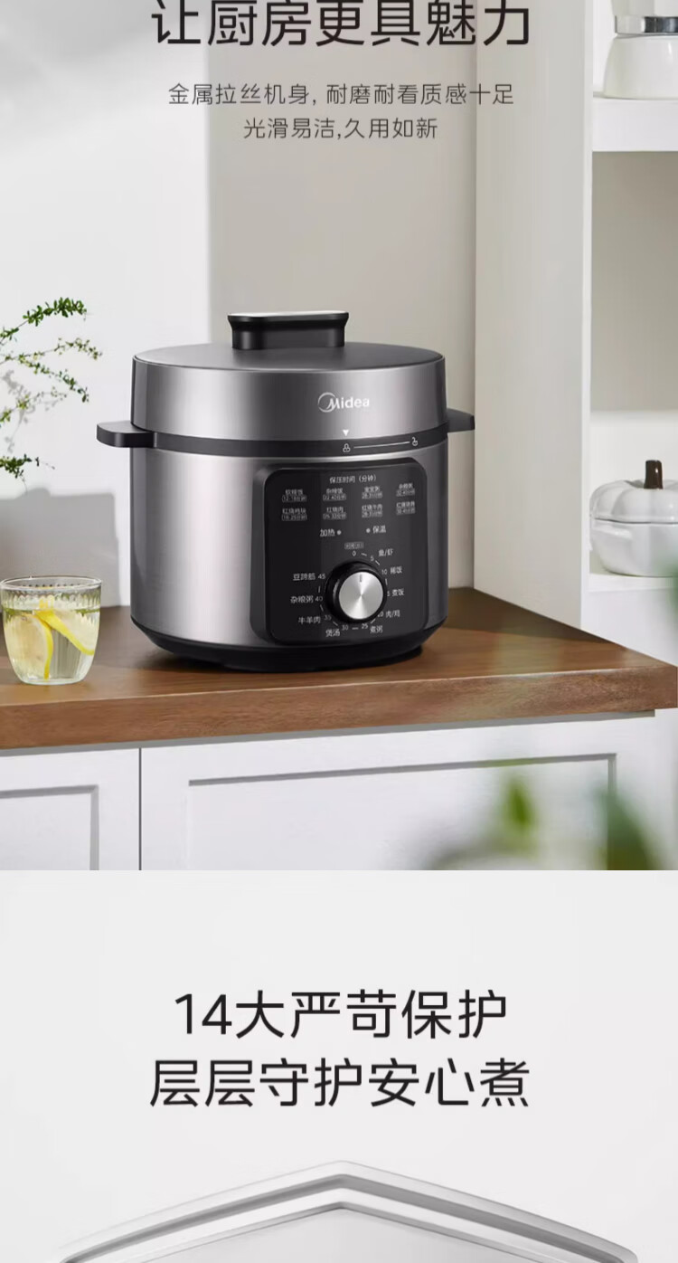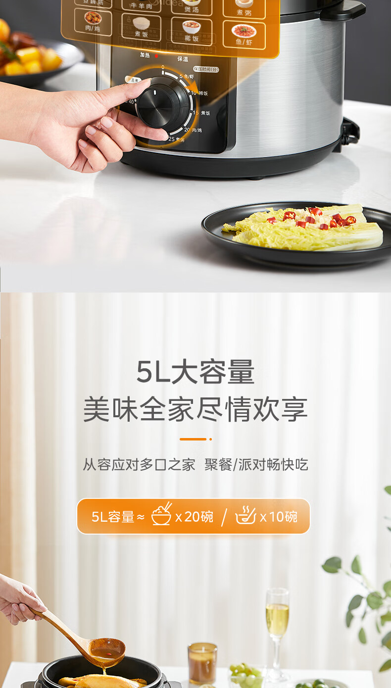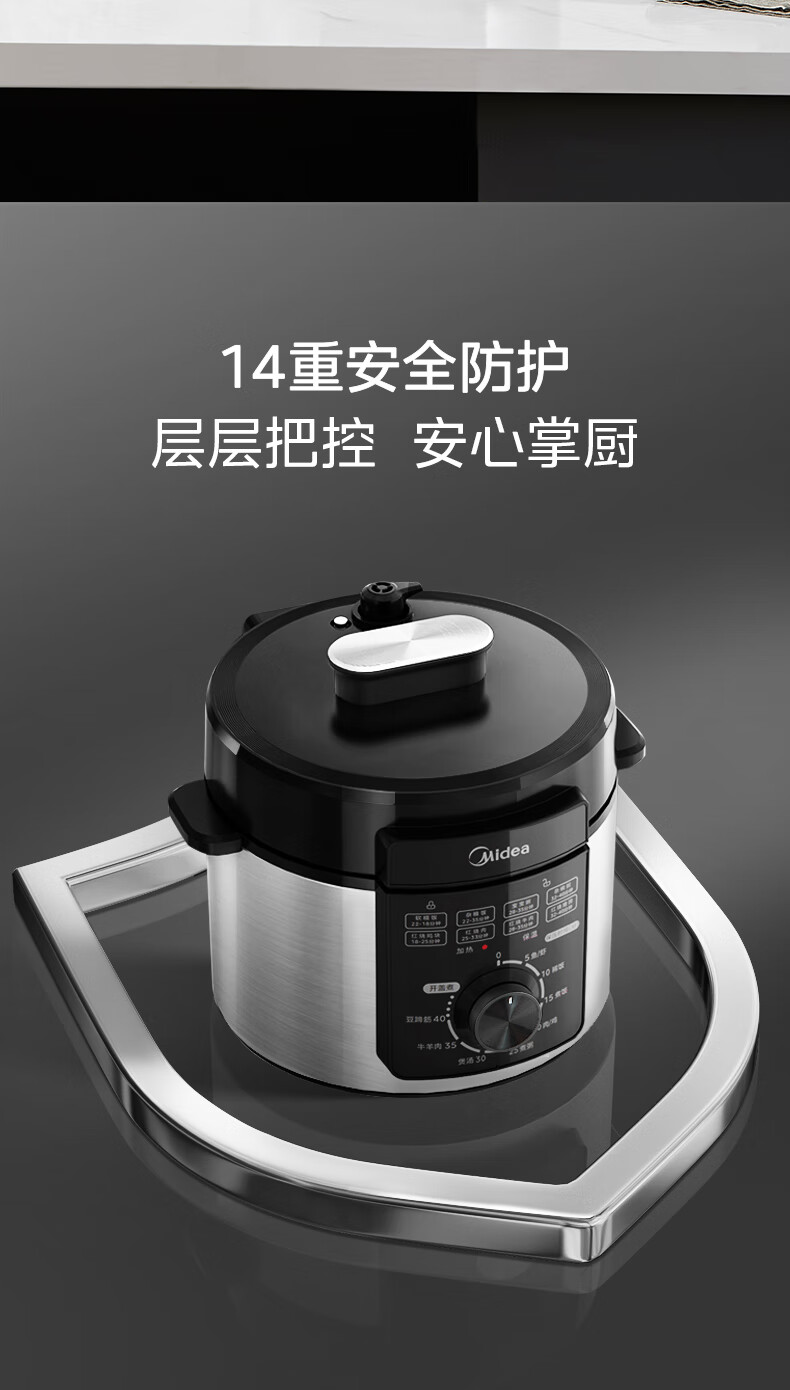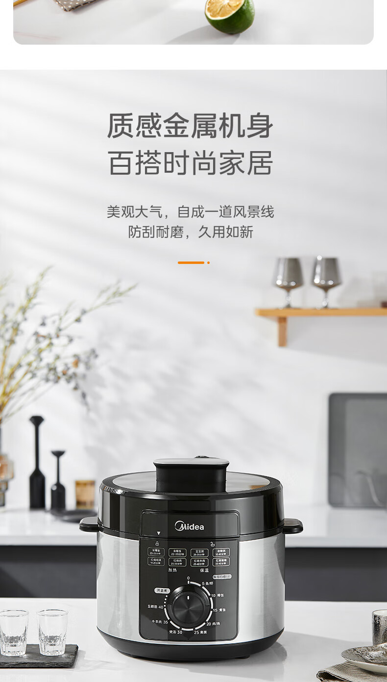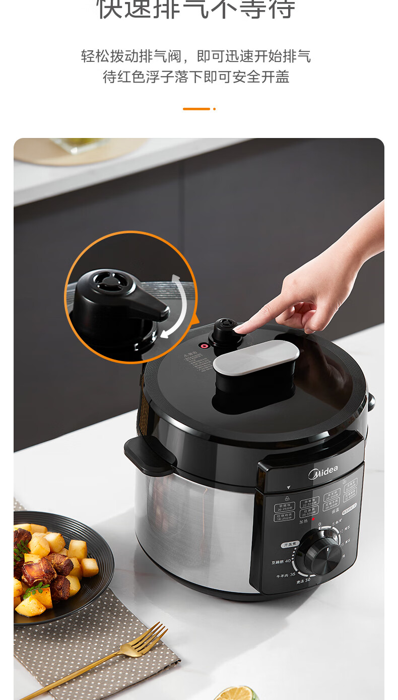 美的(Midea)电压力锅 家用高压锅电高压锅电饭煲多功能锅压力锅电饭锅高压电饭锅大容量1-2-3-4-5-6-8人 5L 【店长推荐】高压快煮 旋钮操作