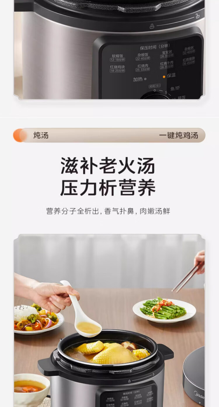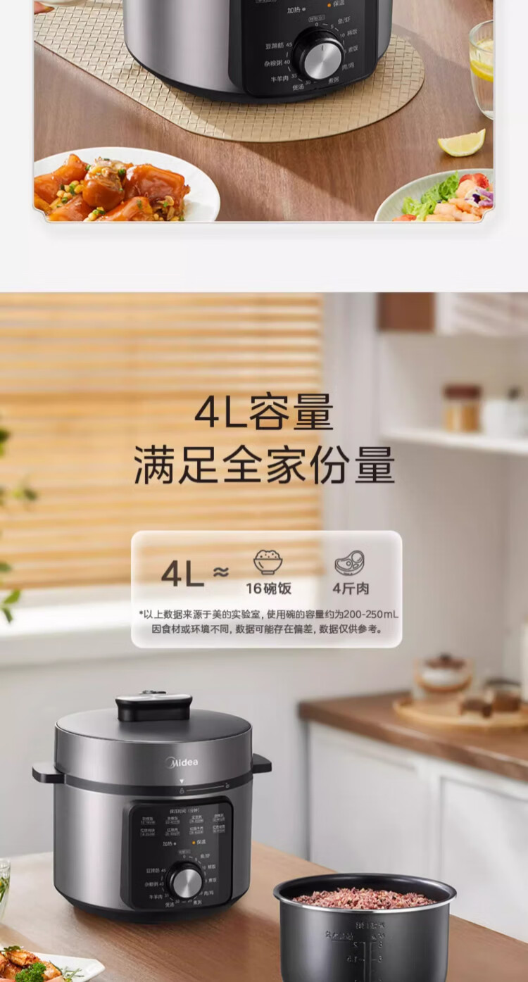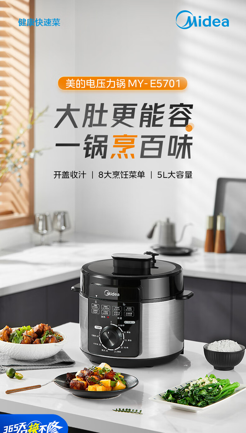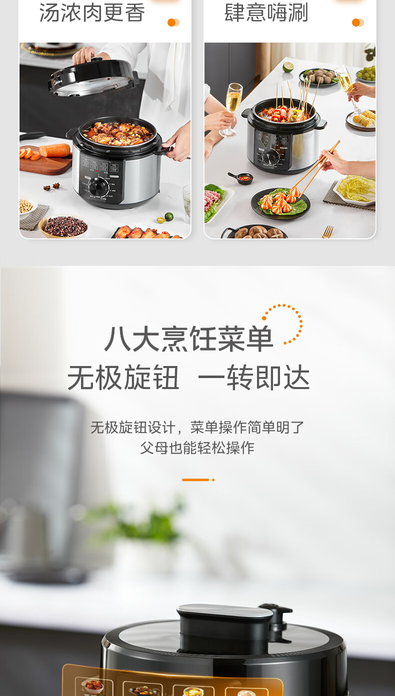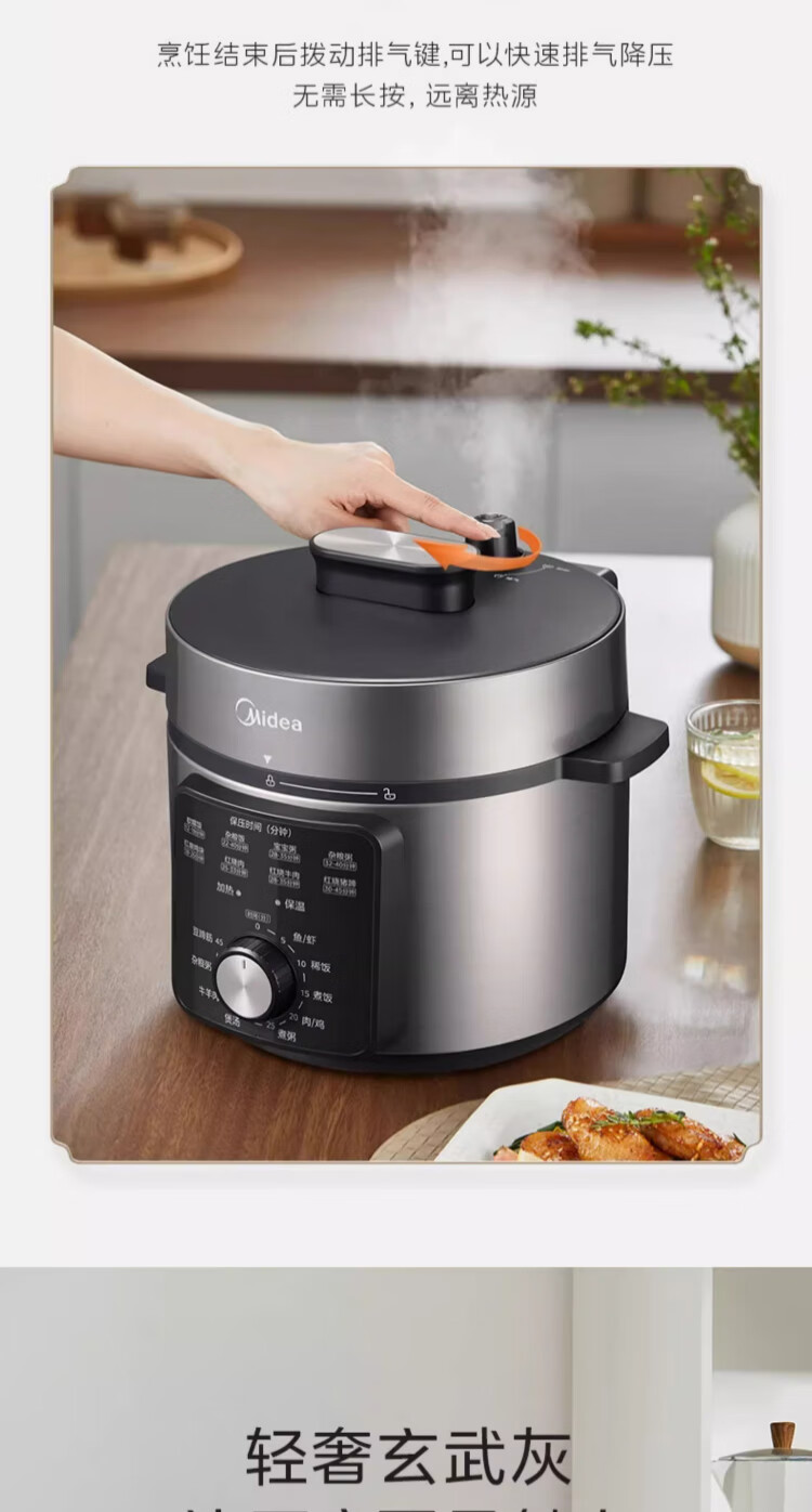 美的(Midea)电压力锅 家用高压锅电高压锅电饭煲多功能锅压力锅电饭锅高压电饭锅大容量1-2-3-4-5-6-8人 5L 【店长推荐】高压快煮 旋钮操作