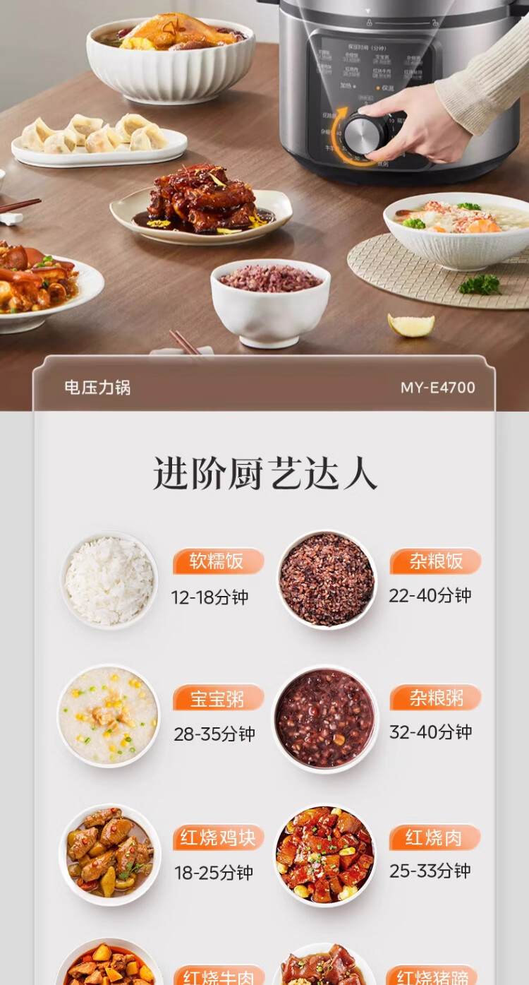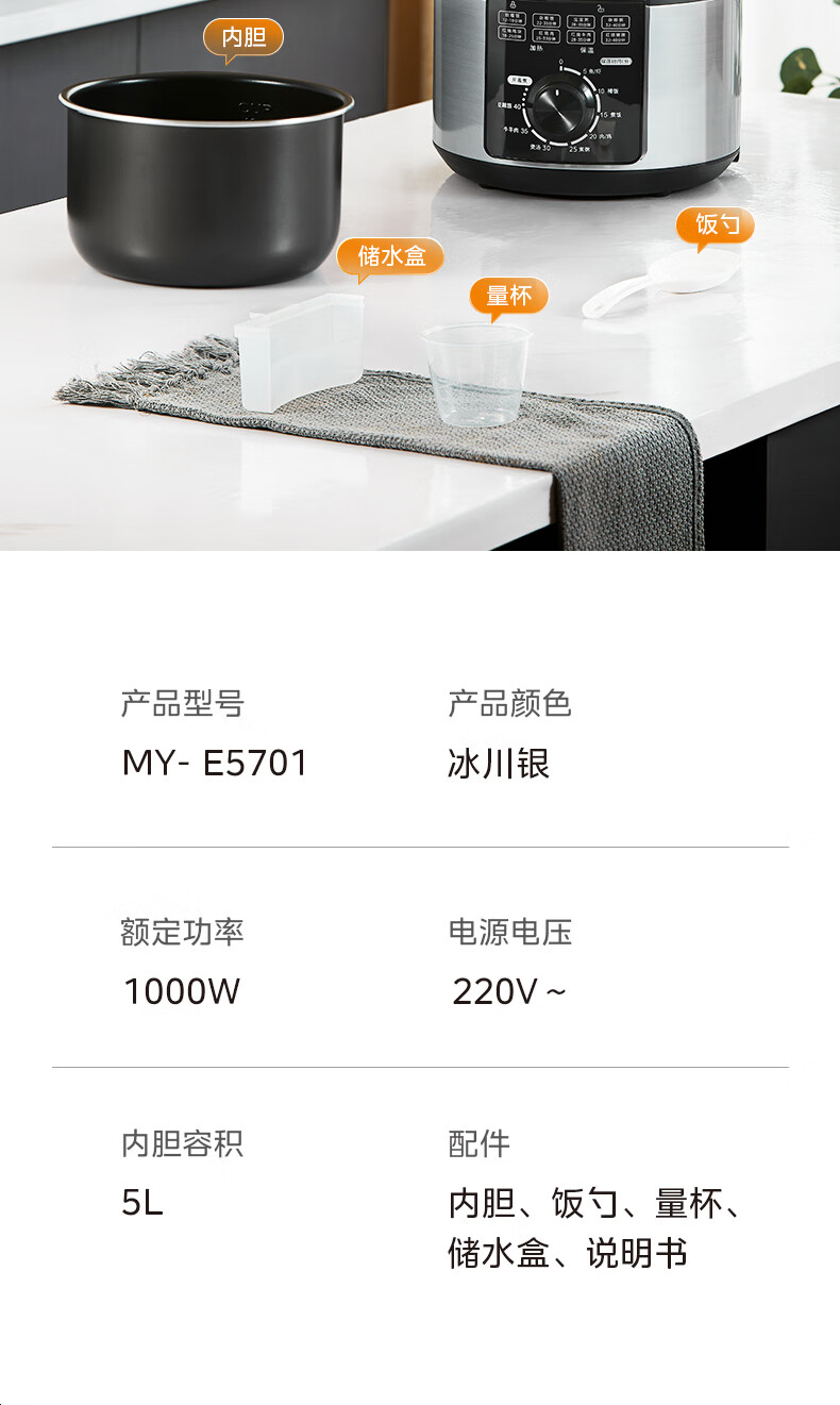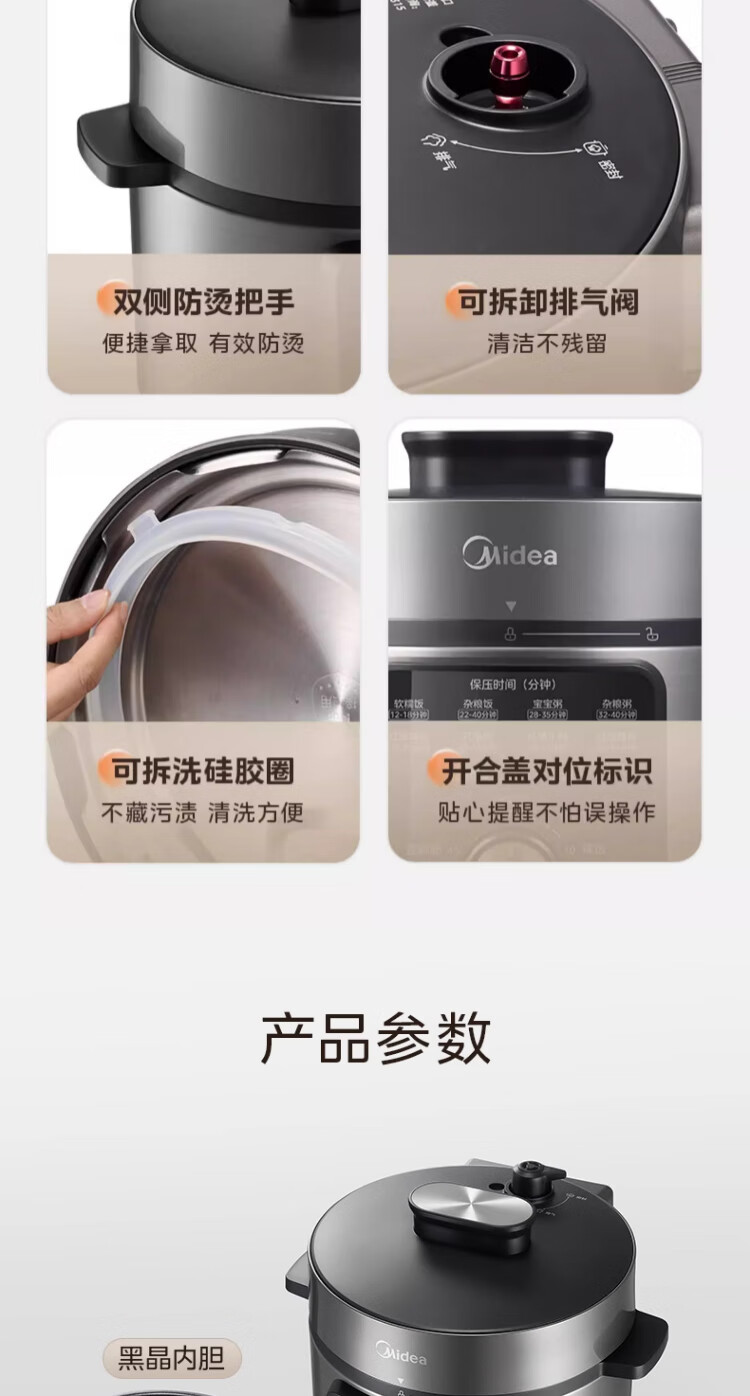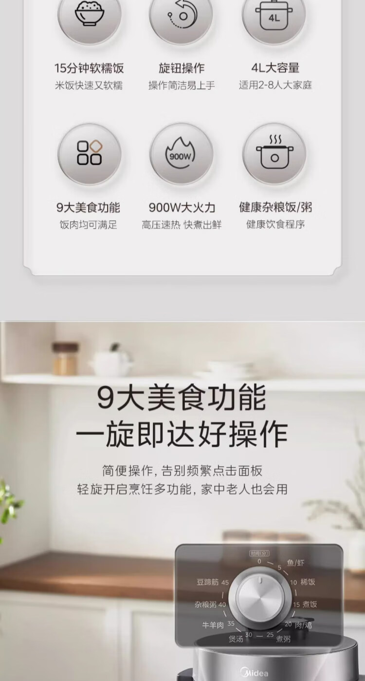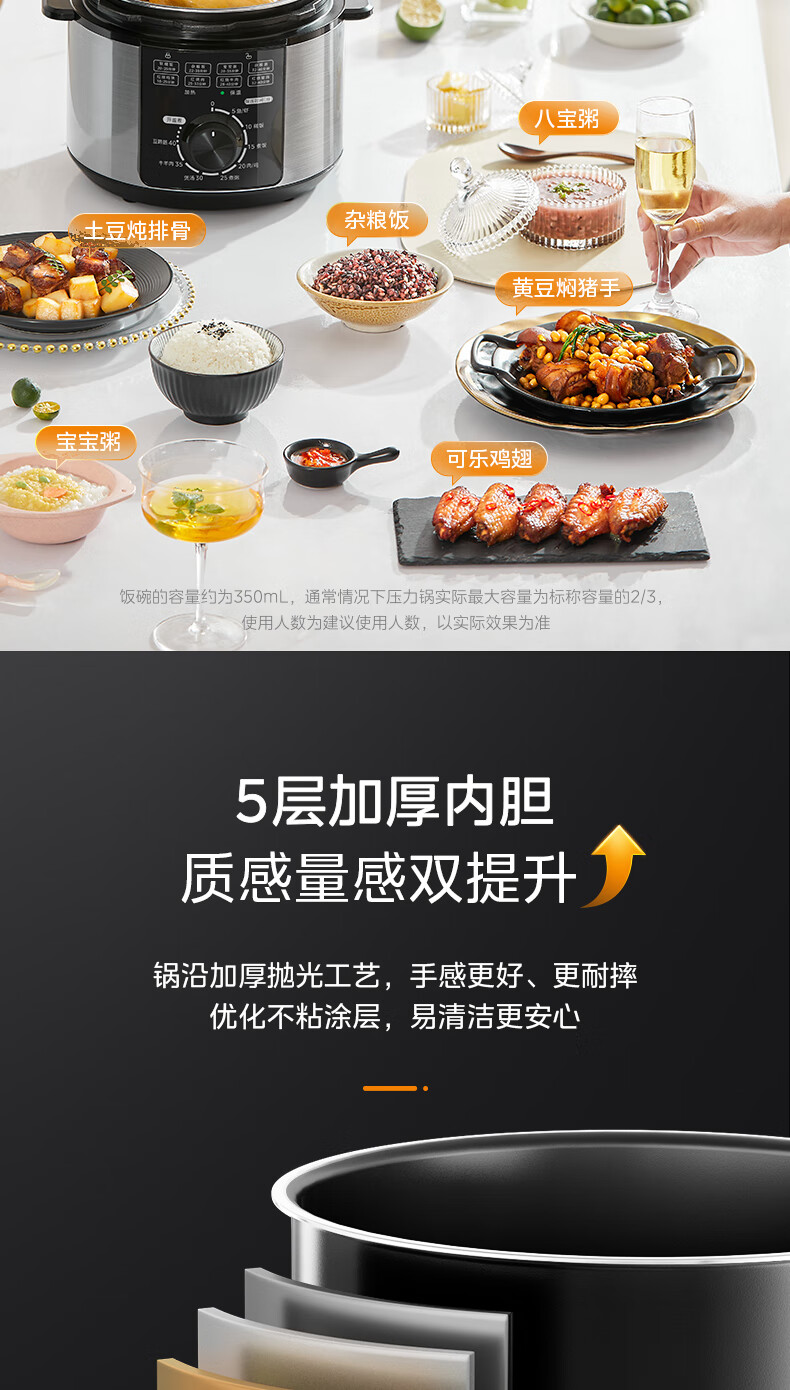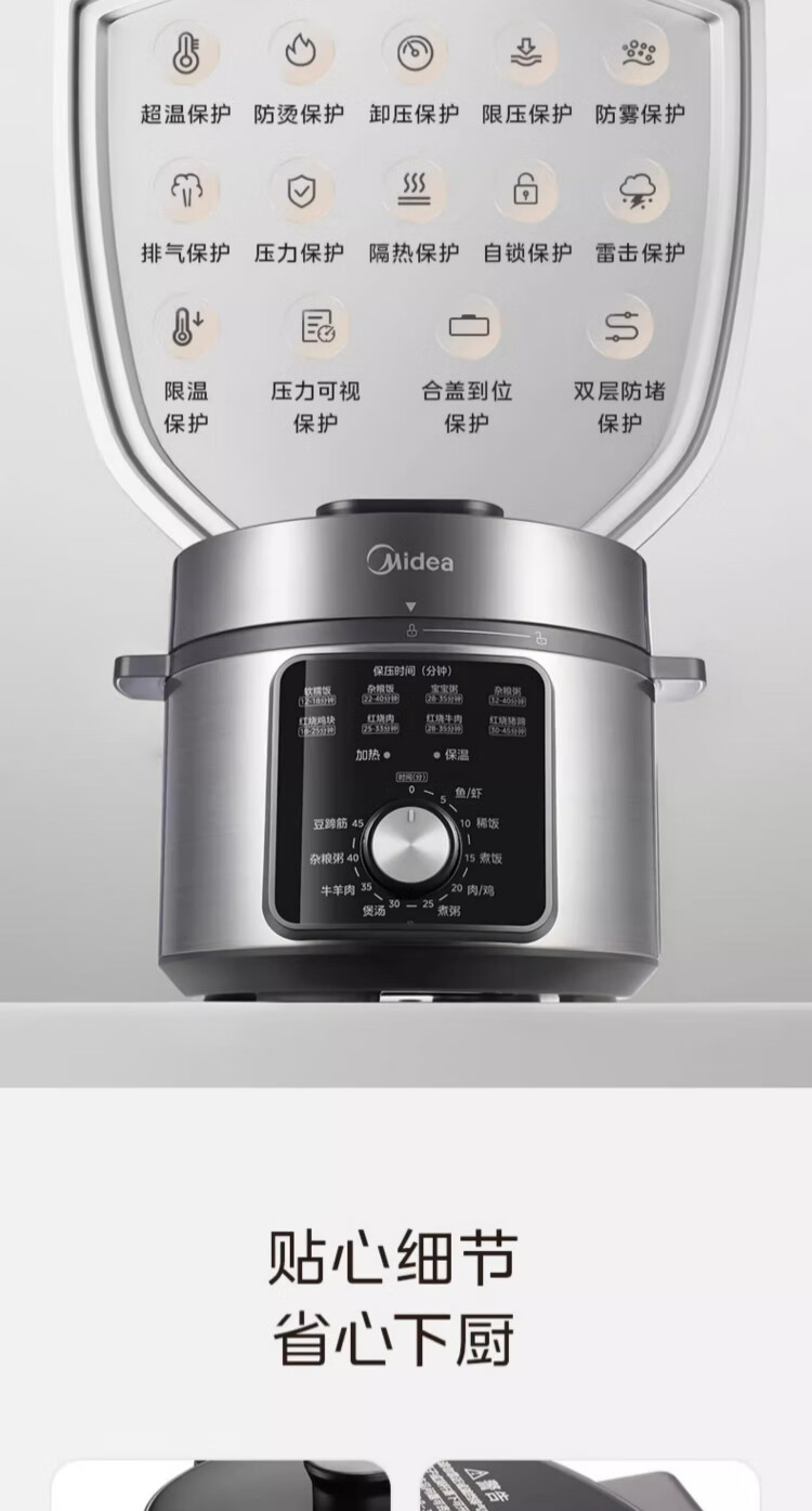 美的(Midea)电压力锅 家用高压锅电高压锅电饭煲多功能锅压力锅电饭锅高压电饭锅大容量1-2-3-4-5-6-8人 5L 【店长推荐】高压快煮 旋钮操作