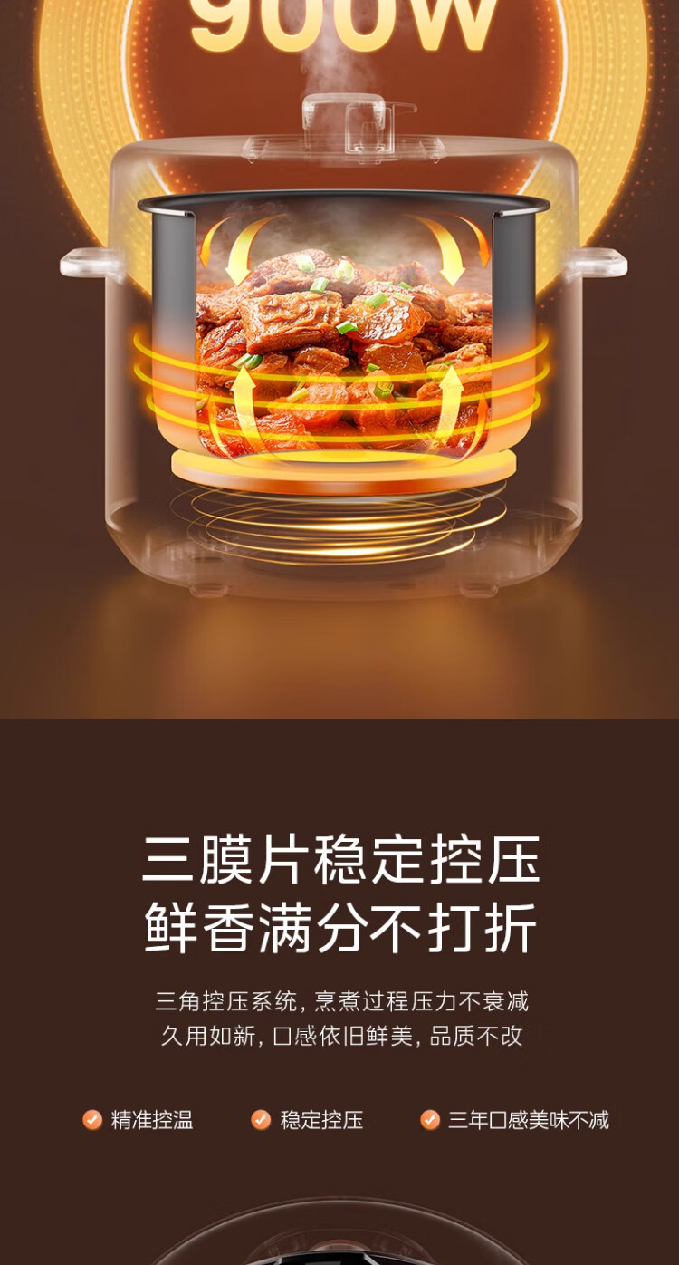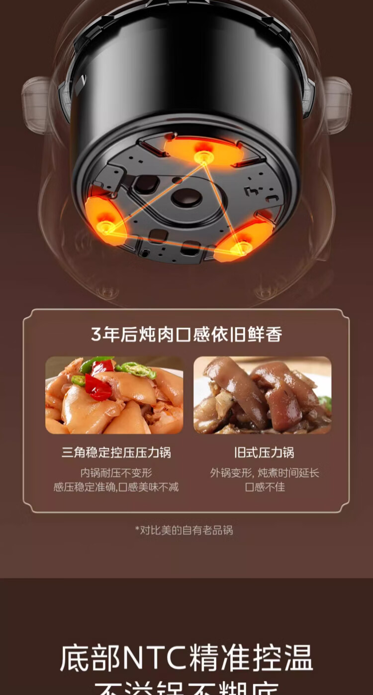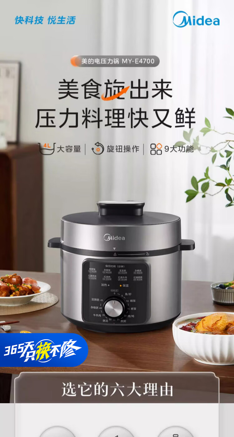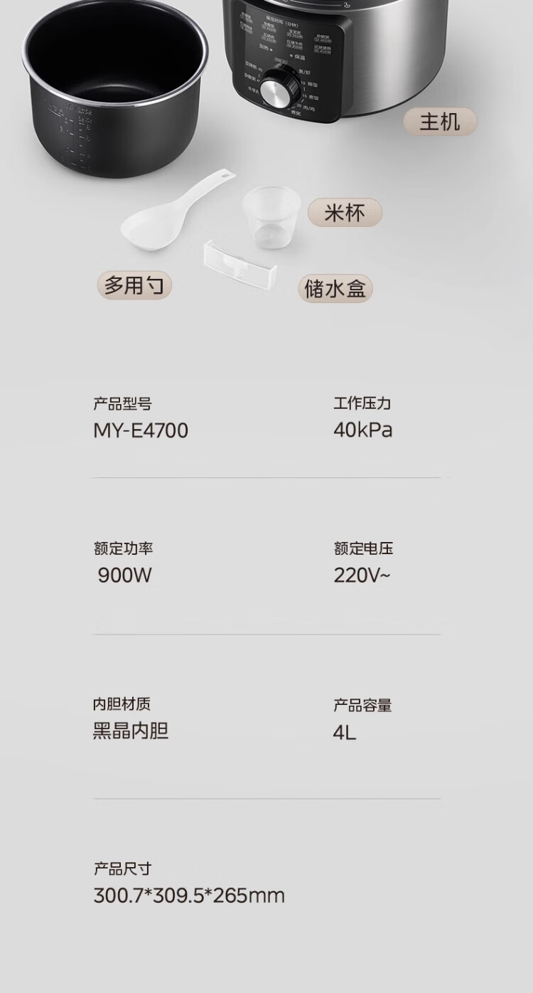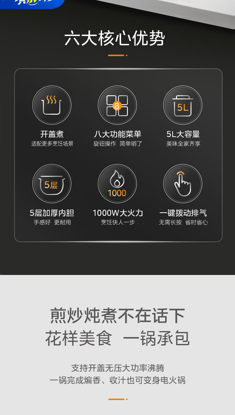 美的(Midea)电压力锅 家用高压锅电高压锅电饭煲多功能锅压力锅电饭锅高压电饭锅大容量1-2-3-4-5-6-8人 5L 【店长推荐】高压快煮 旋钮操作