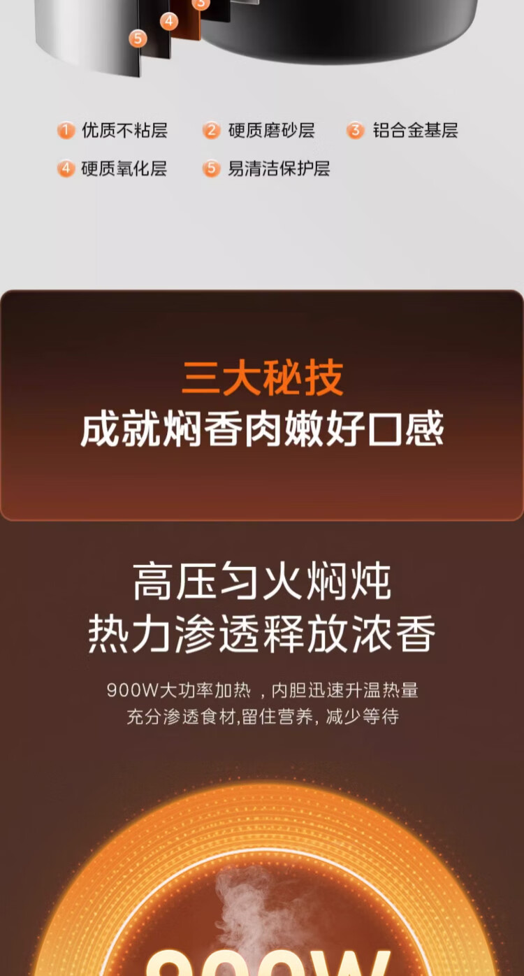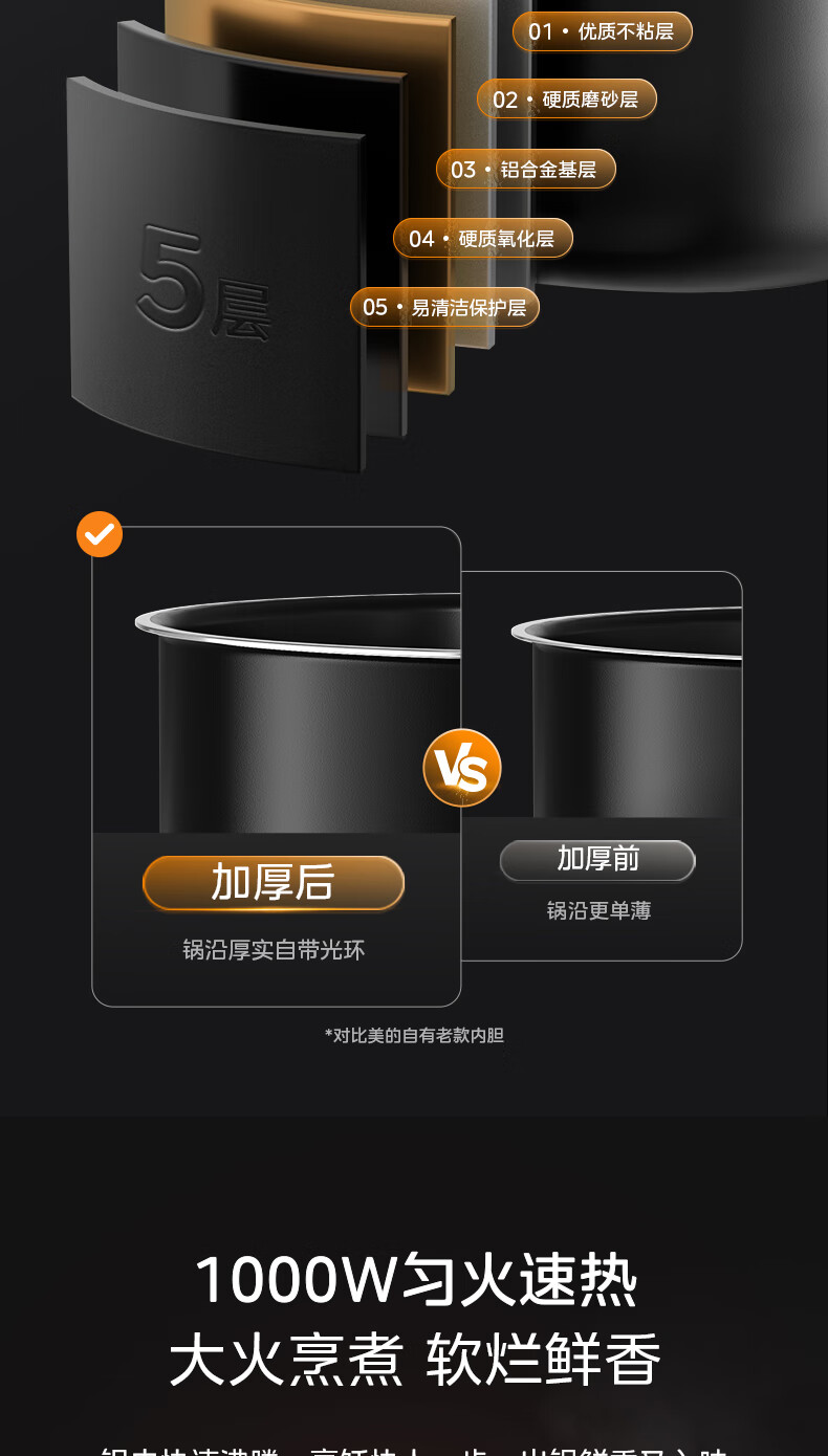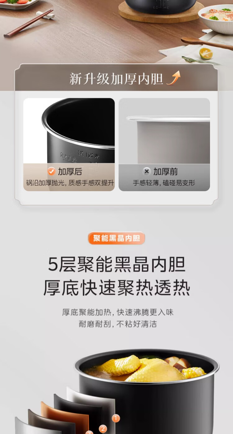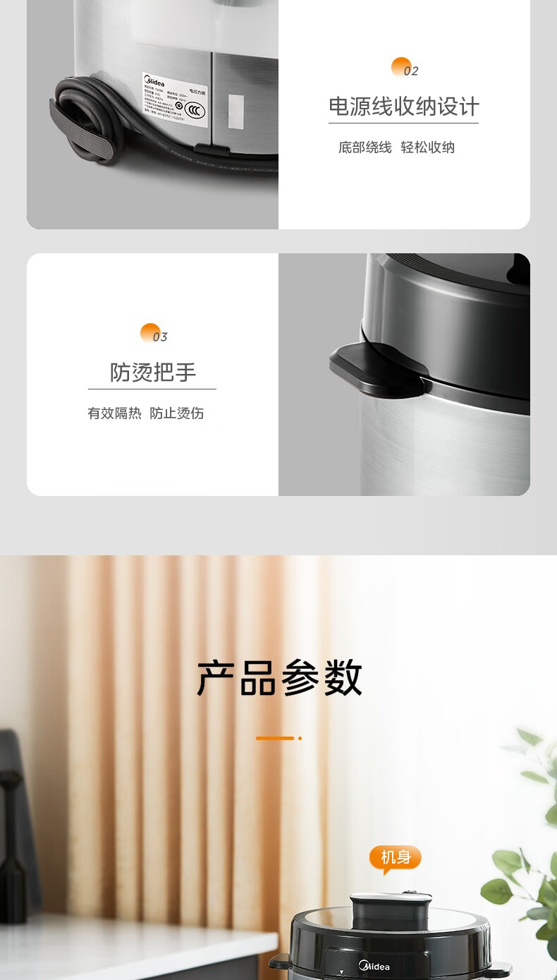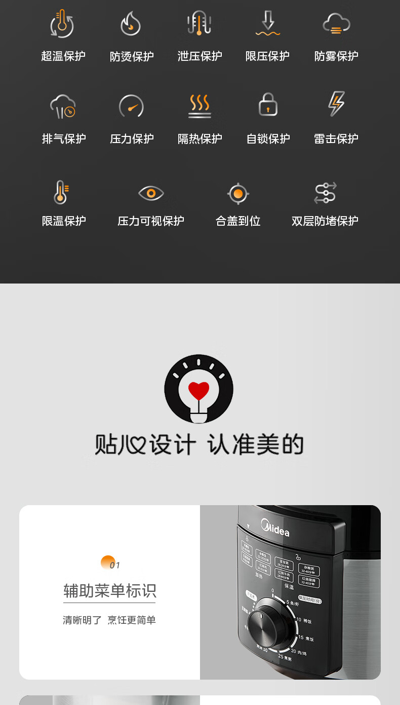 美的(Midea)电压力锅 家用高压锅电高压锅电饭煲多功能锅压力锅电饭锅高压电饭锅大容量1-2-3-4-5-6-8人 5L 【店长推荐】高压快煮 旋钮操作