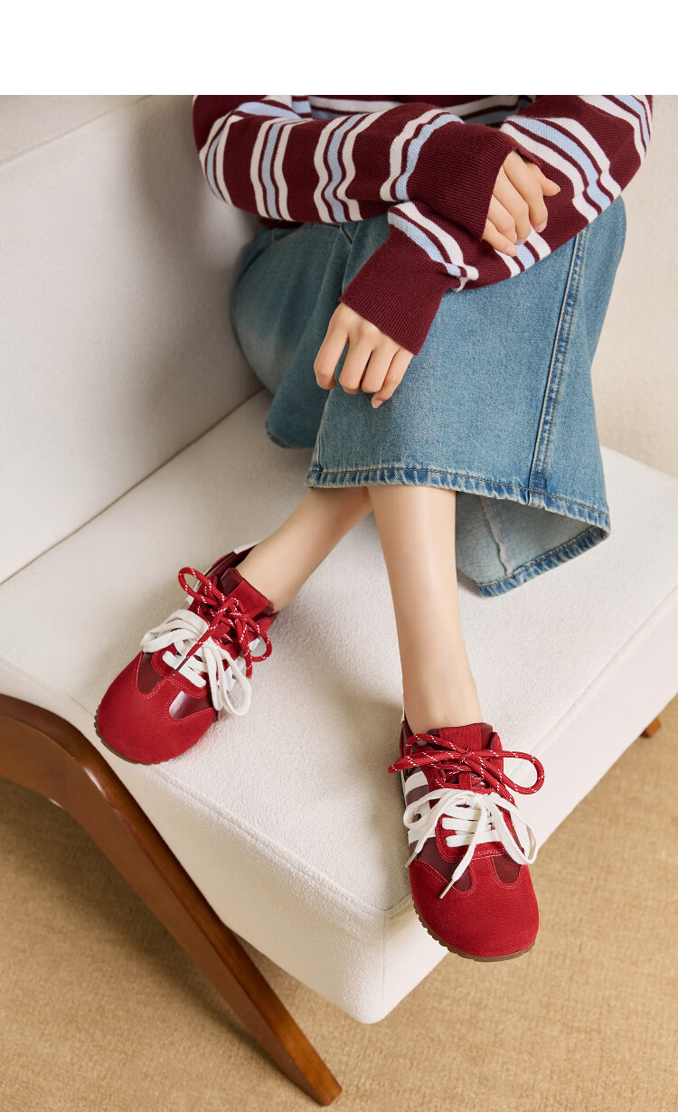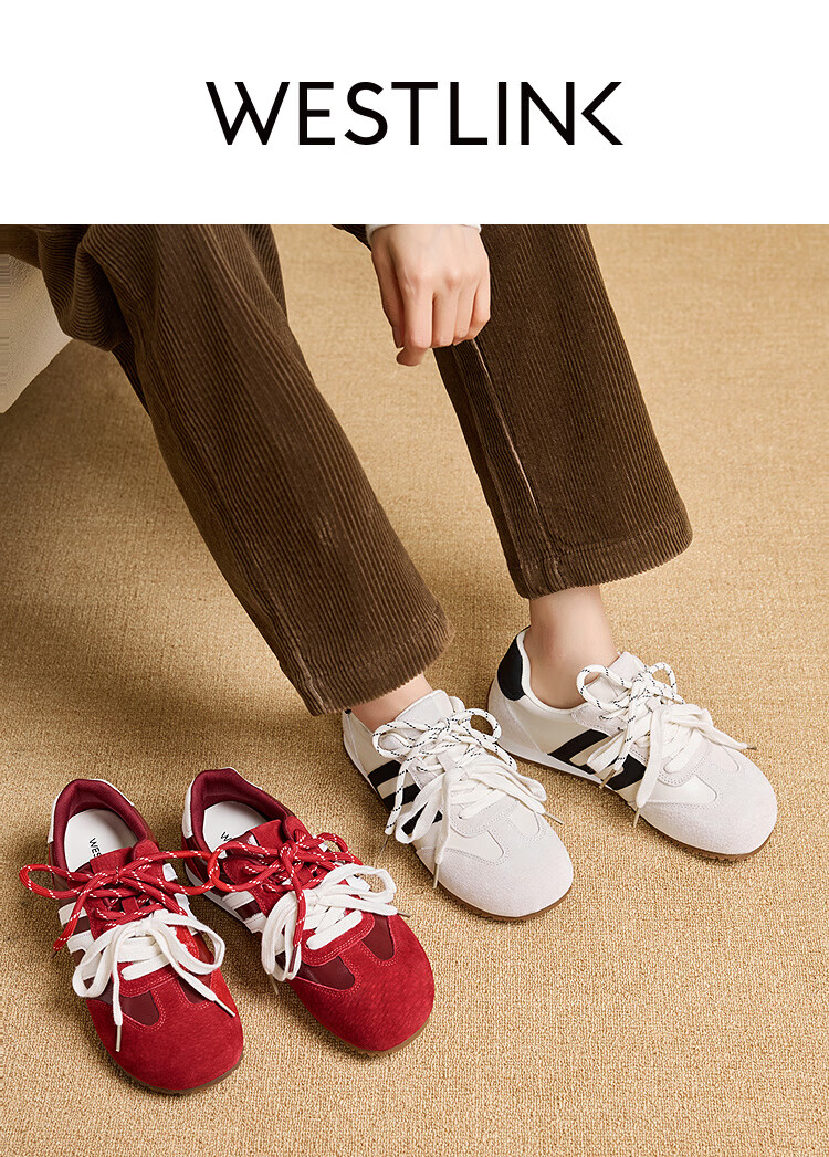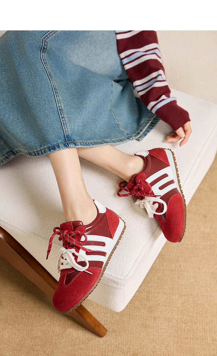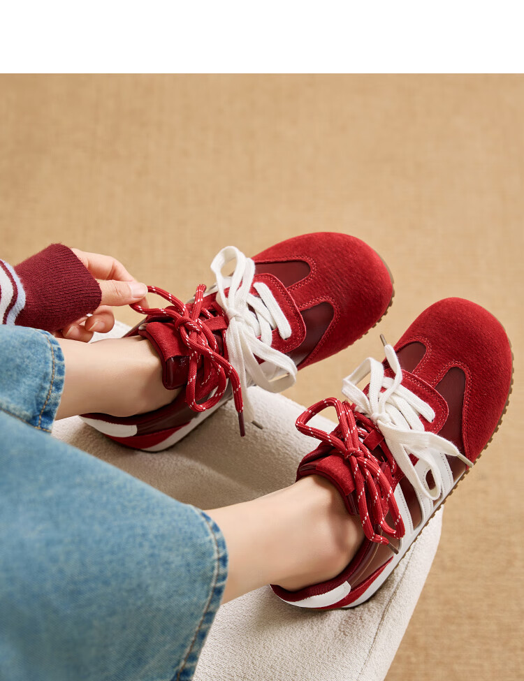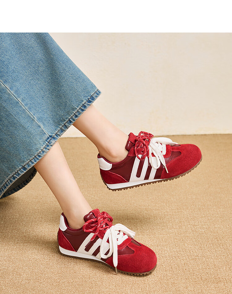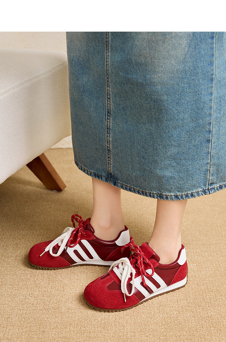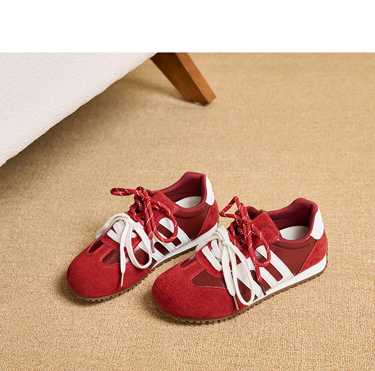 西遇平底德训鞋女2025新款秋季百搭圆头小白鞋轻便薄底红色运动鞋 红色 (预售10月11日) 38 (240)