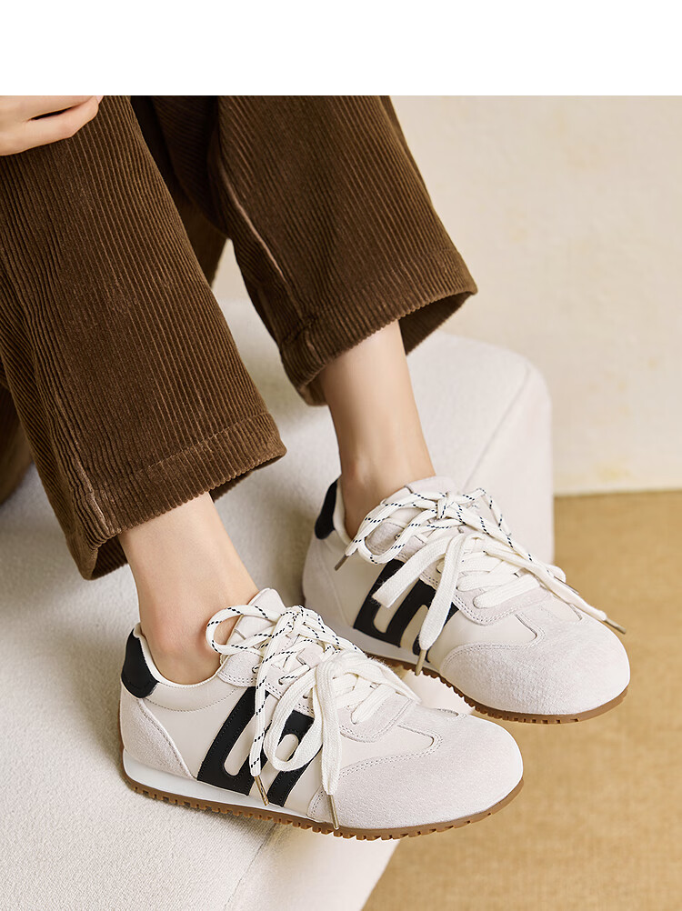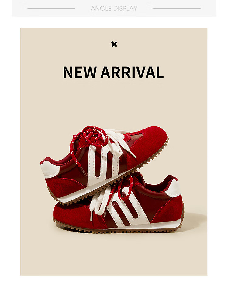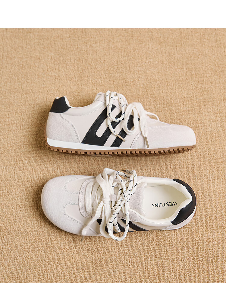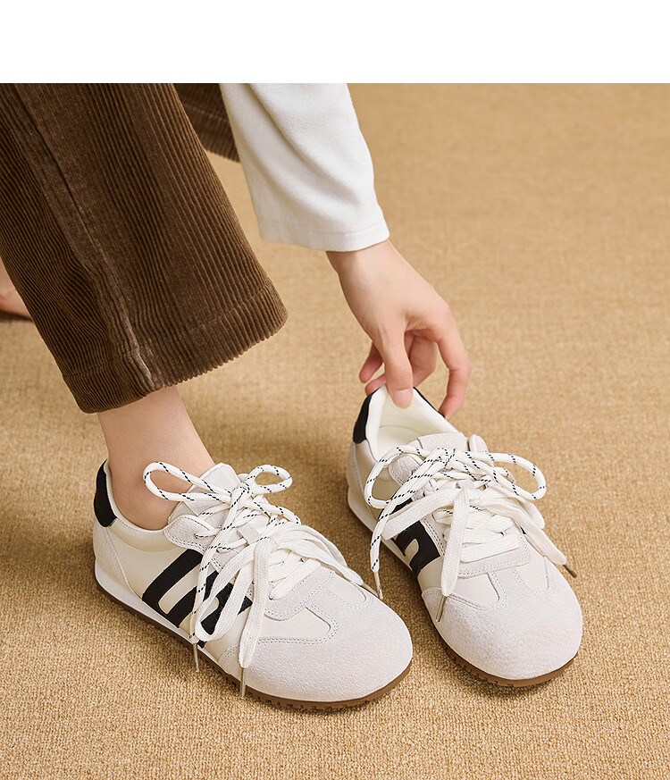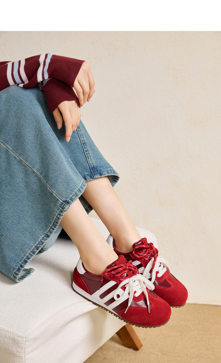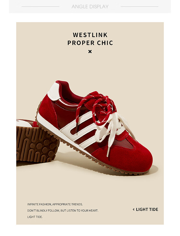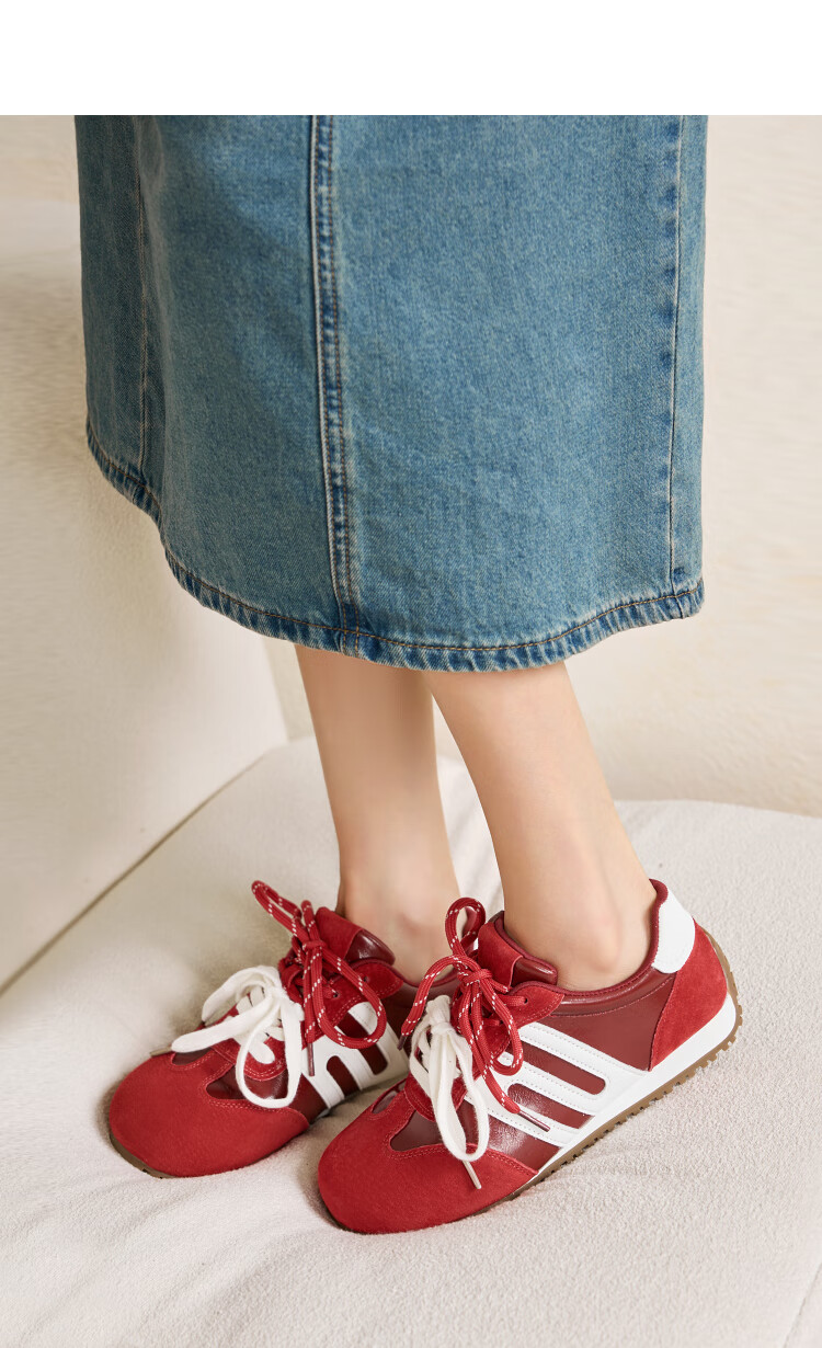 西遇平底德训鞋女2025新款秋季百搭圆头小白鞋轻便薄底红色运动鞋 红色 (预售10月11日) 38 (240)
