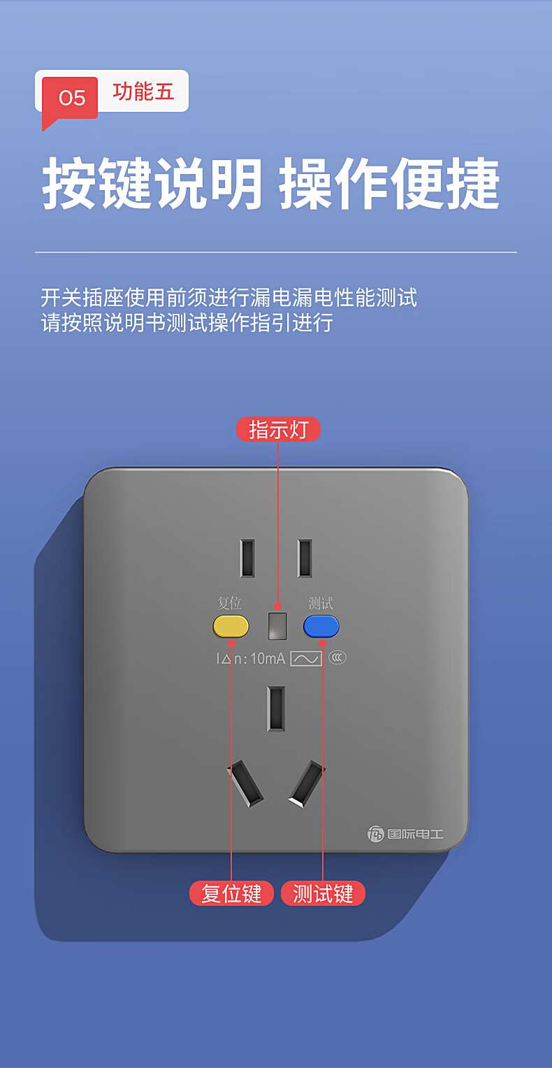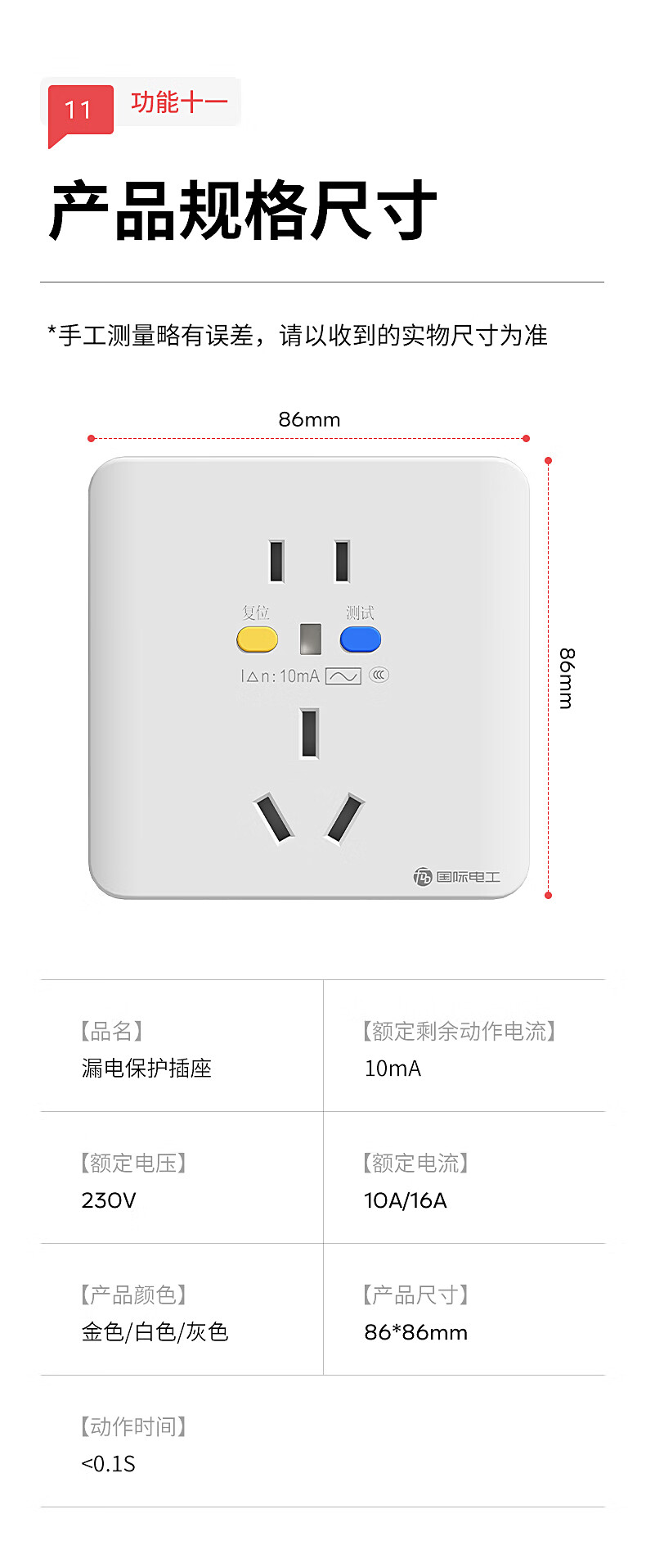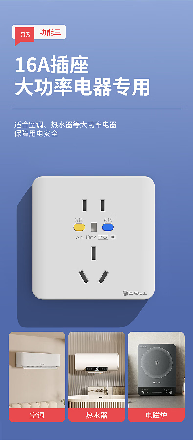 国际电工86型漏电保护器防触电热水器空调大功率专用五孔漏保插座 白色【10A/16A通用】五孔插座