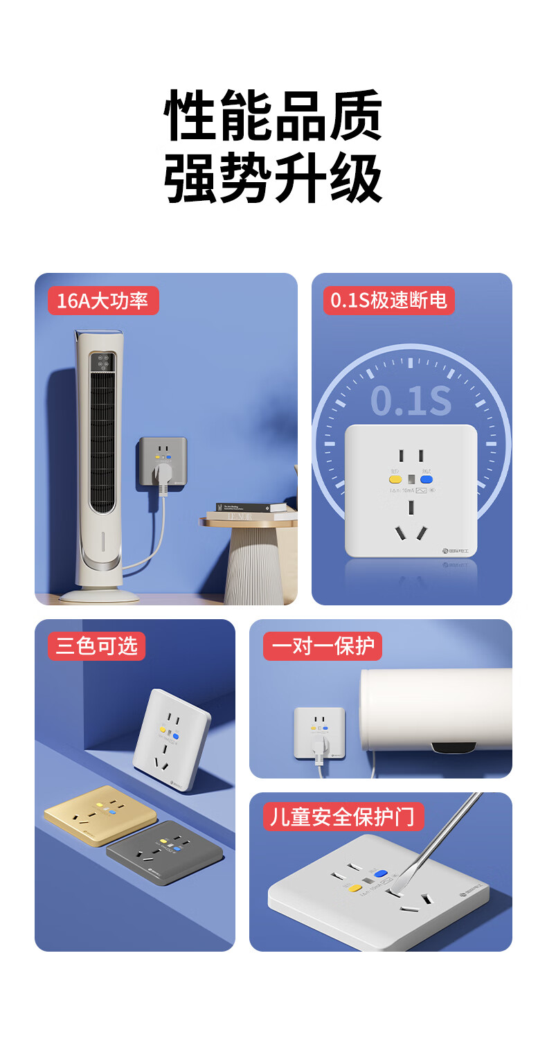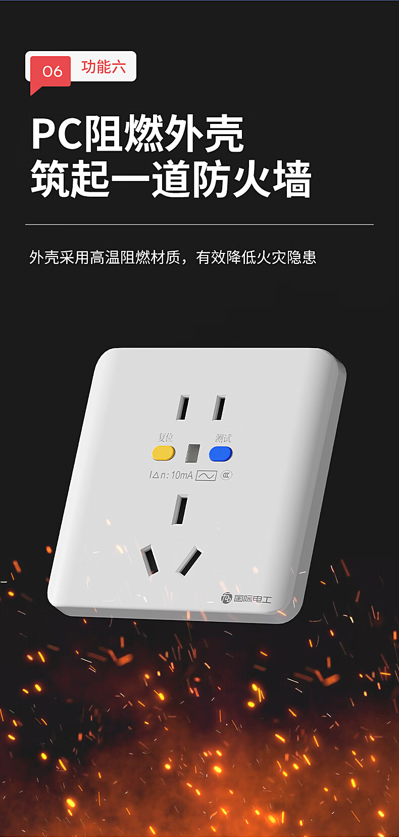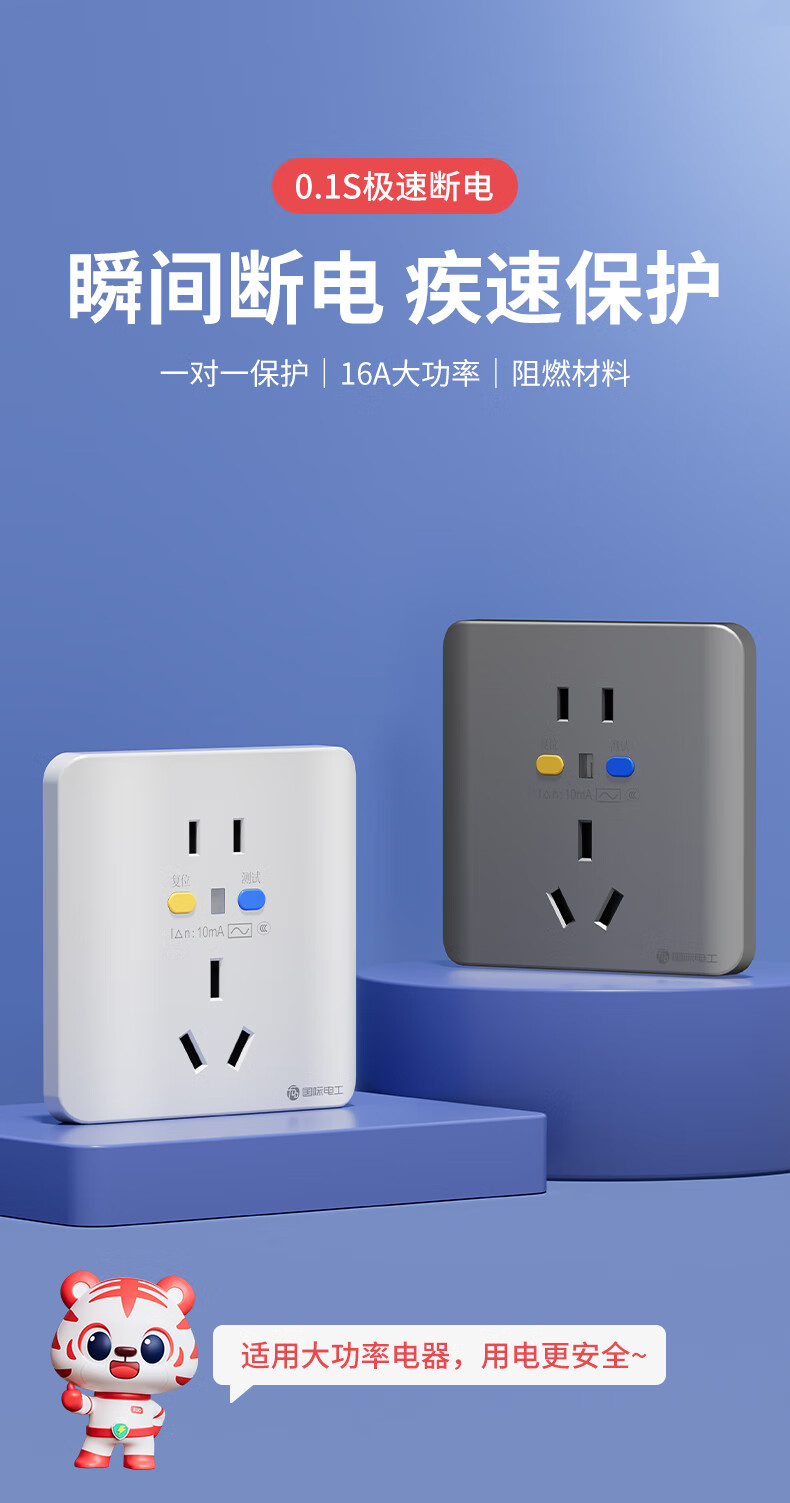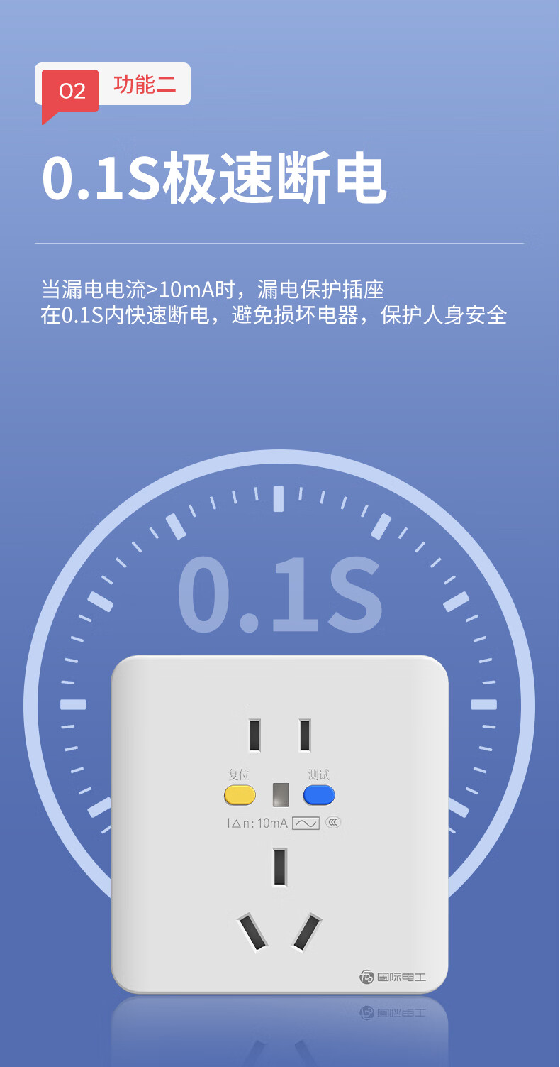 国际电工86型漏电保护器防触电热水器空调大功率专用五孔漏保插座 白色【10A/16A通用】五孔插座
