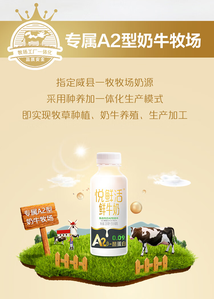 悦鲜活高钙鲜奶 有机260ml*5瓶 低温奶巴氏杀菌乳 A2-260ml*5瓶源头直发