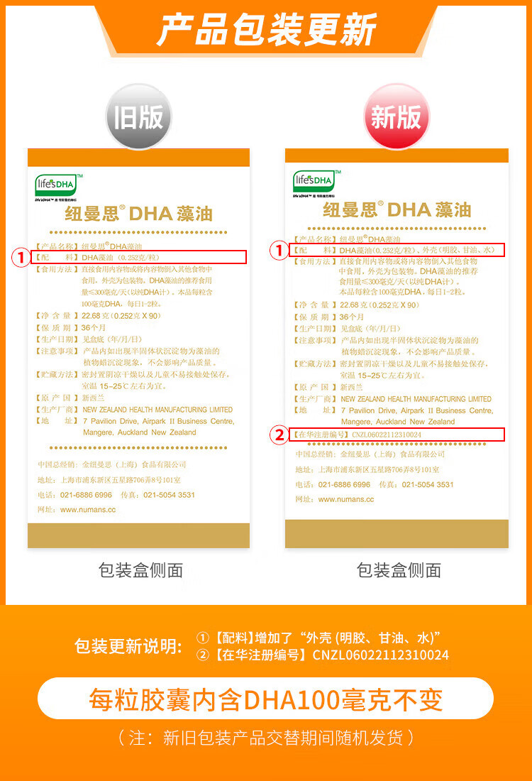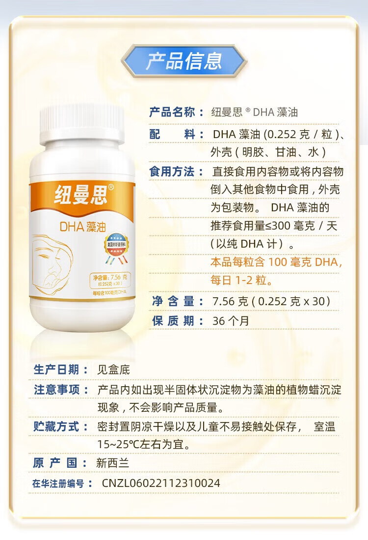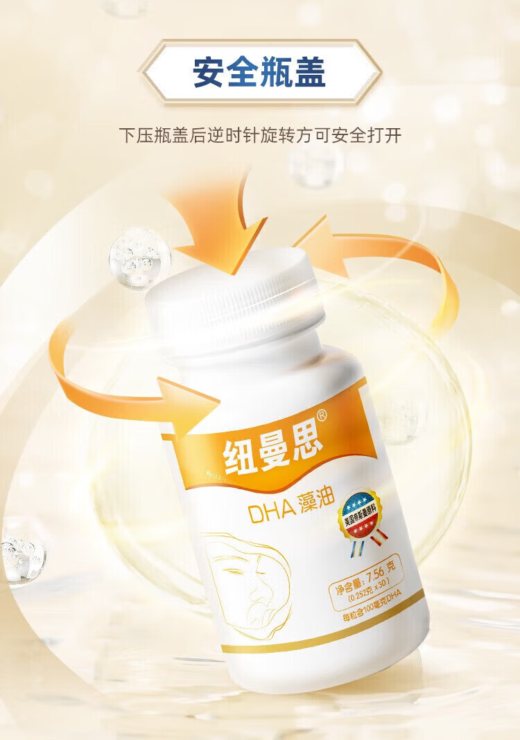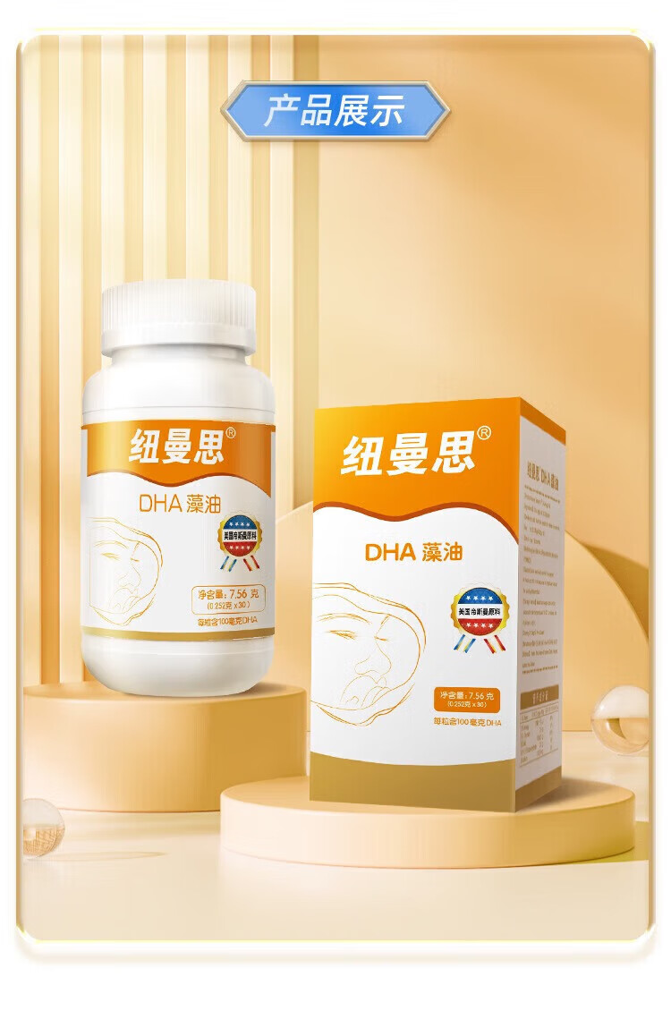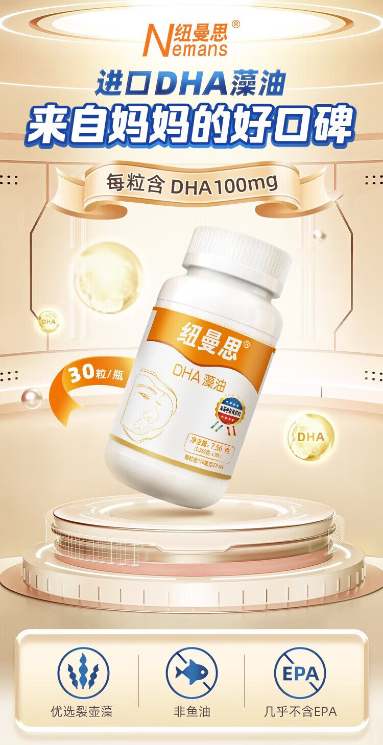 纽曼思(Nemans)(原名纽曼斯)新西兰进口藻油DHA粒婴幼儿儿童可用 90粒*1瓶