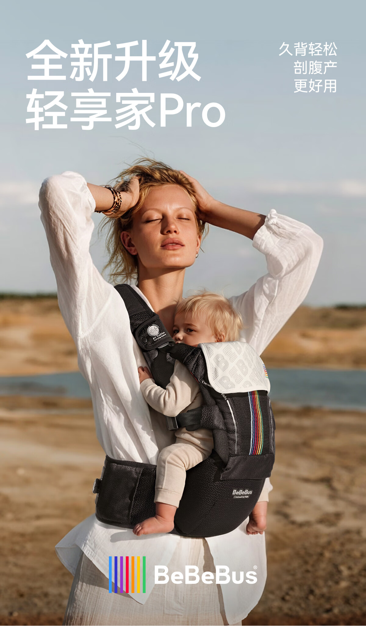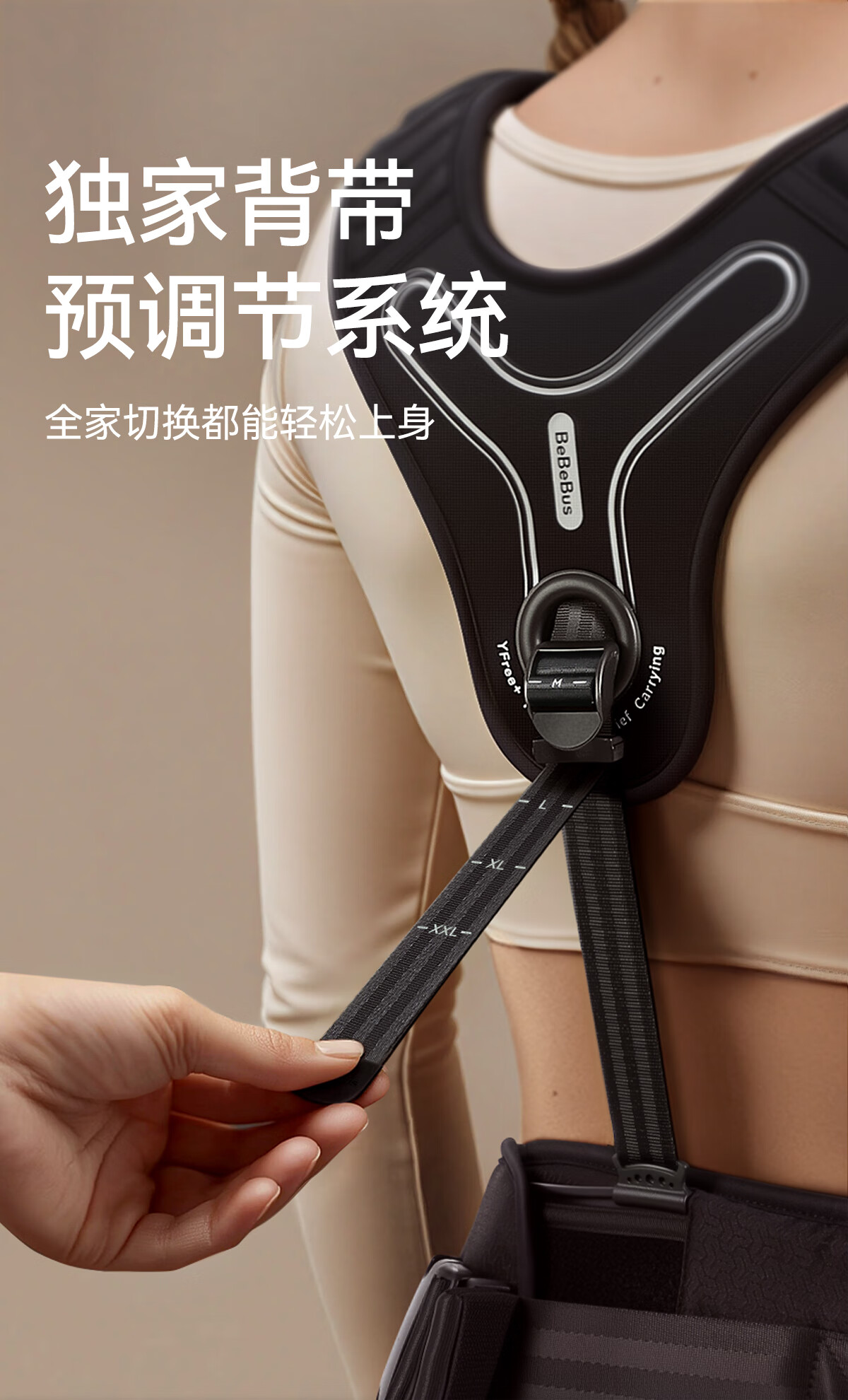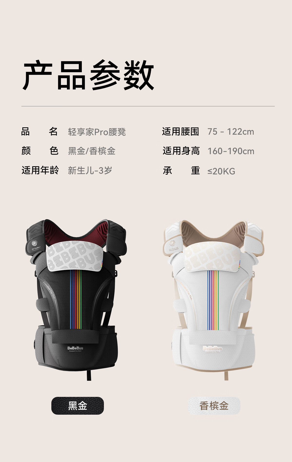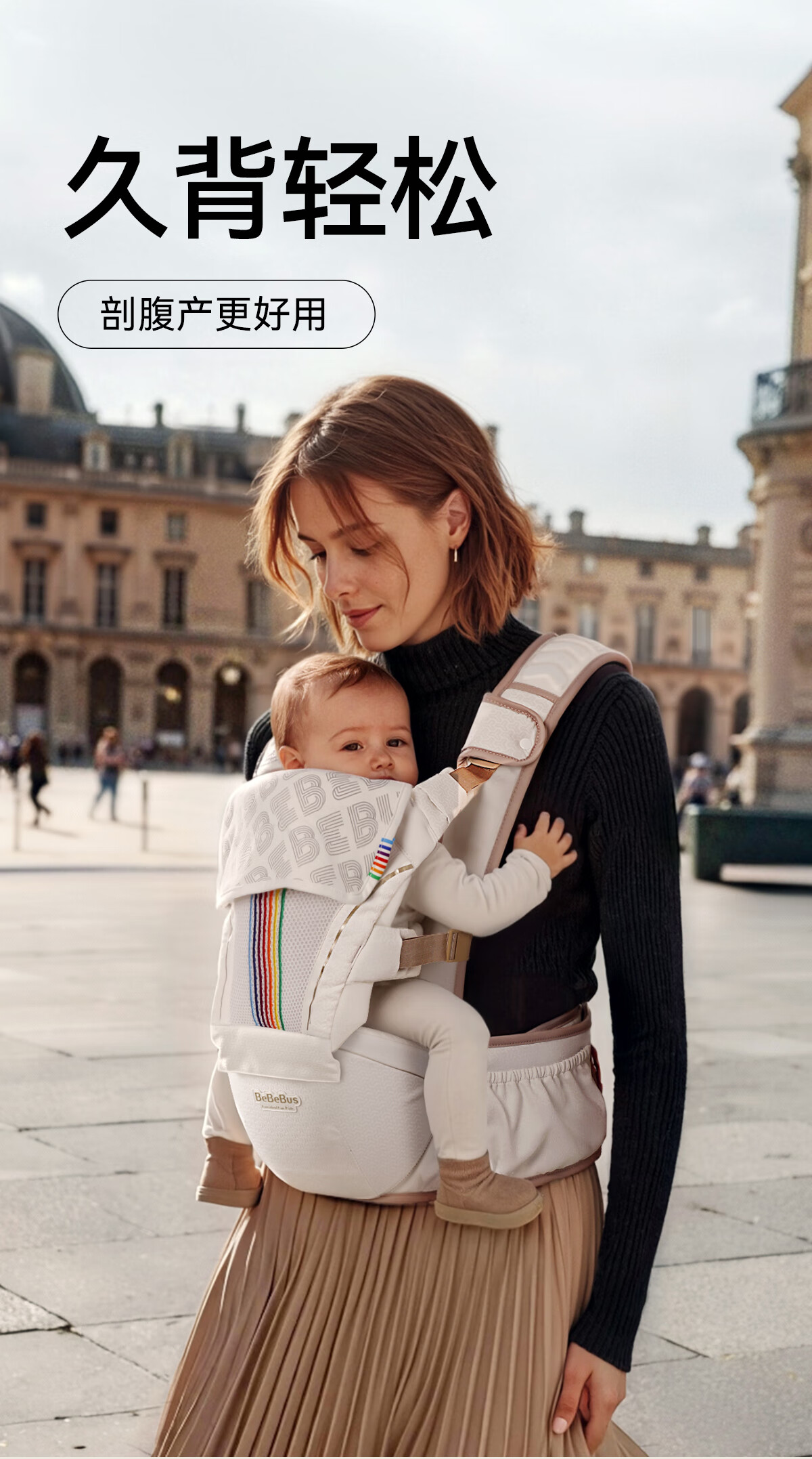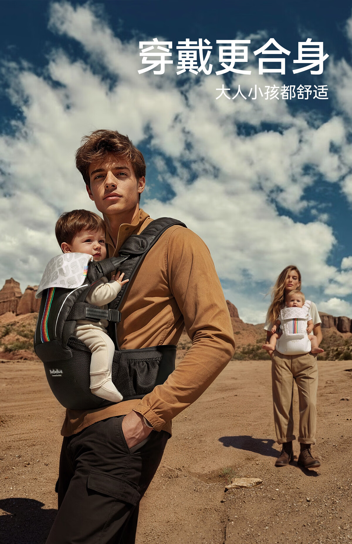 bebebus轻享家腰凳婴儿背带二合一可拆卸轻便四季透气前抱式抱娃神器 黑金含1条口水巾