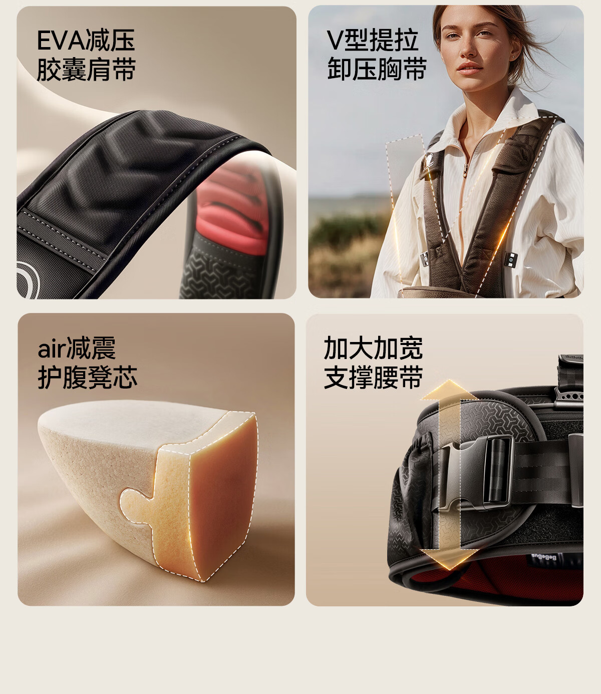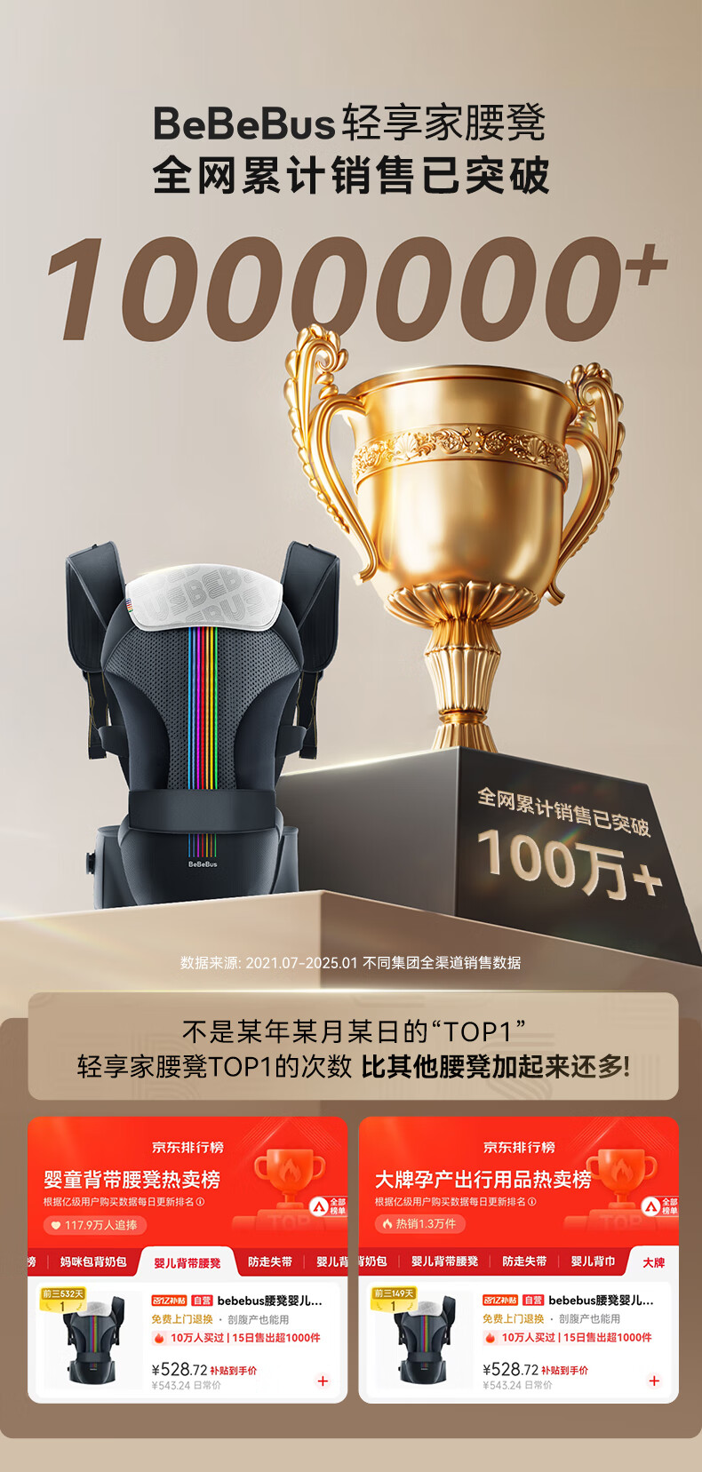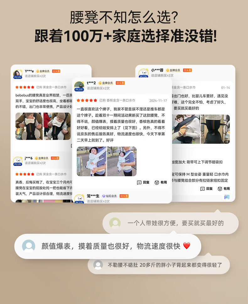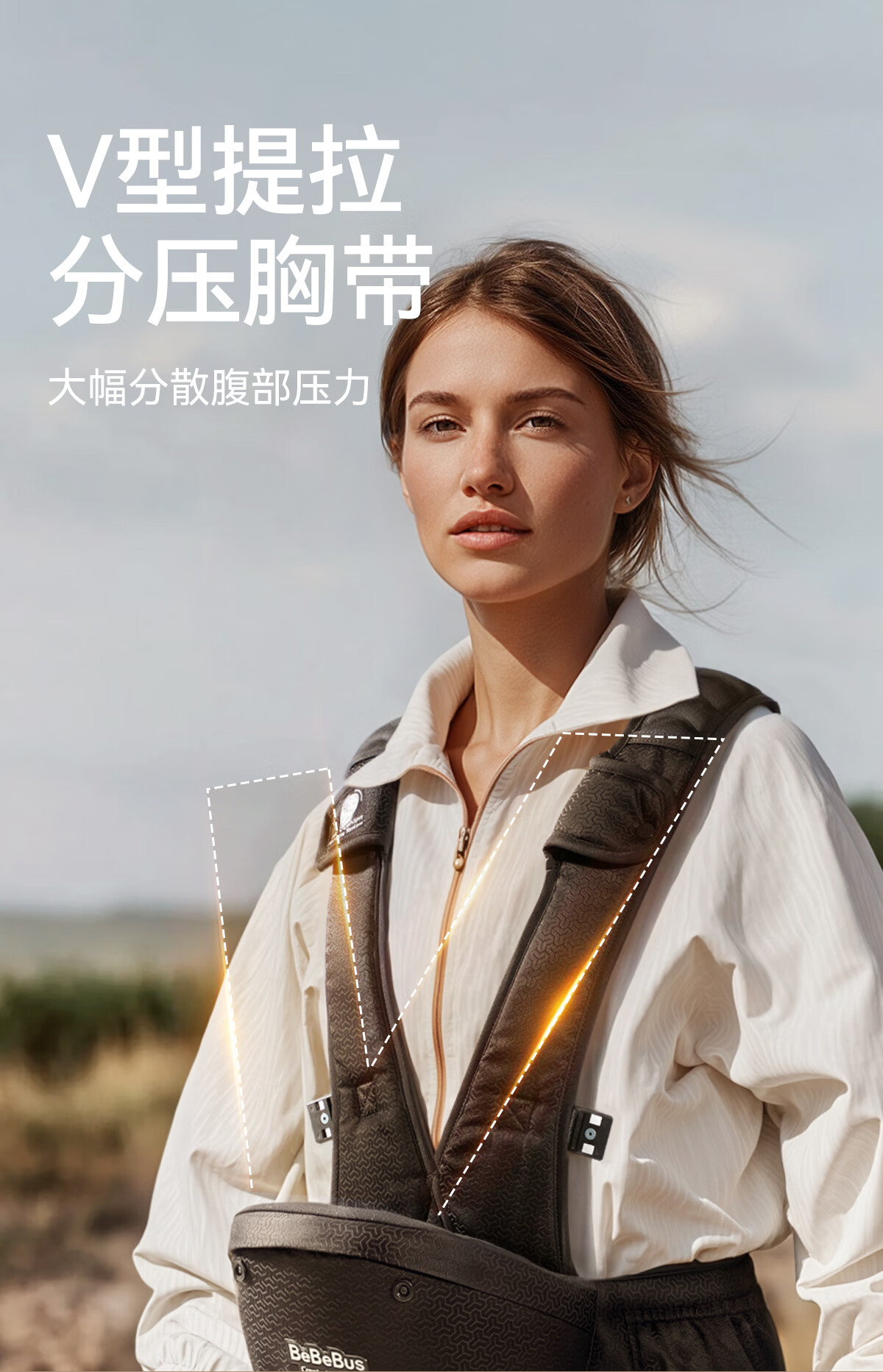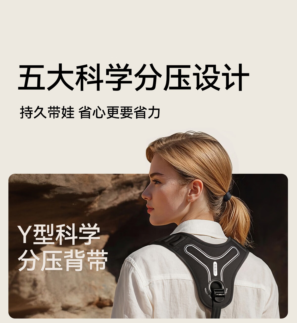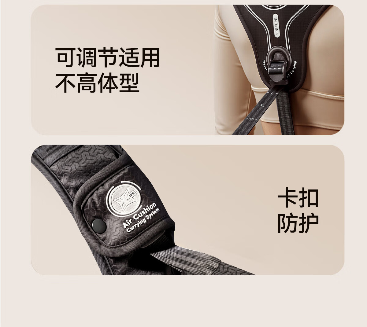 bebebus轻享家腰凳婴儿背带二合一可拆卸轻便四季透气前抱式抱娃神器 黑金含1条口水巾