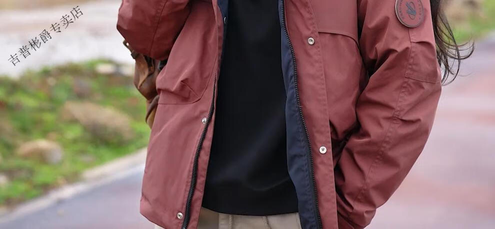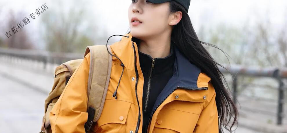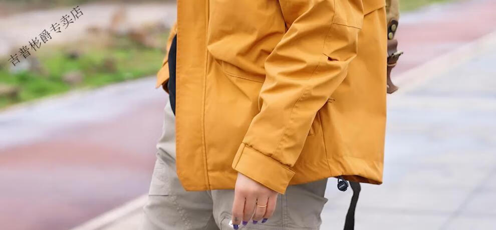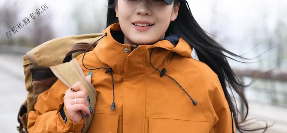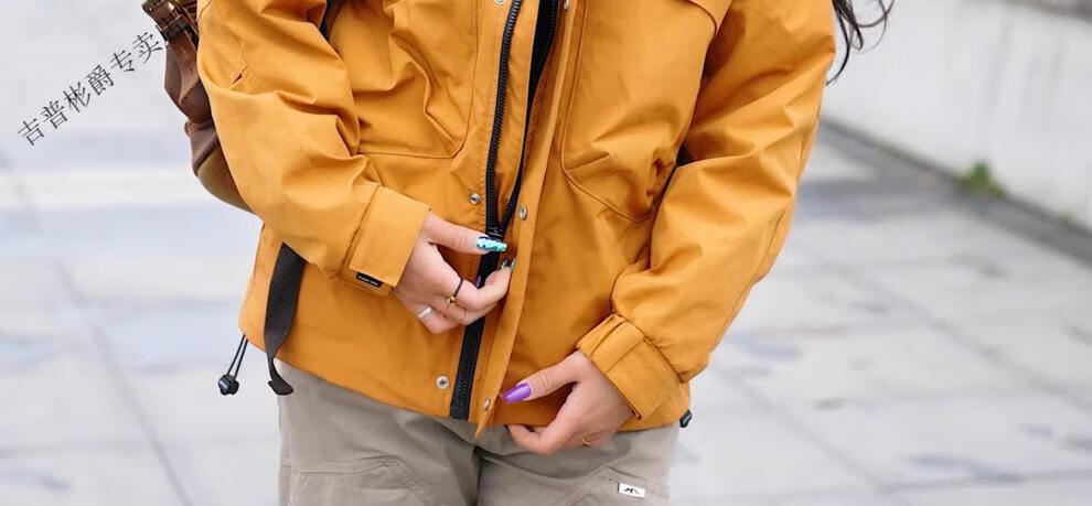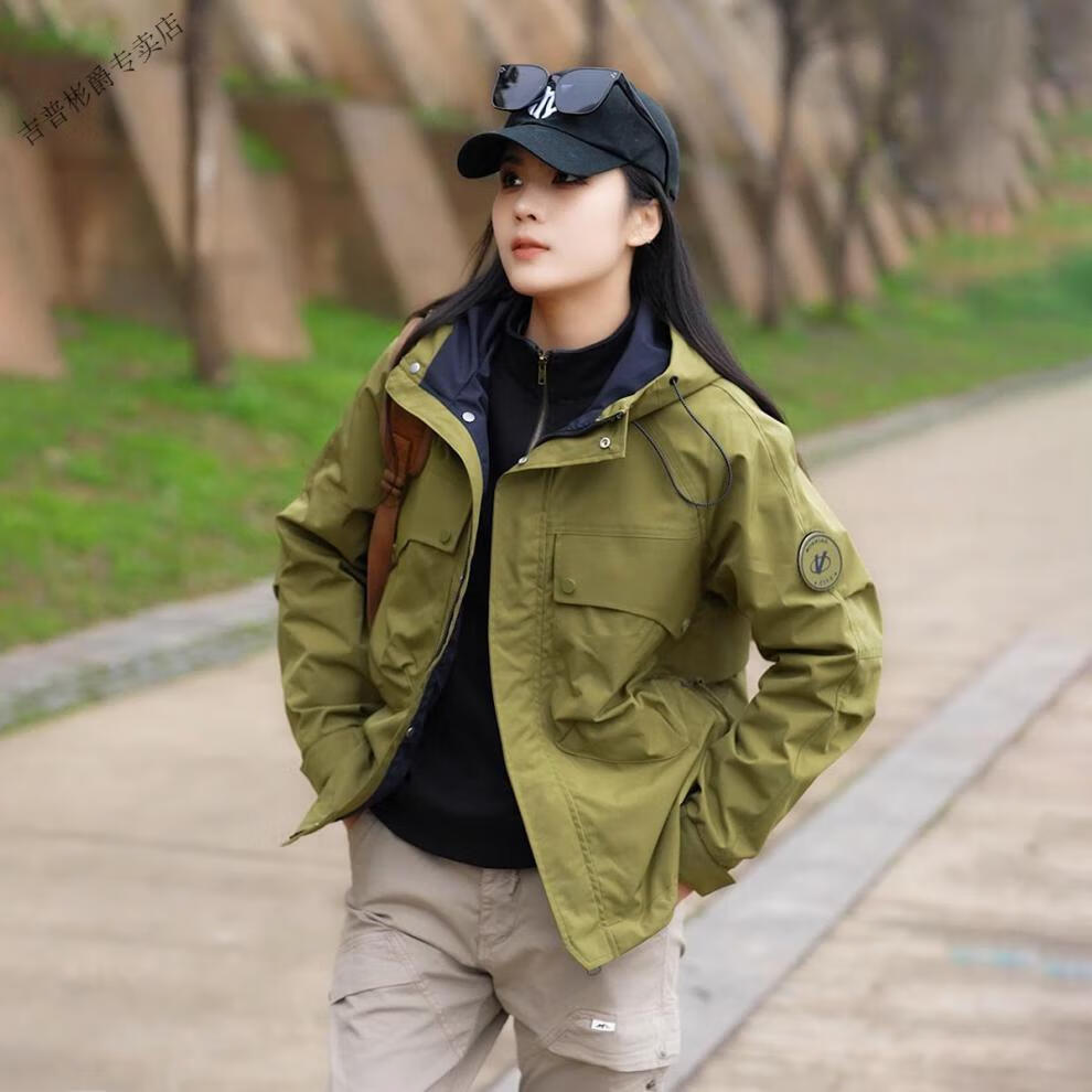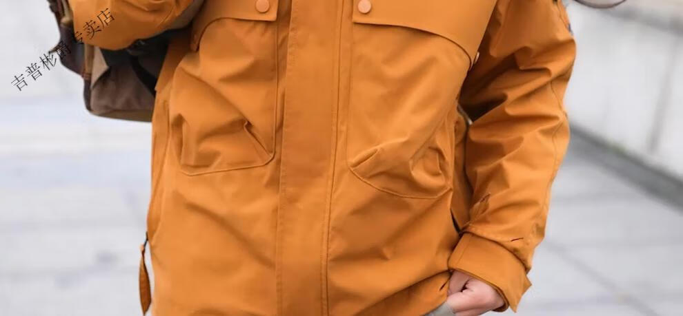 吉普(JEEP)2024春秋情侣款冲锋衣防水连帽休闲百搭男女户外登山防风外套 橙色 M 95-110斤