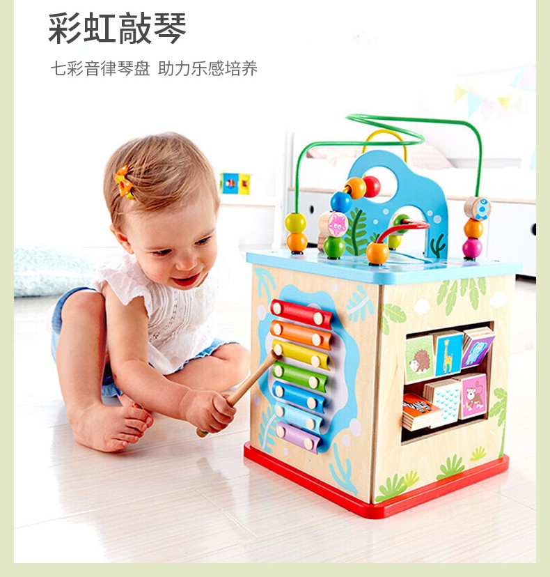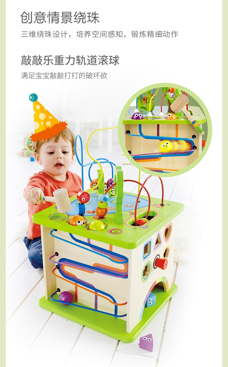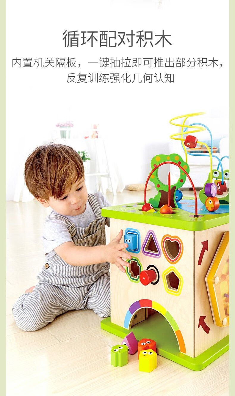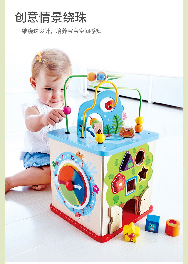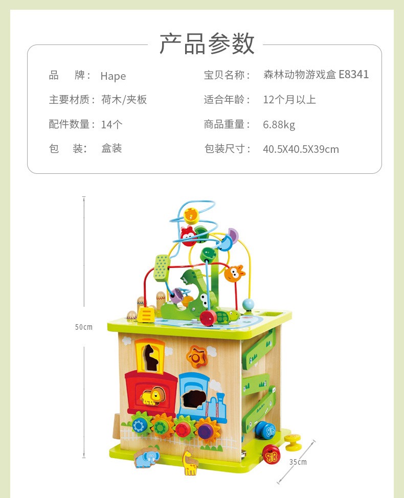 Hape绕珠游戏桌儿童1-3岁宝宝学习台婴幼儿积木早教男女孩玩具礼物 森林动物游戏盒E8341