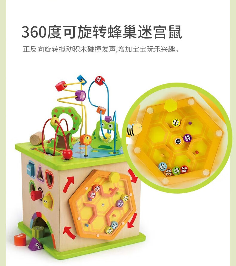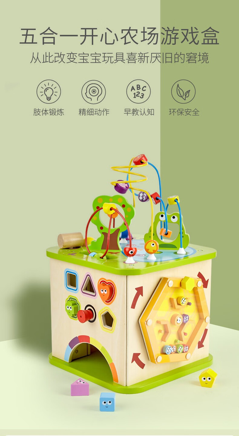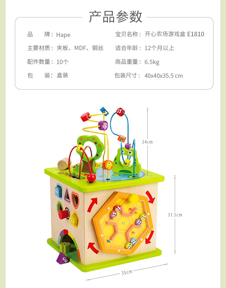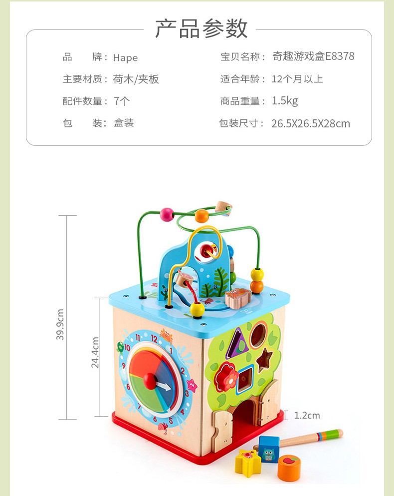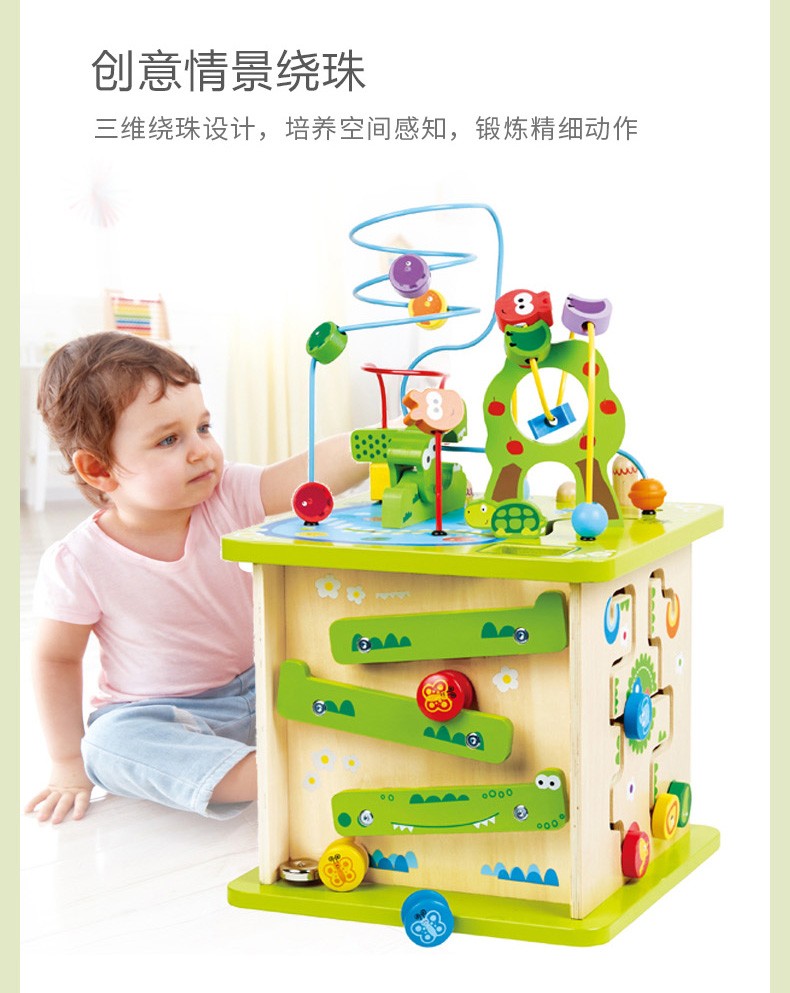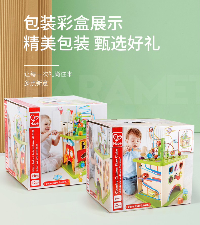 Hape绕珠游戏桌儿童1-3岁宝宝学习台婴幼儿积木早教男女孩玩具礼物 森林动物游戏盒E8341