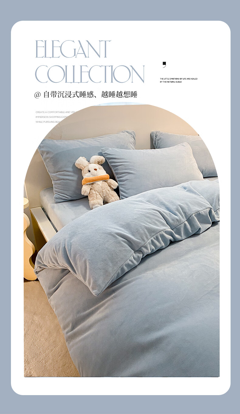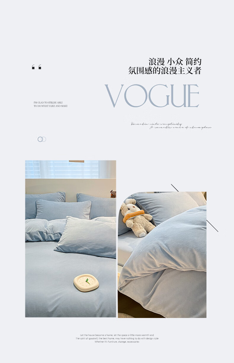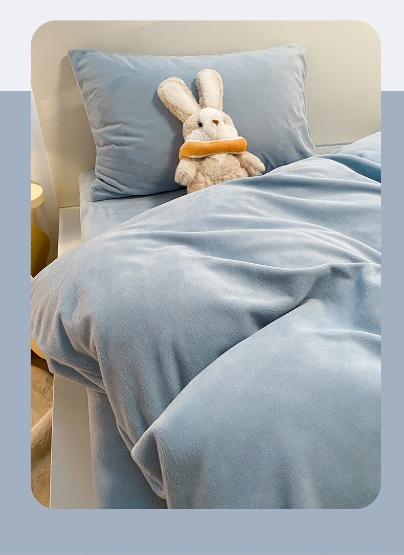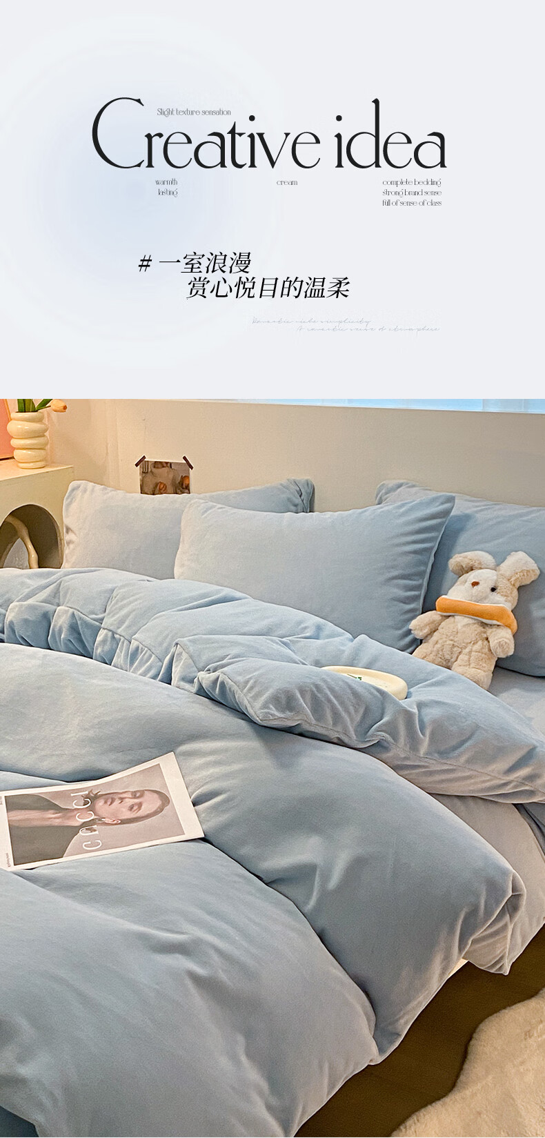 VJE加厚牛奶绒四件套珊瑚绒冬季法兰婴儿绒秋冬天床单被套三件套床品 【A类双拼牛奶绒】宾利蓝 四件套1.8m 床单款 -被套200*230cm