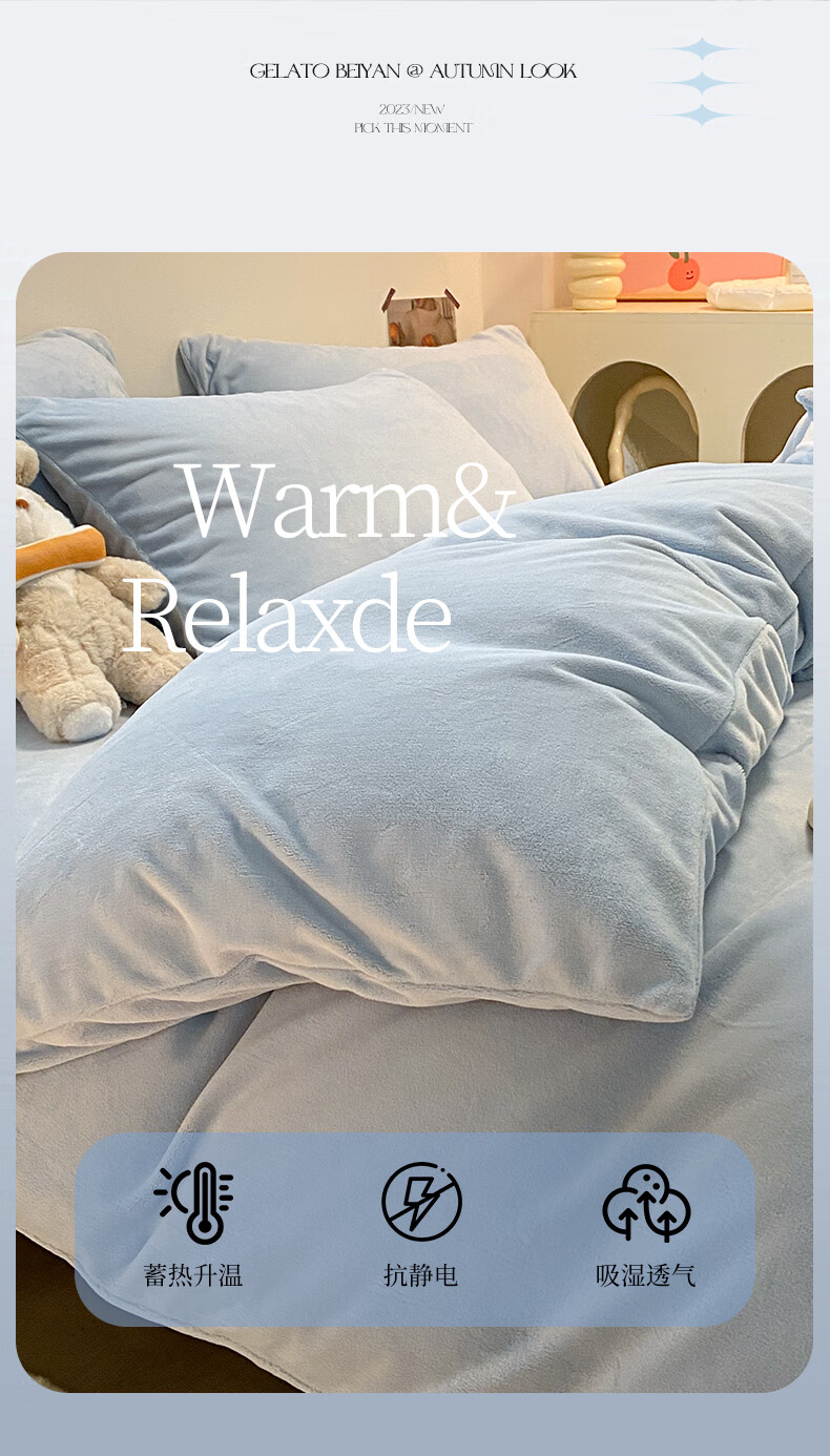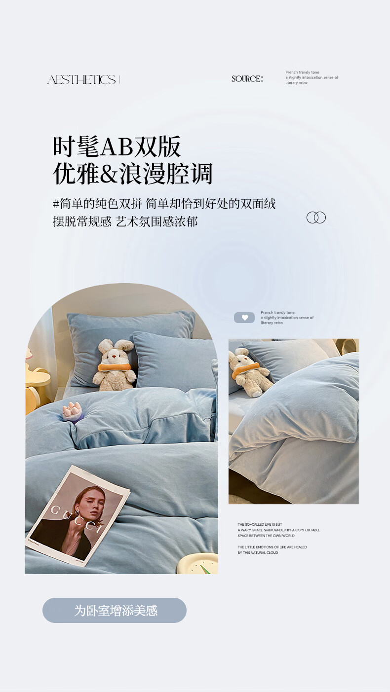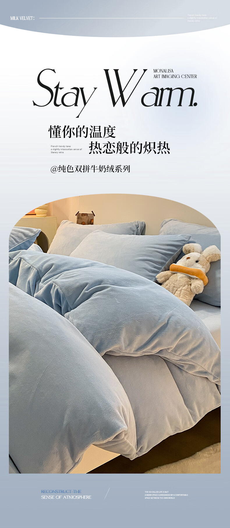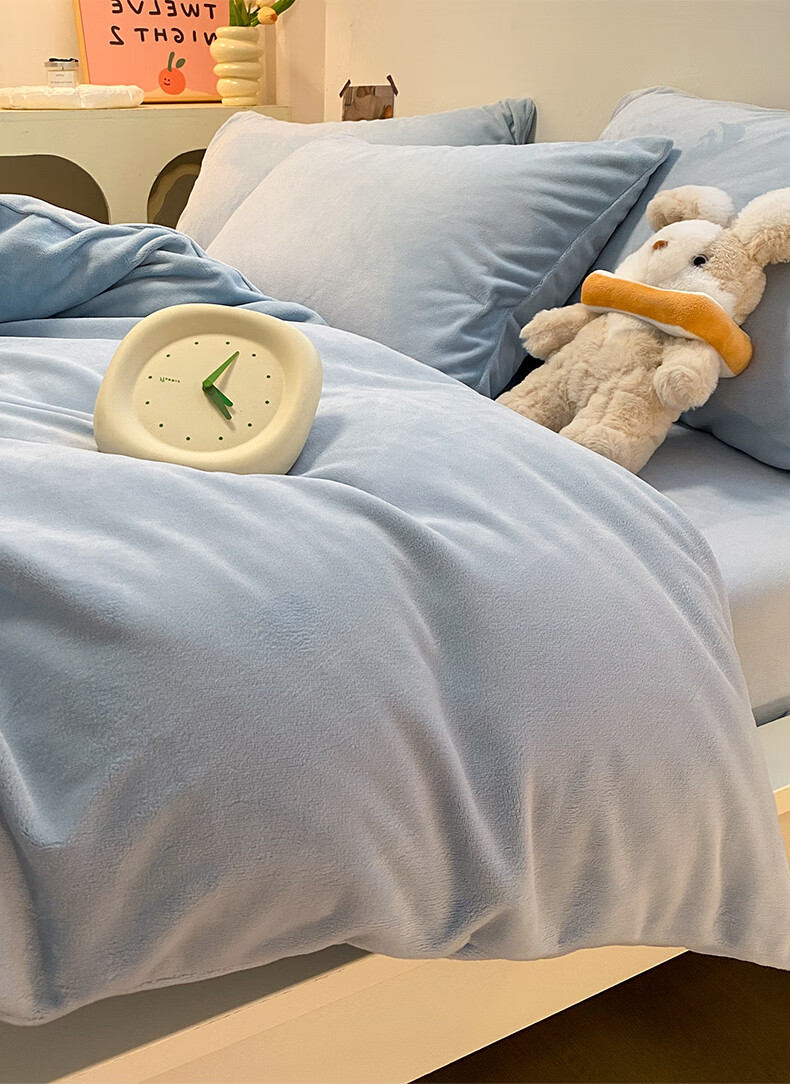 VJE加厚牛奶绒四件套珊瑚绒冬季法兰婴儿绒秋冬天床单被套三件套床品 【A类双拼牛奶绒】宾利蓝 四件套1.8m 床单款 -被套200*230cm
