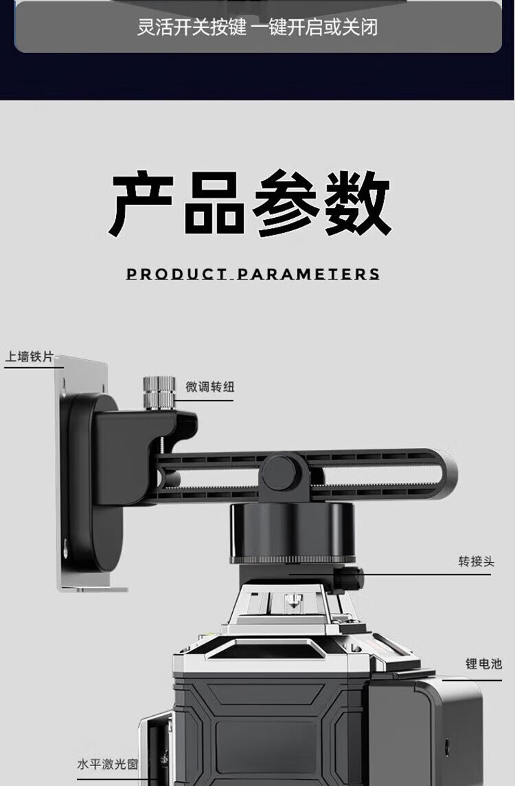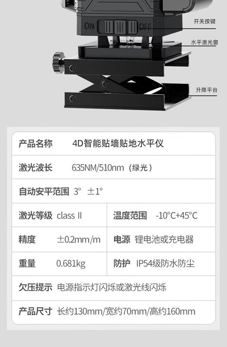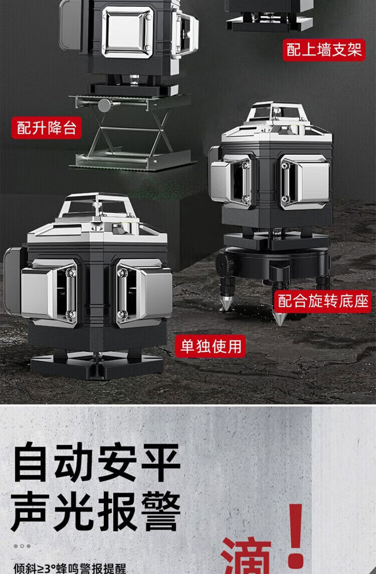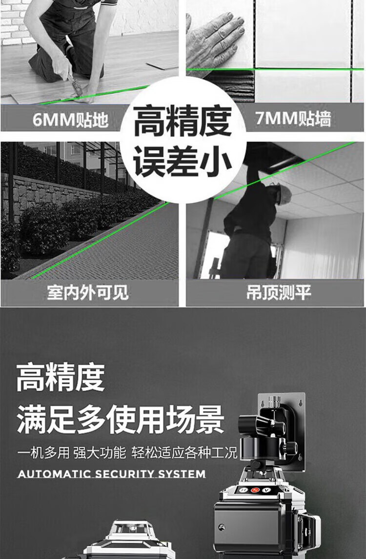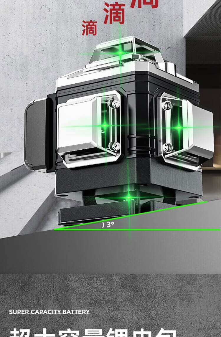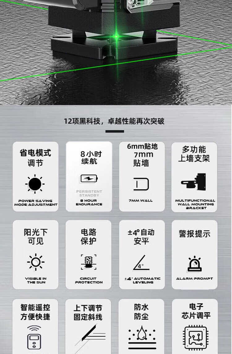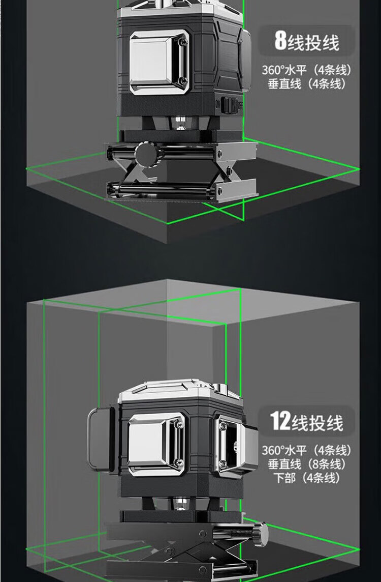 筏芯德国水平仪高精度强光激光户外专用室外建筑12线自动调平打线白天 【8线旗舰】巨无霸锂电+超长续航