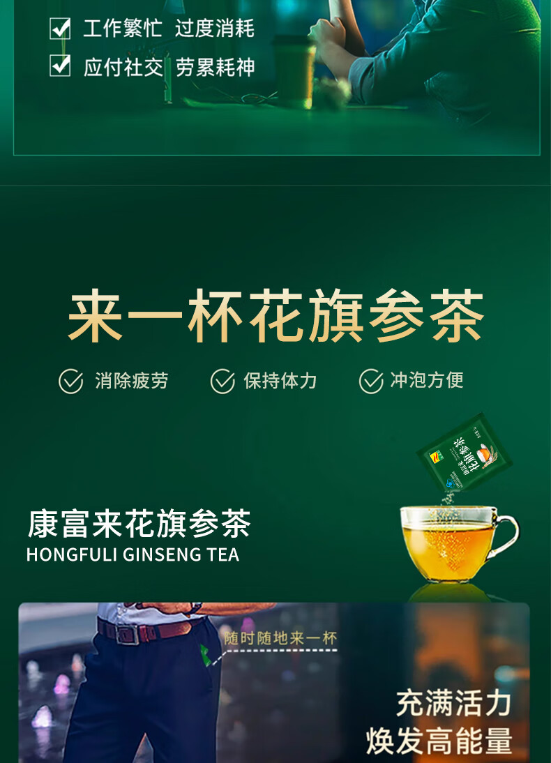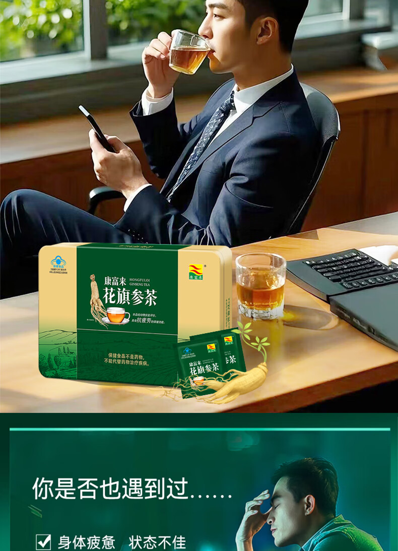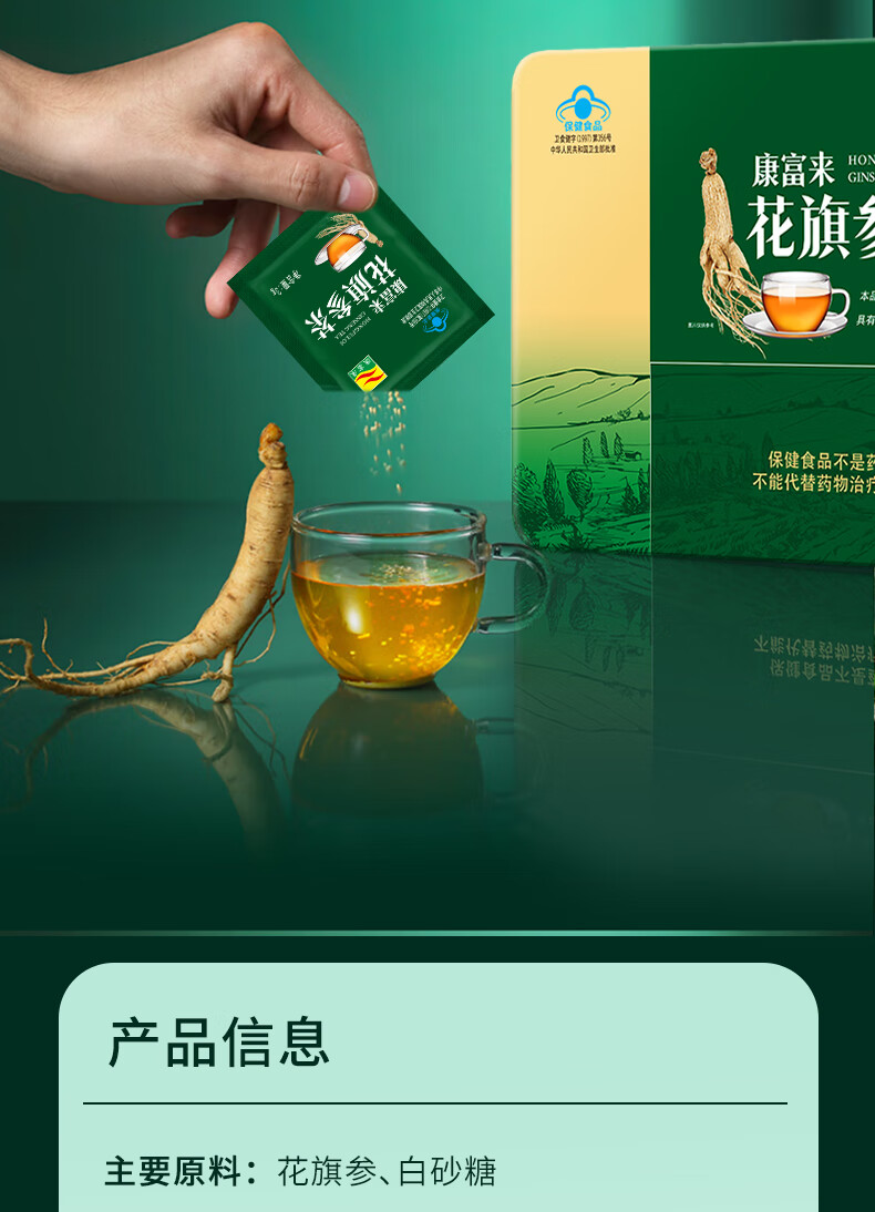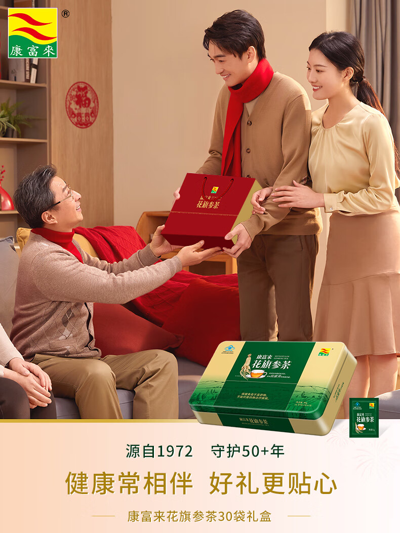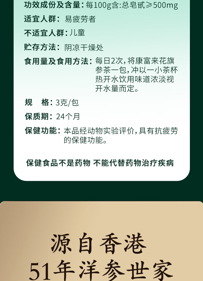 康富来 花旗参茶 送礼 西洋参礼盒 消除疲劳 营养品 送长辈中老人补品 【日常保健·消除疲劳】30袋/共6盒