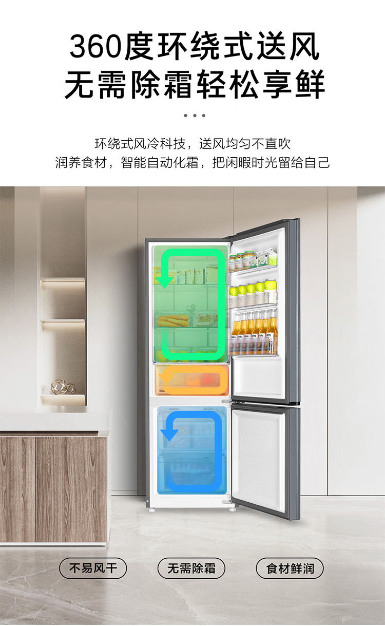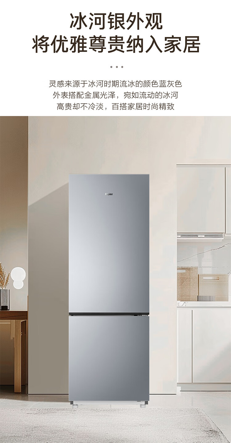 海尔(Haier)冰箱243升双开门两门风冷无霜一级能效小型宿舍公寓租房三档变温双变频节能家用电冰箱 小型两门+三档变温+健康黑金净化