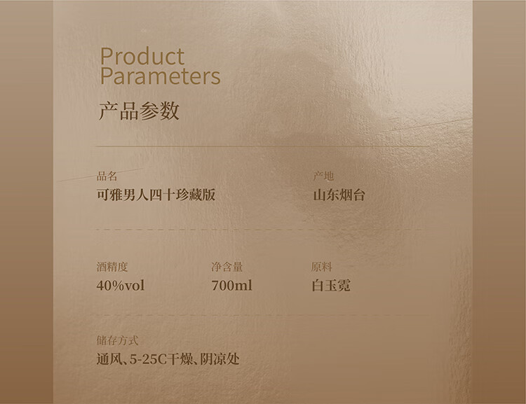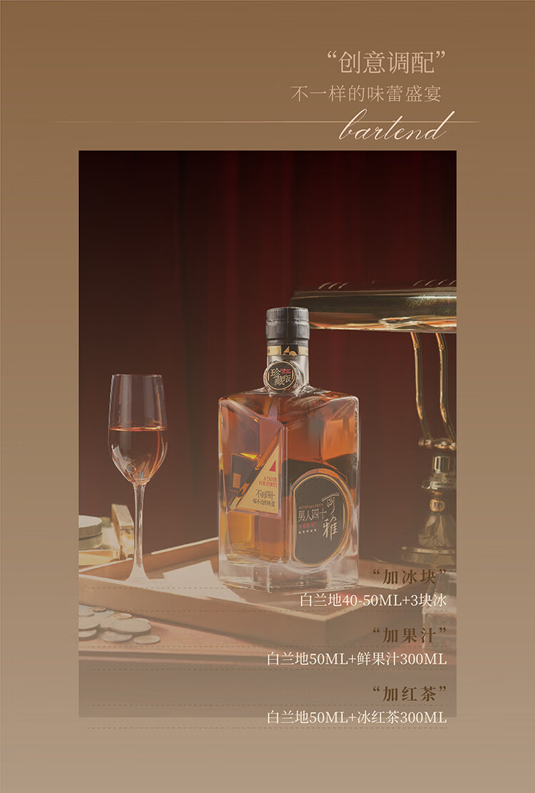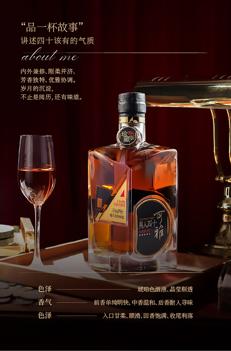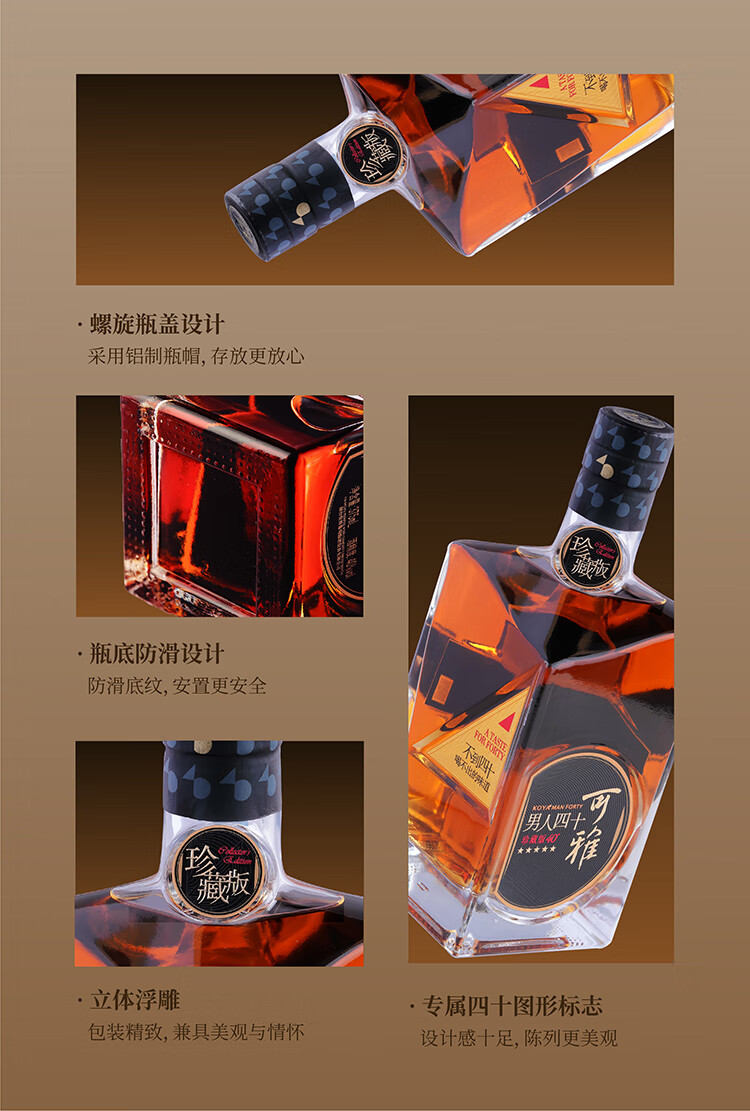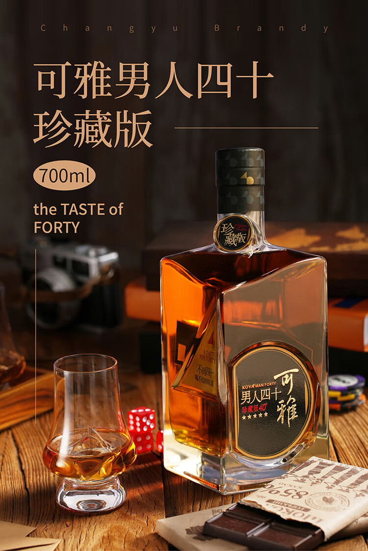 张裕可雅珍藏版男人四十 700ml单支礼盒装 40度 洋酒 葡萄蒸馏酒 700mL 1瓶