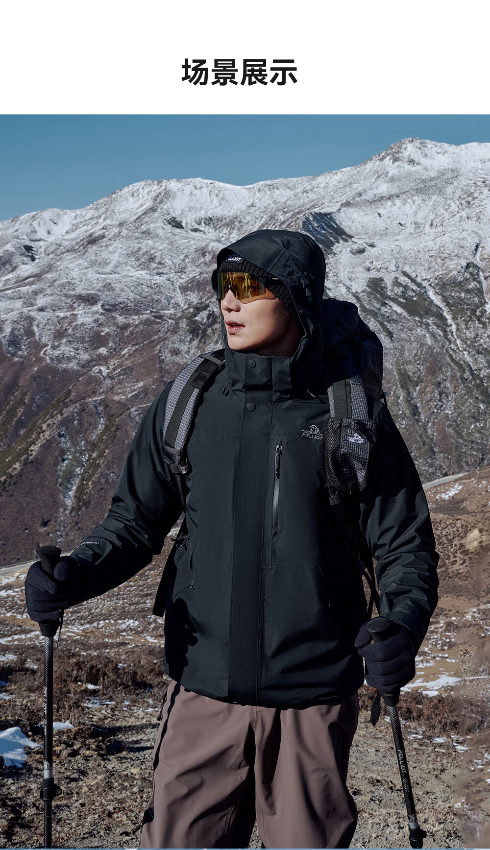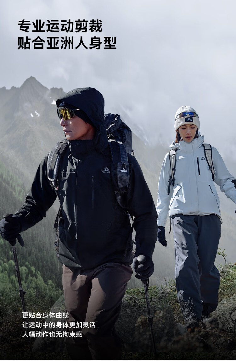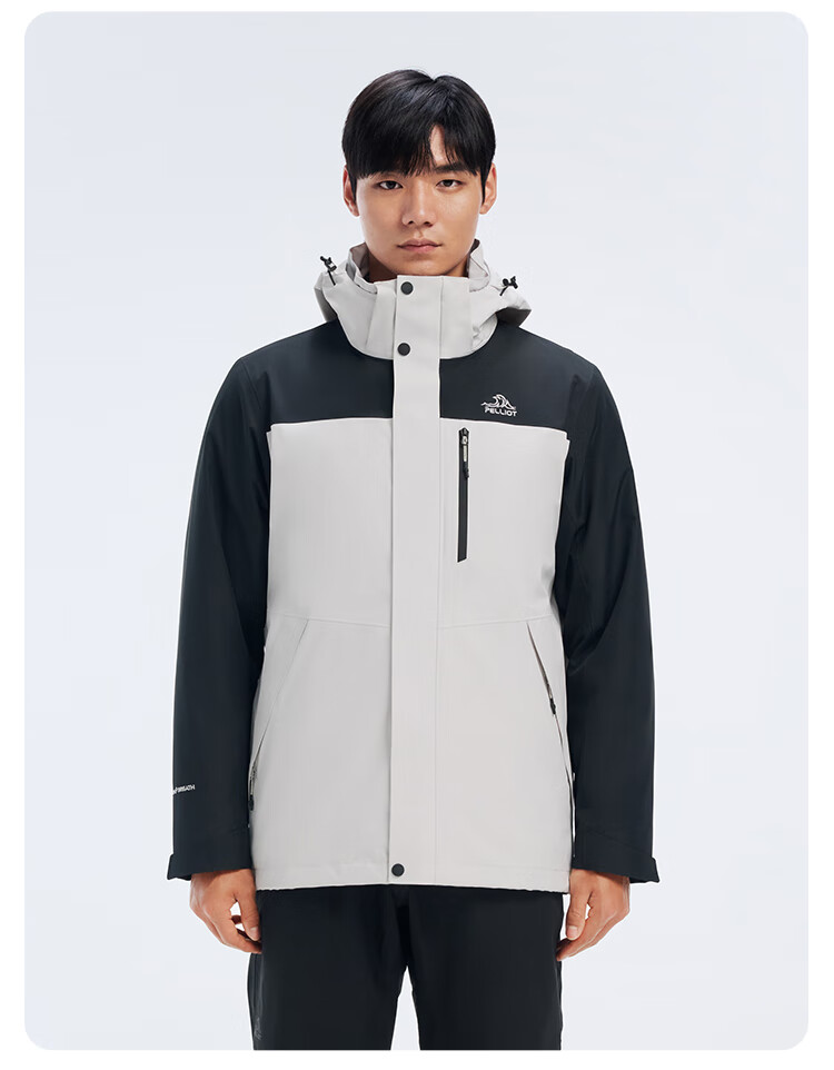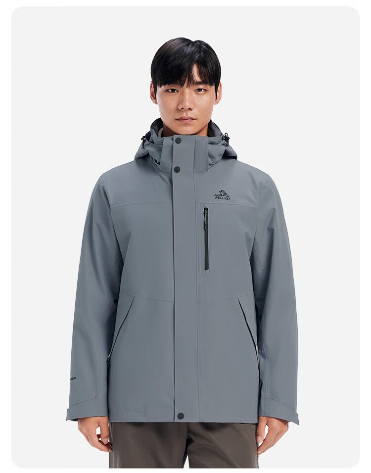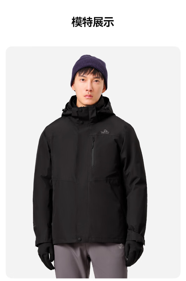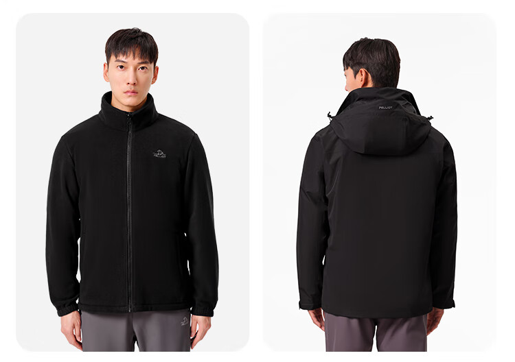 伯希和(Pelliot)【经典2.0】伯希和户外冲锋衣女新款三合一外套男防风防水登山服 男 | 曜石黑/抓绒两件套 *成毅明星同款 L