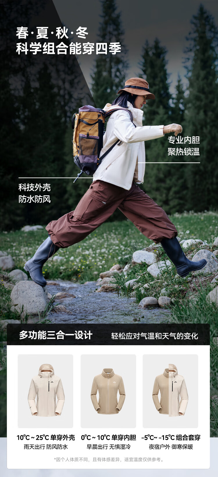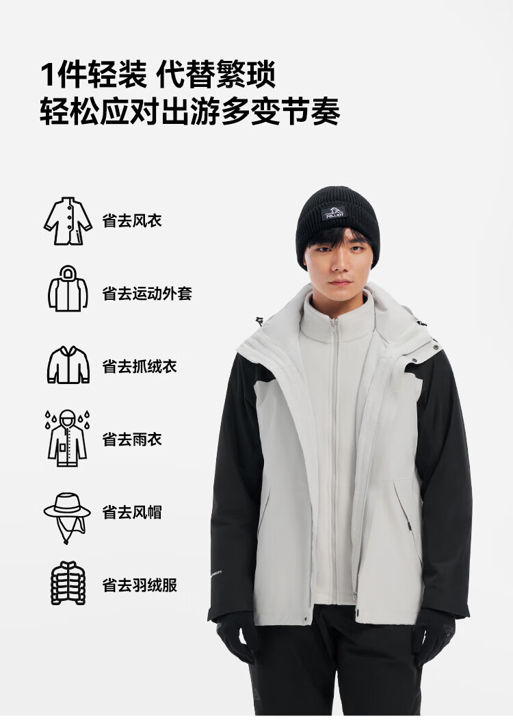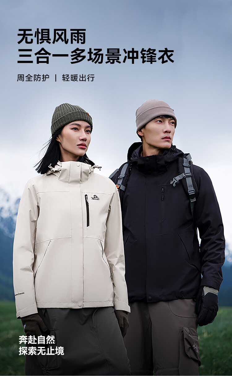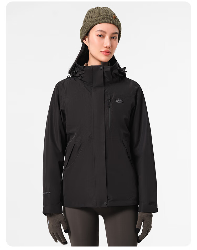 伯希和(Pelliot)【经典2.0】伯希和户外冲锋衣女新款三合一外套男防风防水登山服 男 | 曜石黑/抓绒两件套 *成毅明星同款 L