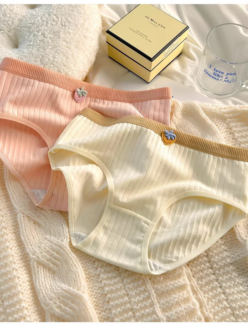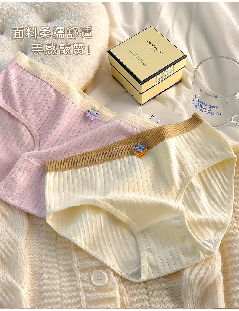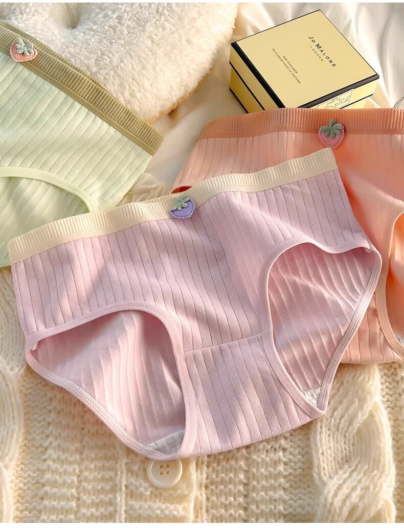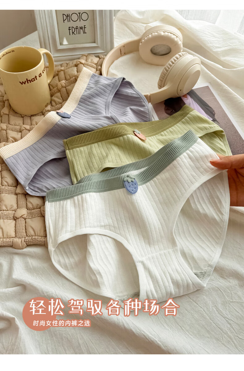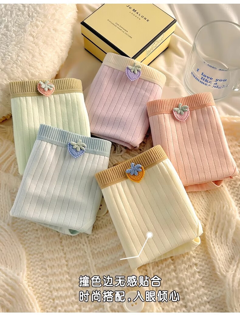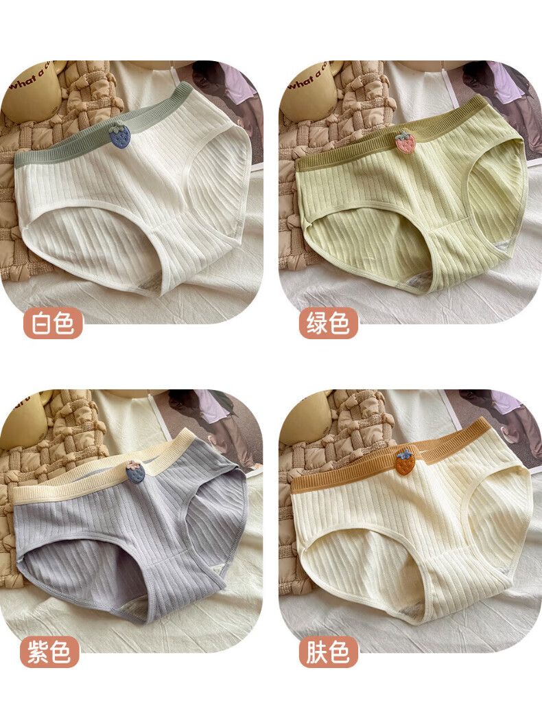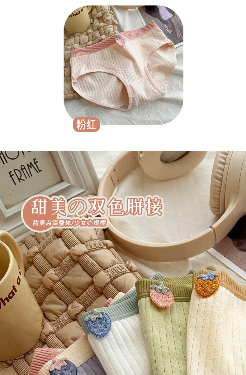 雅鹿纯棉女士内裤三角裤小清新草莓透气大码包臀纯欲中腰少女短裤底裤 白+绿+紫+肤+粉 5条 M 【建议70-95斤】
