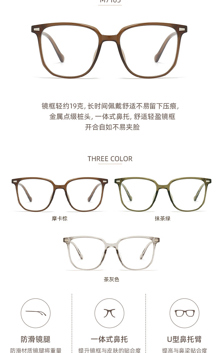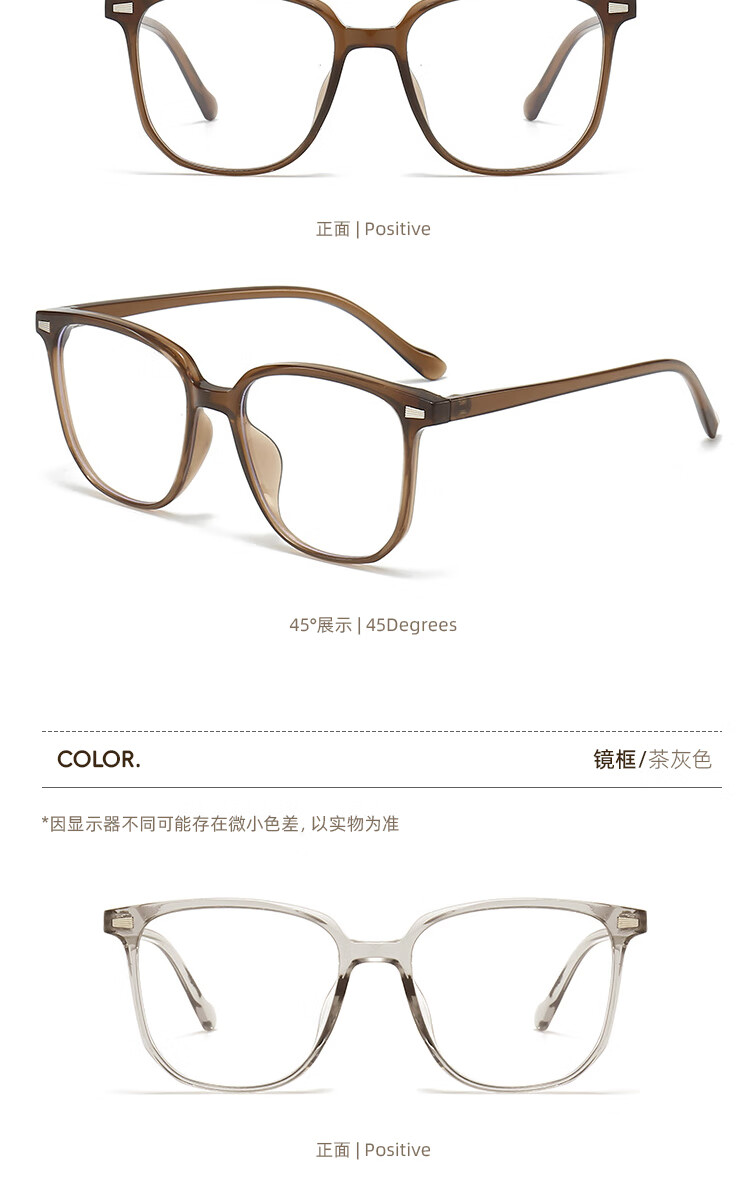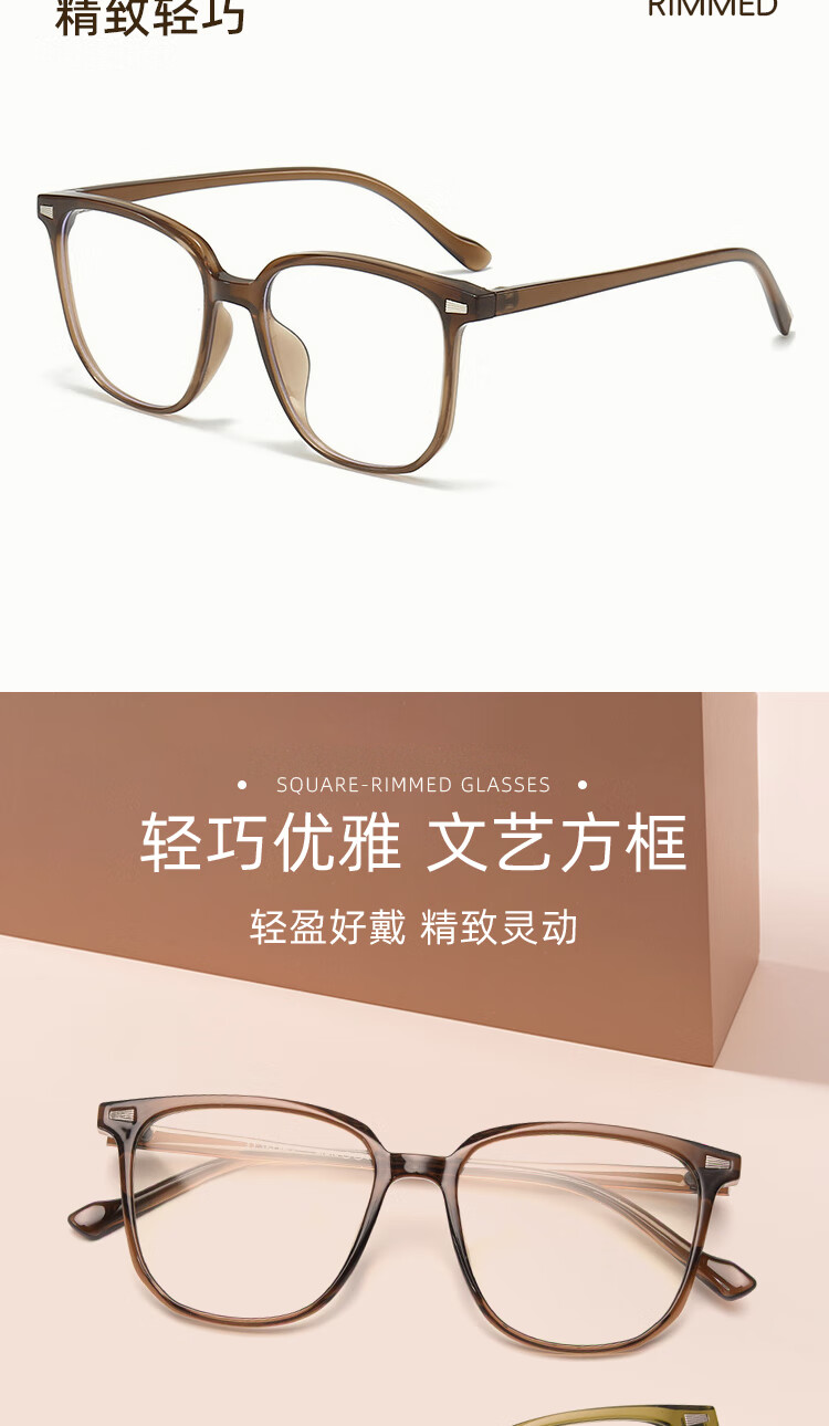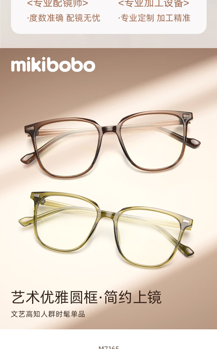 米奇啵啵近视眼镜配镜 全框百搭 【可定制】 标准度数非球 男女款复古圆框 M7165款-茶灰色 双眼近视100度