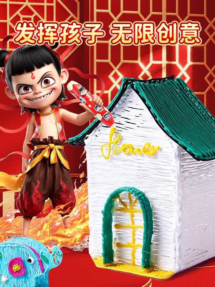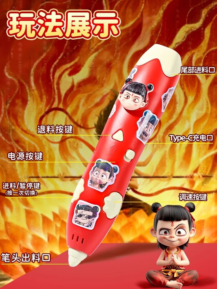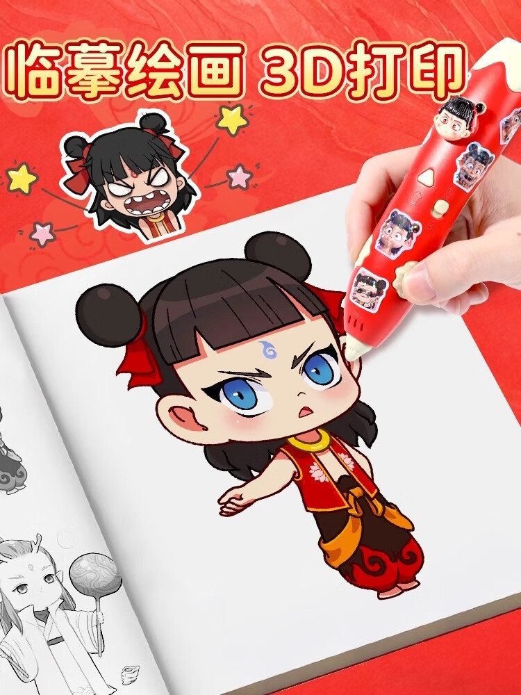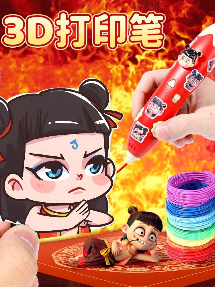 森凯哆哪咤敖丙3d打印笔夜光儿童款立体低温三地绘画笔小学生女孩子礼物 3D打印笔【敖丙】充电款【3卷耗 【临摹本+精美礼盒+礼袋】