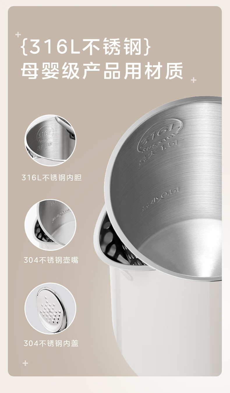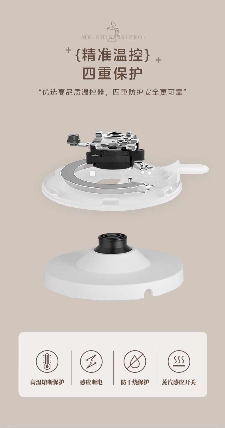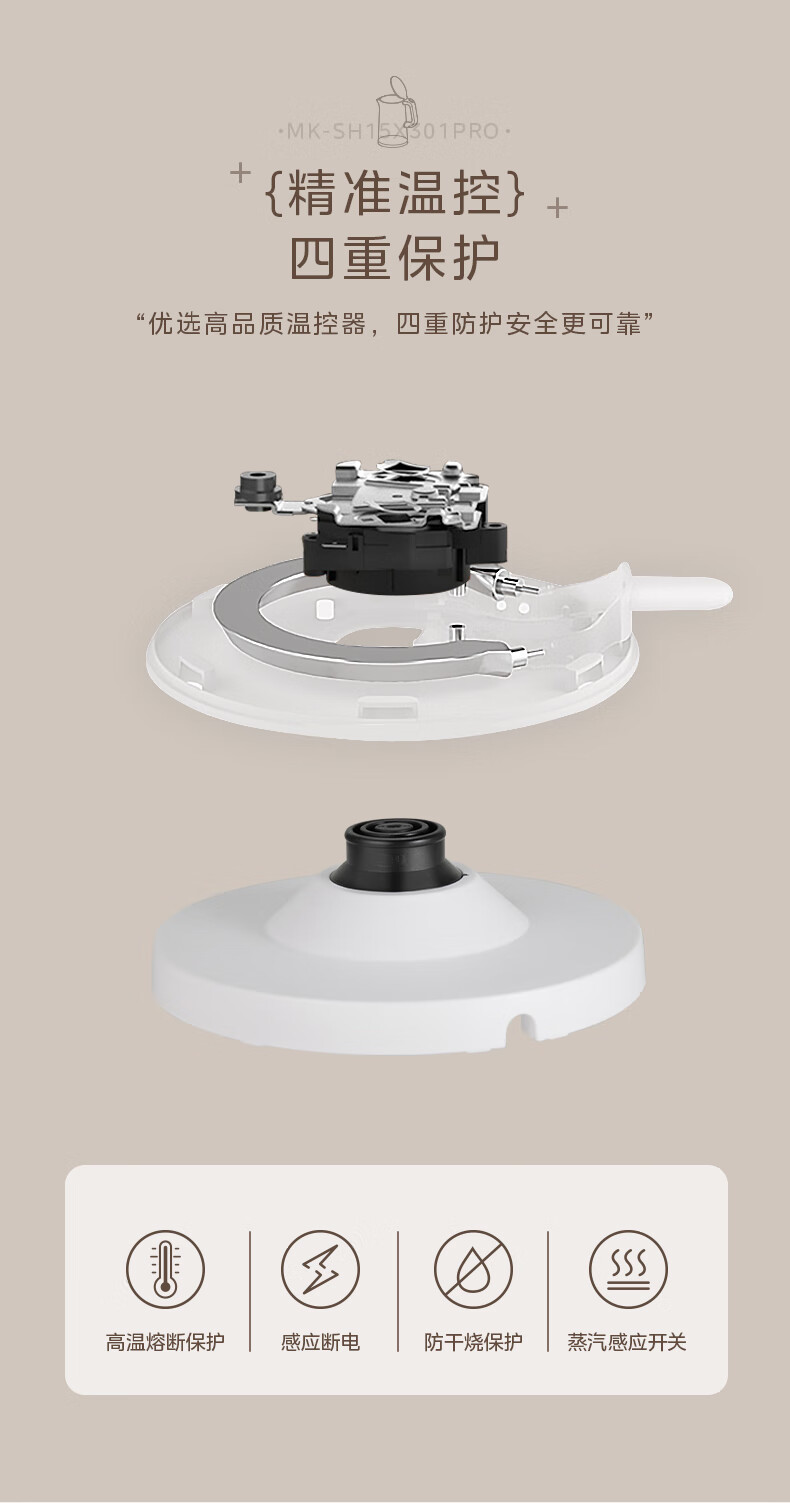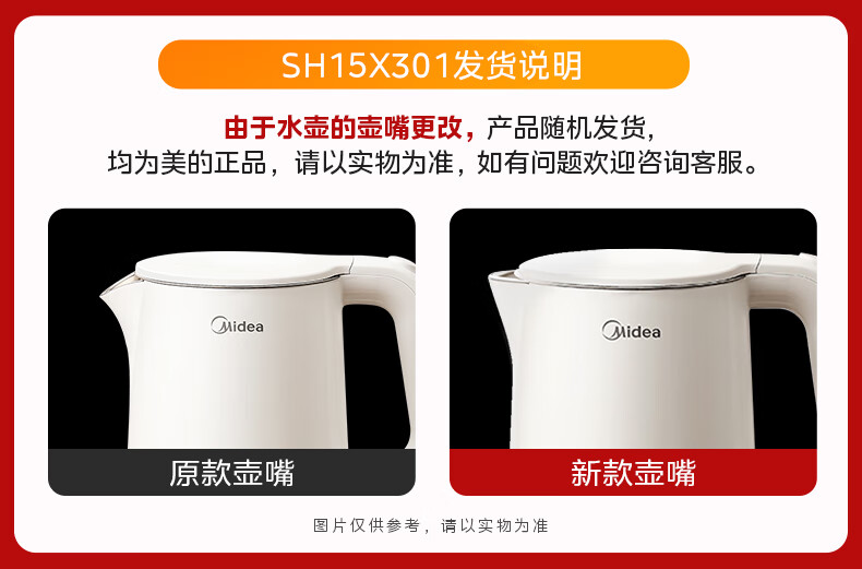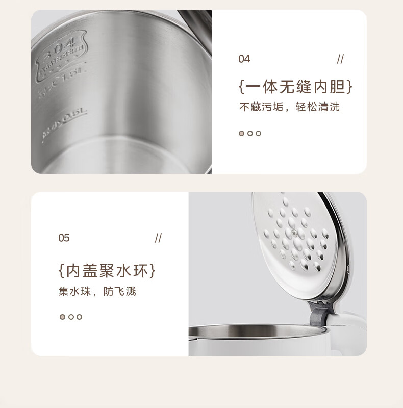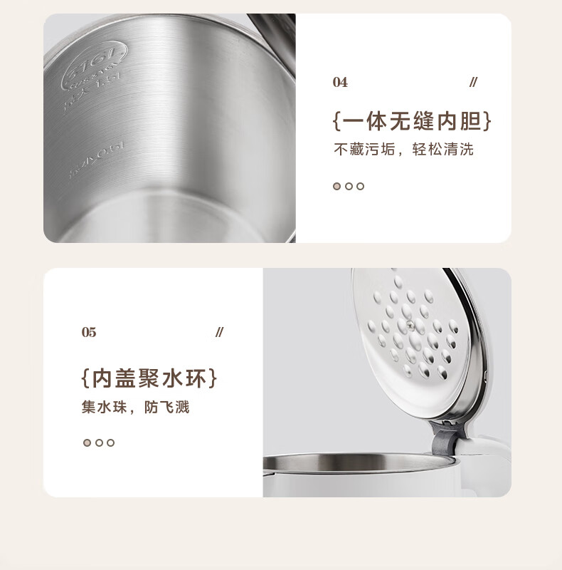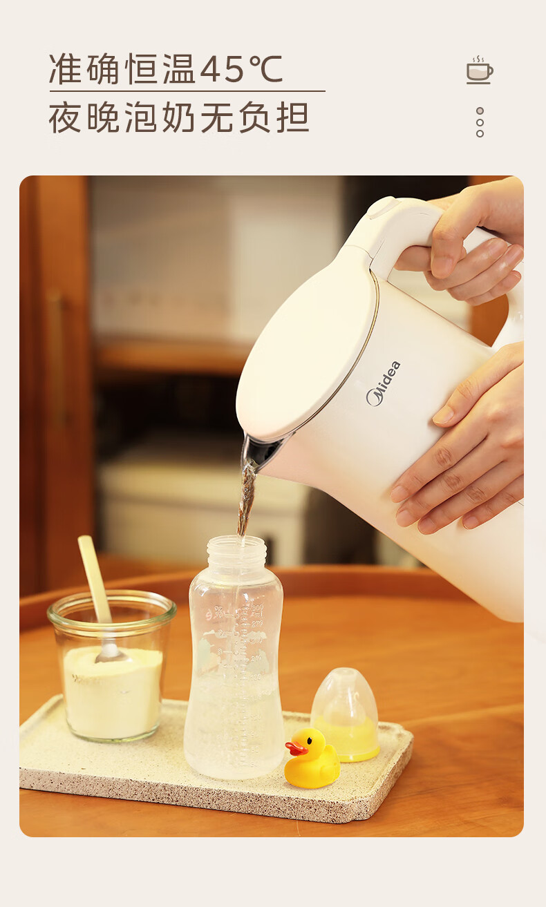 美的(Midea) 电热水壶 热水壶 家用大容量不锈钢烧水壶双层防烫 一体无缝内胆电水壶开水壶 1.5L 【304不锈钢恒温保温一体】-最新款